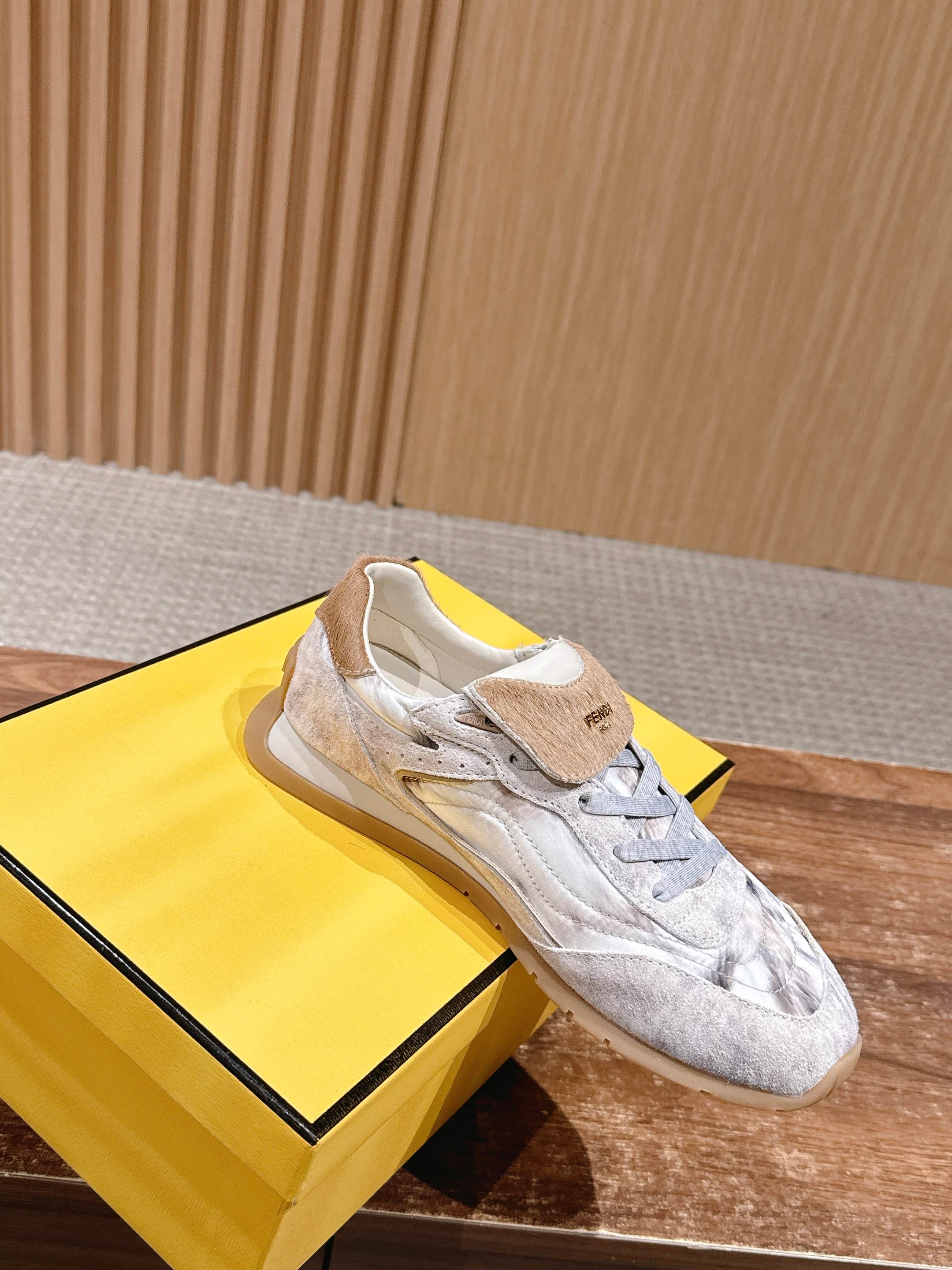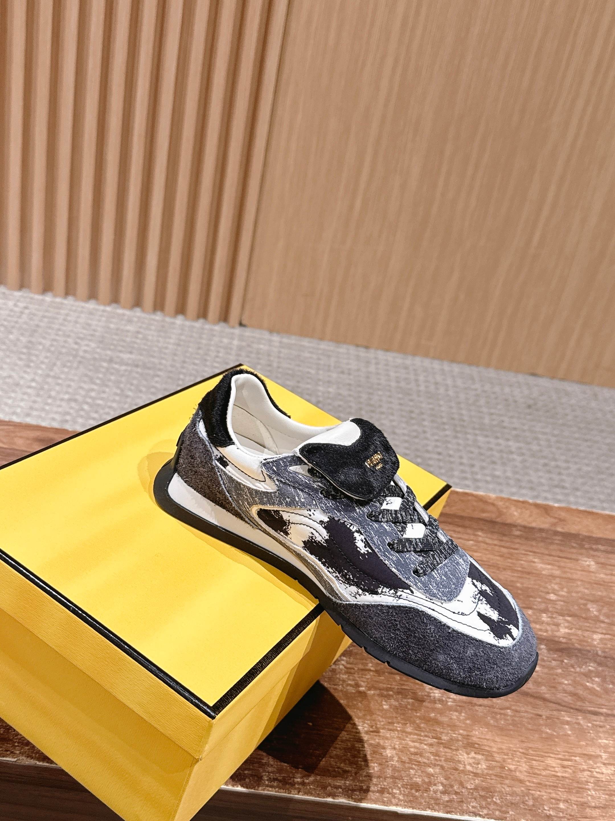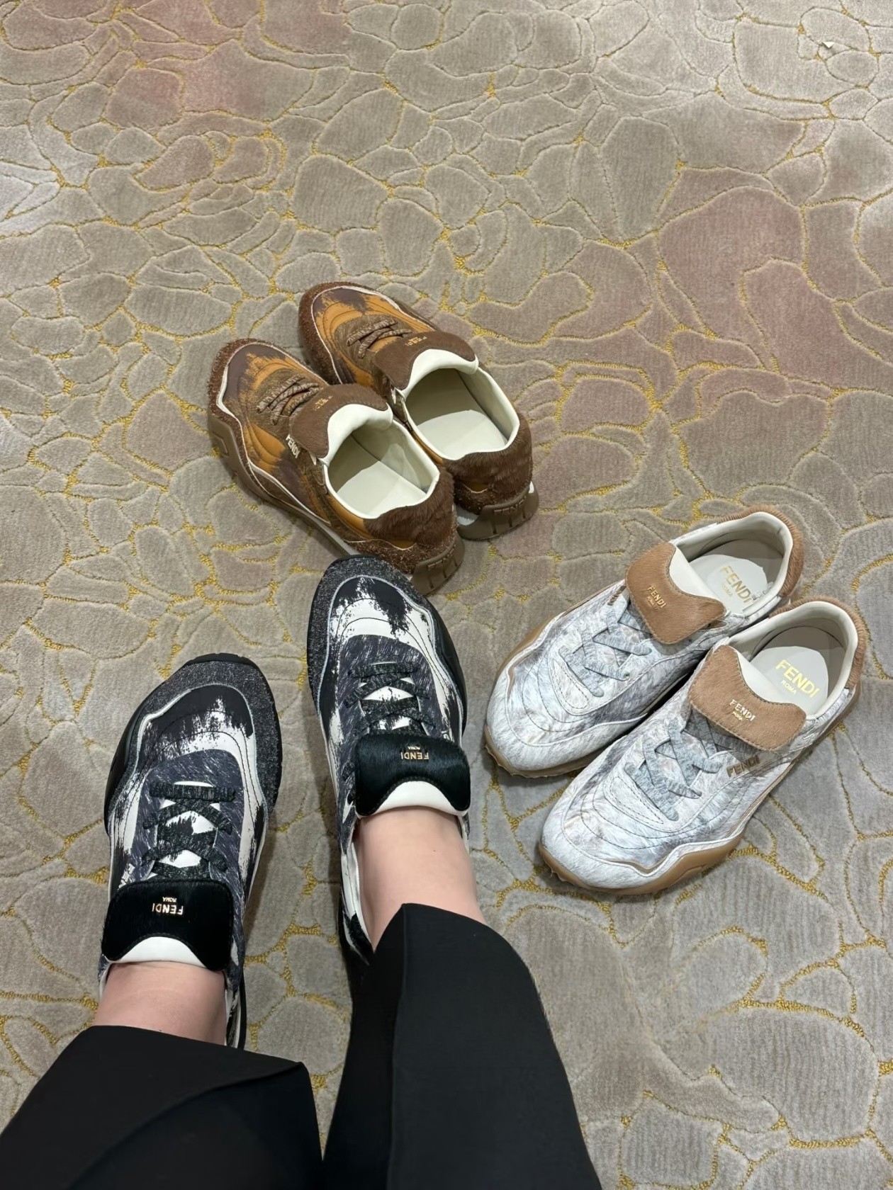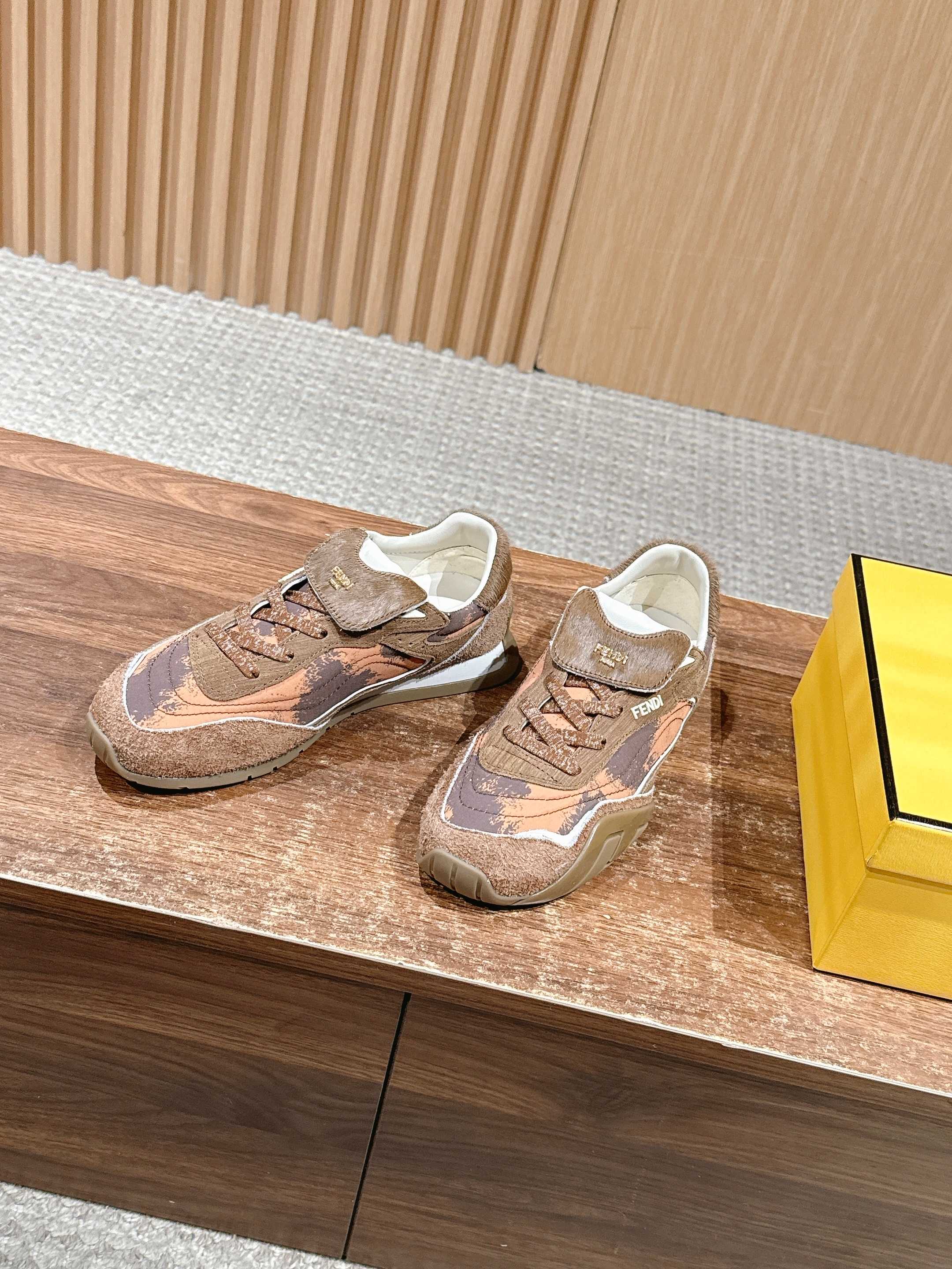 𝐅𝐄𝐍𝐃𝐈 芬迪新款复古风平底运动休闲鞋 鞋面是牛反绒+皮革拼接,自带做旧纹理,质感高级还显独特;鞋舌有FENDI标识,细节处藏着品牌辨识度。圆头+魔术贴搭扣,穿脱方便且适配不同脚型; 鞋型偏宽松,对脚宽/脚胖包容度高,同时视觉显脚小;配色是低饱和复古色系,自带松弛的“老钱风”调性。鞋底是轻质橡胶底,软弹不累脚,日常通勤或者逛街都适配;风格兼容复古、休闲、轻熟风,搭牛仔裤、西装裤、连衣裙都不违和。 鞋面:牛皮 内里:羊皮 大底:原版开模大底 增高:3cm Size:35-39码(40定制不退换)