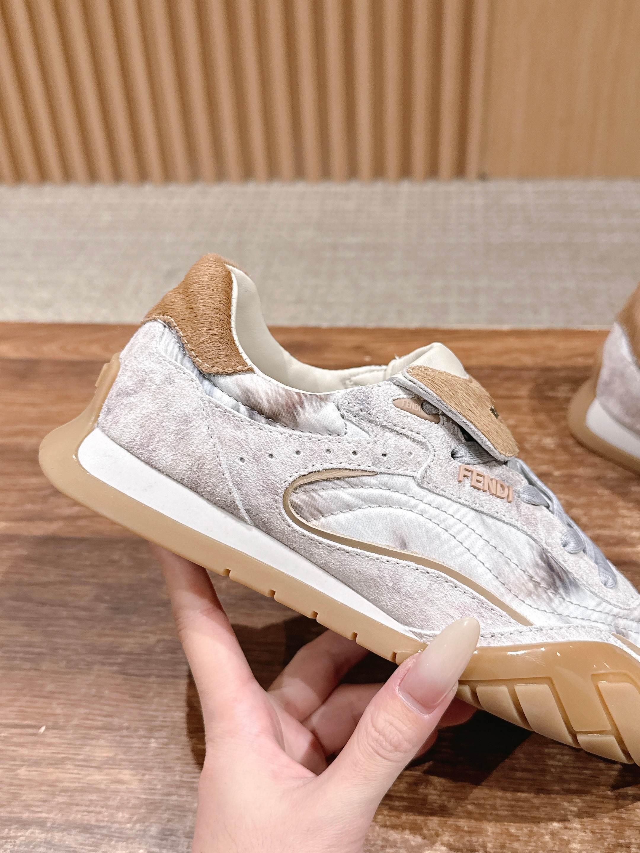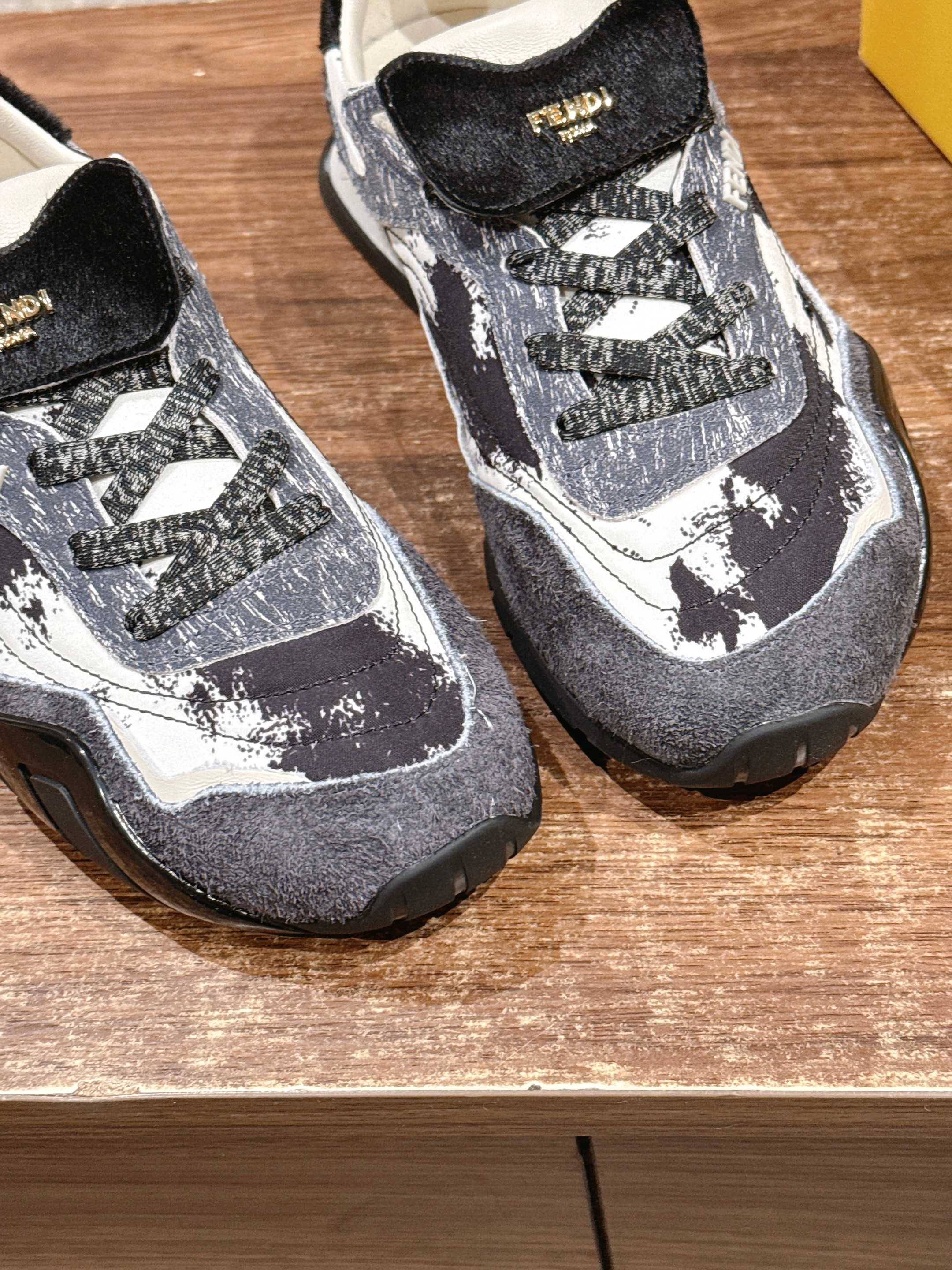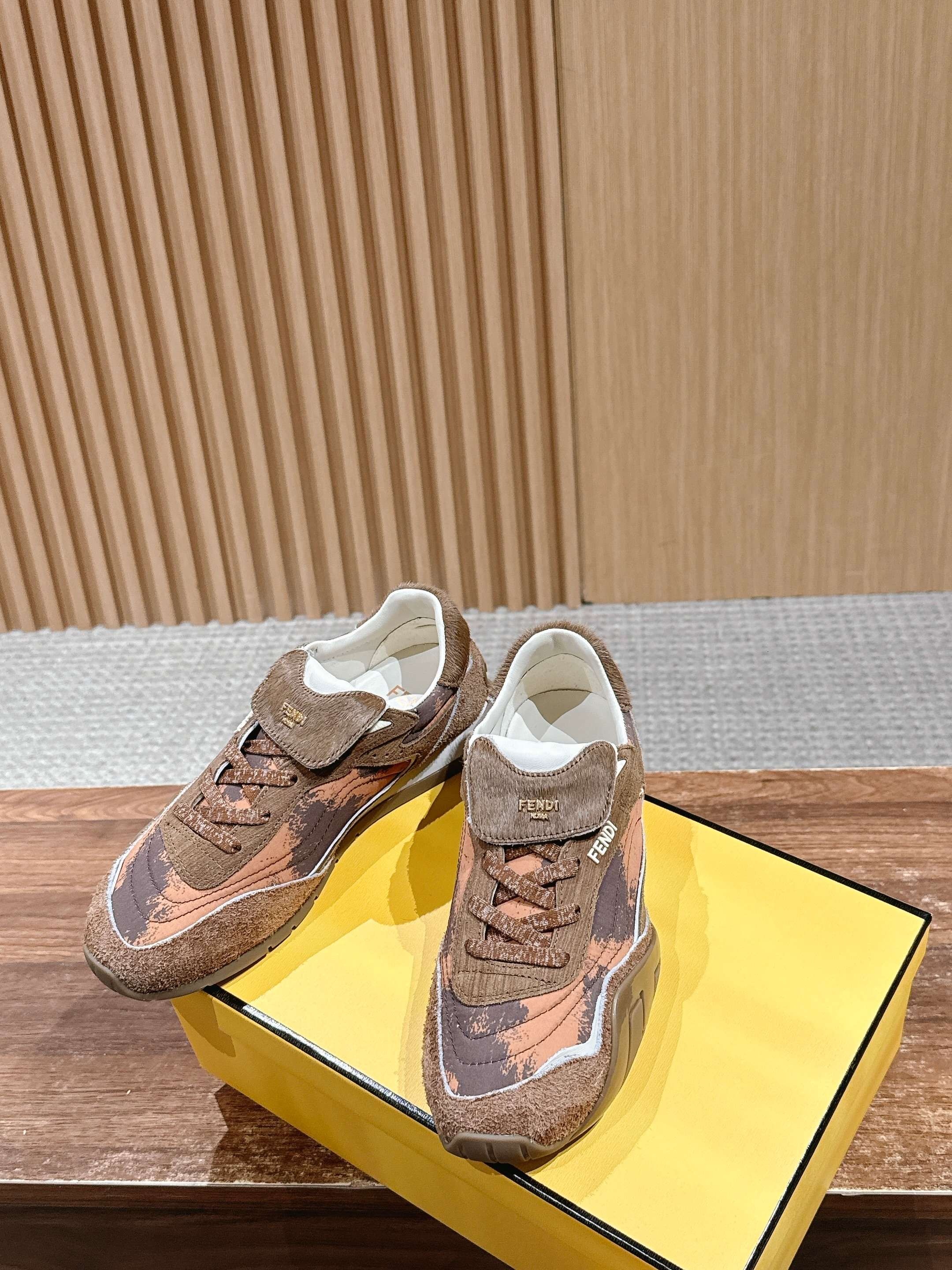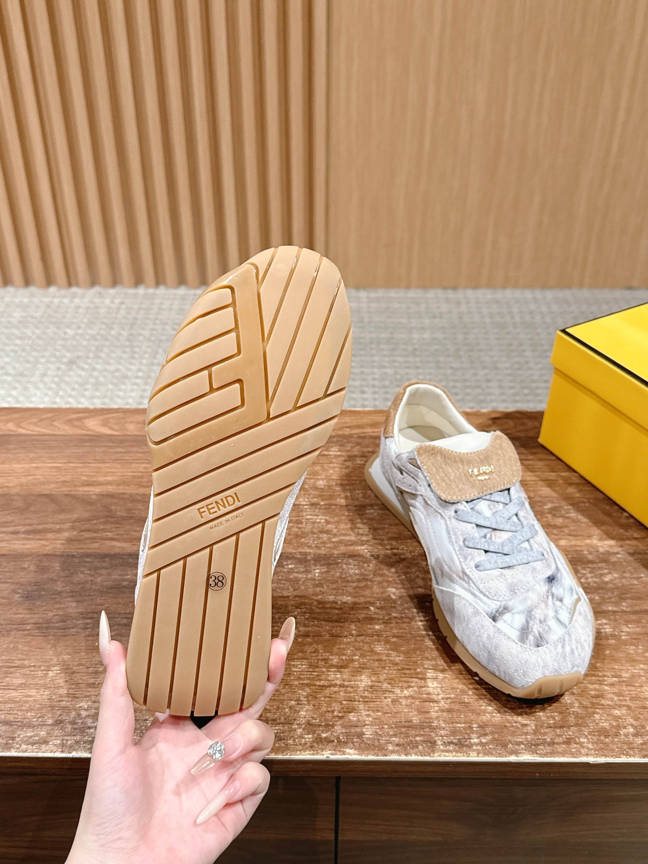 𝐅𝐄𝐍𝐃𝐈 芬迪新款复古风平底运动休闲鞋 鞋面是牛反绒+皮革拼接,自带做旧纹理,质感高级还显独特;鞋舌有FENDI标识,细节处藏着品牌辨识度。圆头+魔术贴搭扣,穿脱方便且适配不同脚型; 鞋型偏宽松,对脚宽/脚胖包容度高,同时视觉显脚小;配色是低饱和复古色系,自带松弛的“老钱风”调性。鞋底是轻质橡胶底,软弹不累脚,日常通勤或者逛街都适配;风格兼容复古、休闲、轻熟风,搭牛仔裤、西装裤、连衣裙都不违和。 鞋面:牛皮 内里:羊皮 大底:原版开模大底 增高:3cm Size:35-39码(40定制不退换)