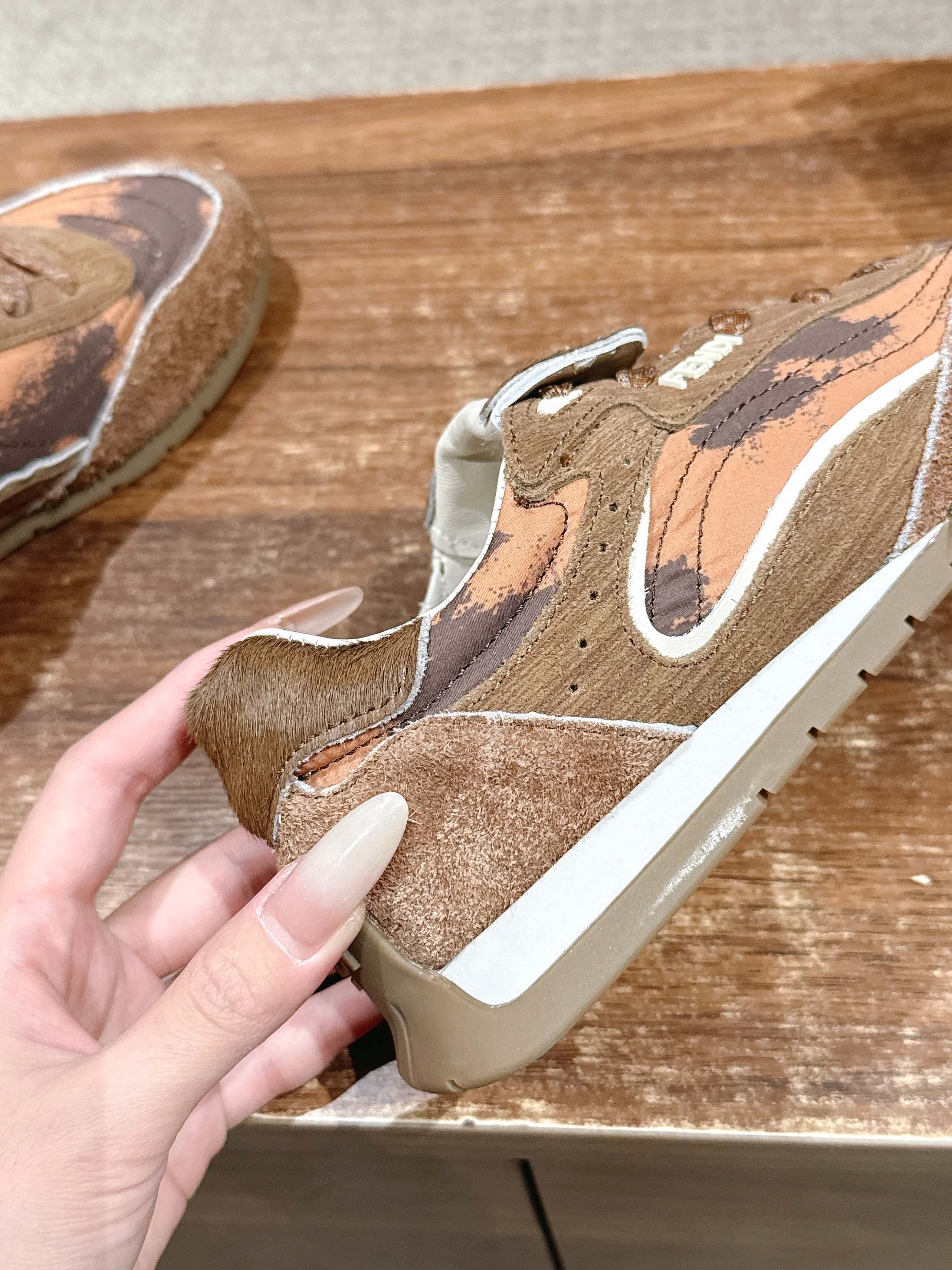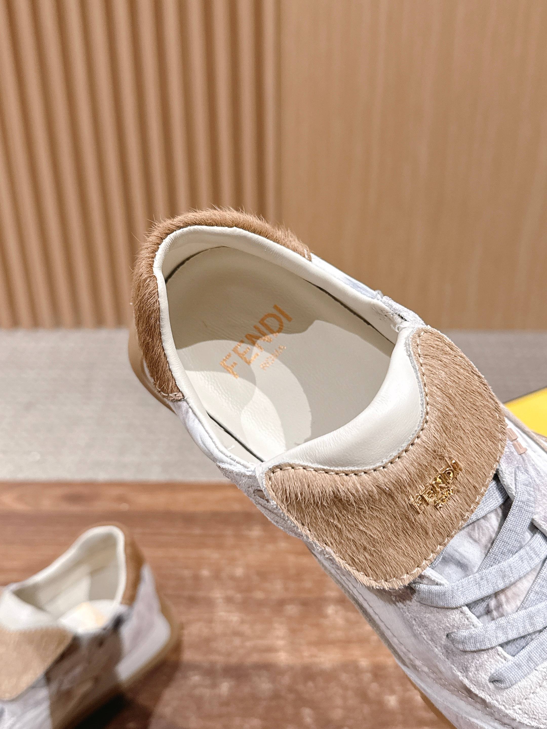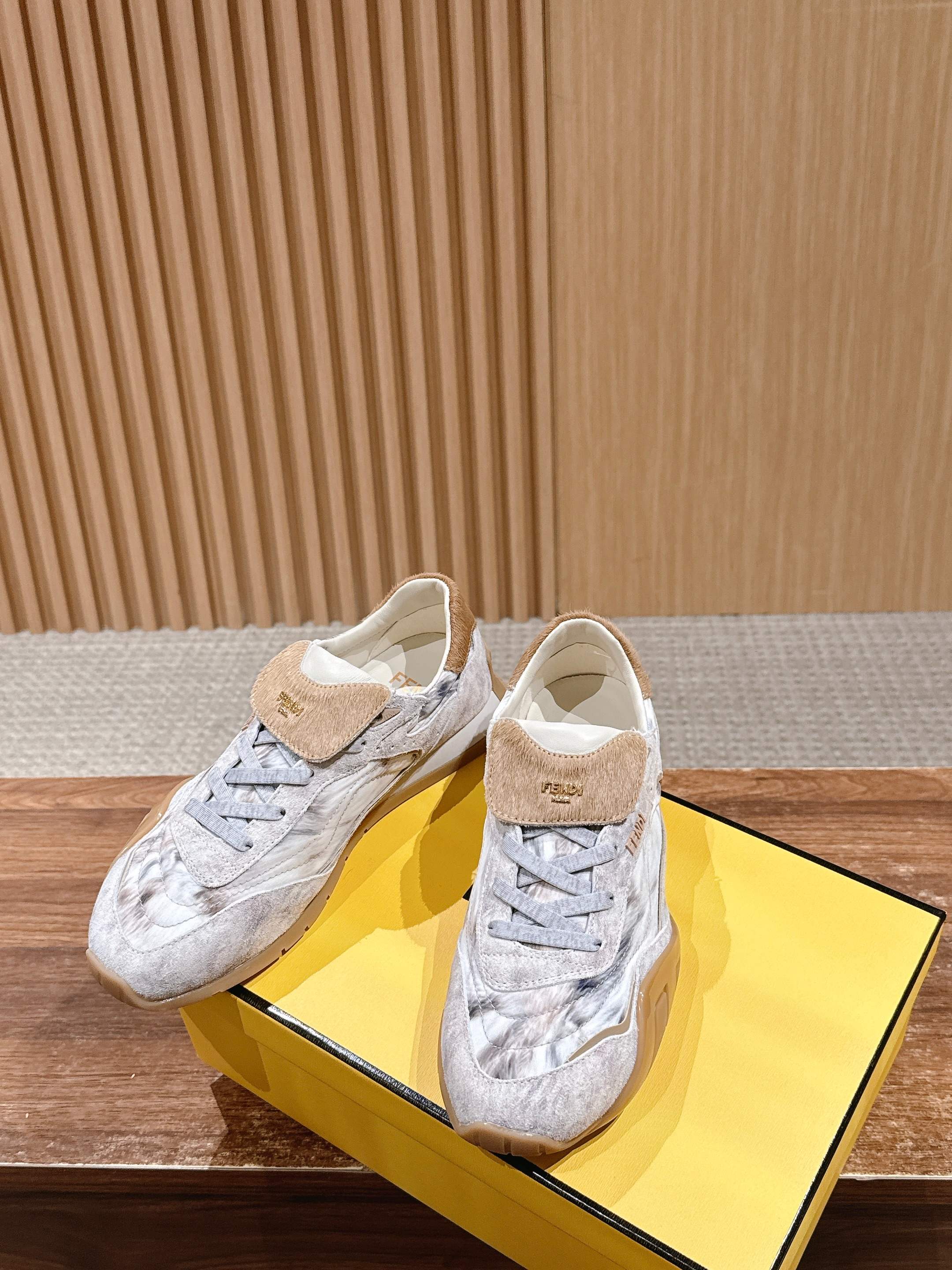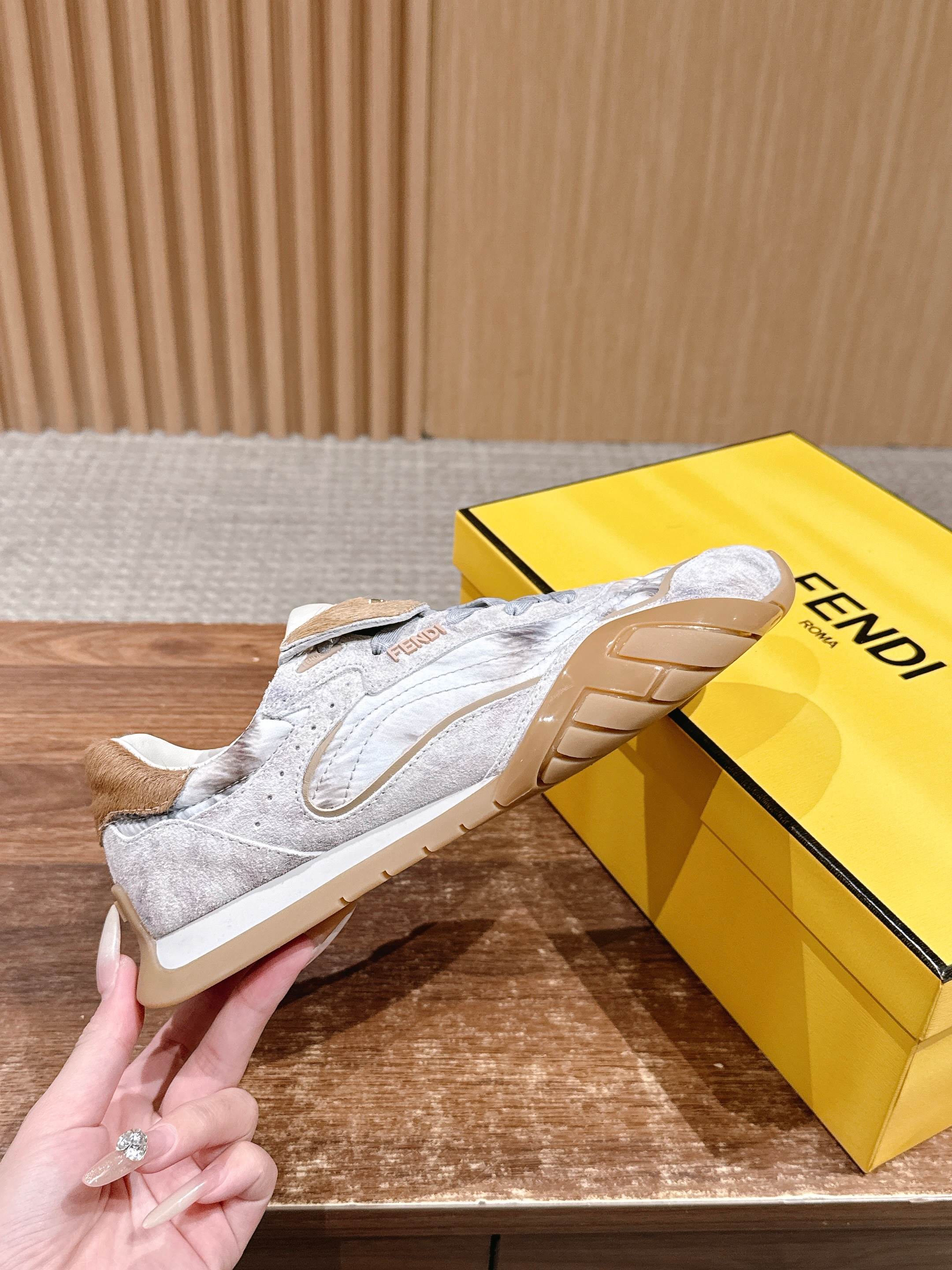 𝐅𝐄𝐍𝐃𝐈 芬迪新款复古风平底运动休闲鞋 鞋面是牛反绒+皮革拼接,自带做旧纹理,质感高级还显独特;鞋舌有FENDI标识,细节处藏着品牌辨识度。圆头+魔术贴搭扣,穿脱方便且适配不同脚型; 鞋型偏宽松,对脚宽/脚胖包容度高,同时视觉显脚小;配色是低饱和复古色系,自带松弛的“老钱风”调性。鞋底是轻质橡胶底,软弹不累脚,日常通勤或者逛街都适配;风格兼容复古、休闲、轻熟风,搭牛仔裤、西装裤、连衣裙都不违和。 鞋面:牛皮 内里:羊皮 大底:原版开模大底 增高:3cm Size:35-39码(40定制不退换)