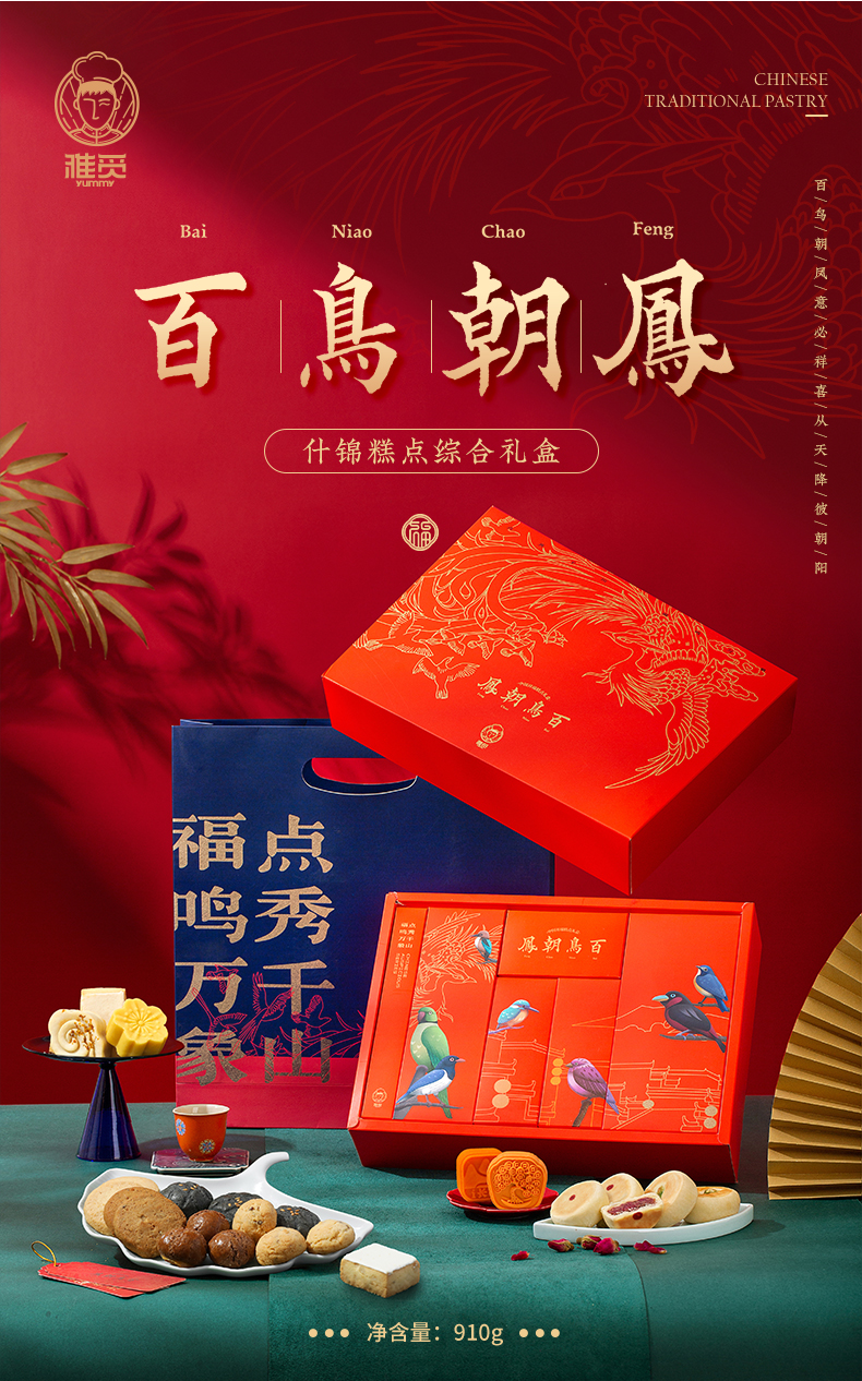 河北省邯郸市魏县雅觅 百鸟朝凤什锦糕点综合礼盒910g/盒