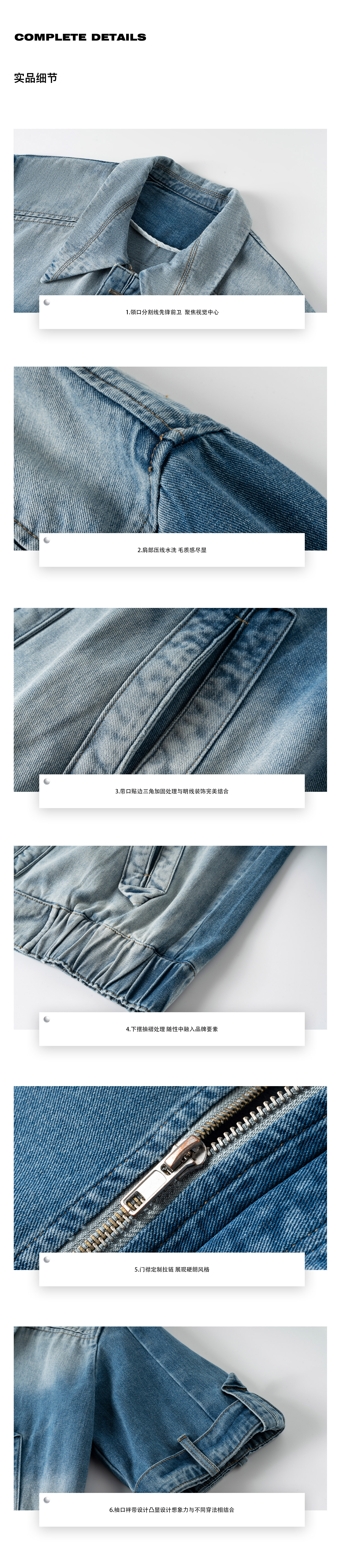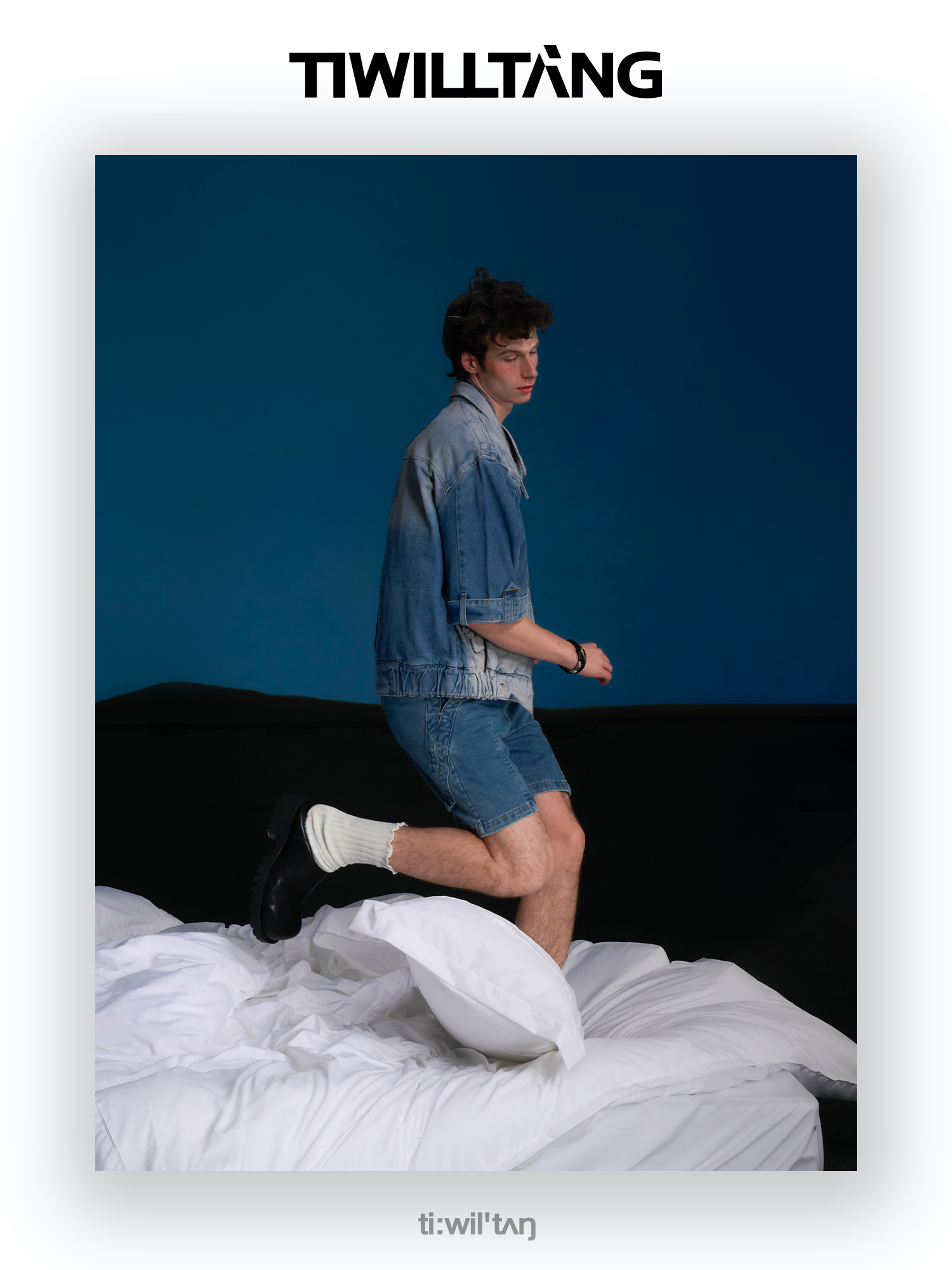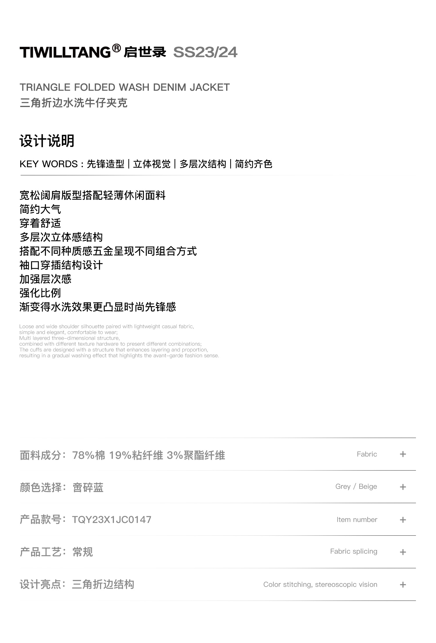 启世录TIWILLTANG“爵域迹铭”三角折边水洗做旧短袖牛仔夹克男