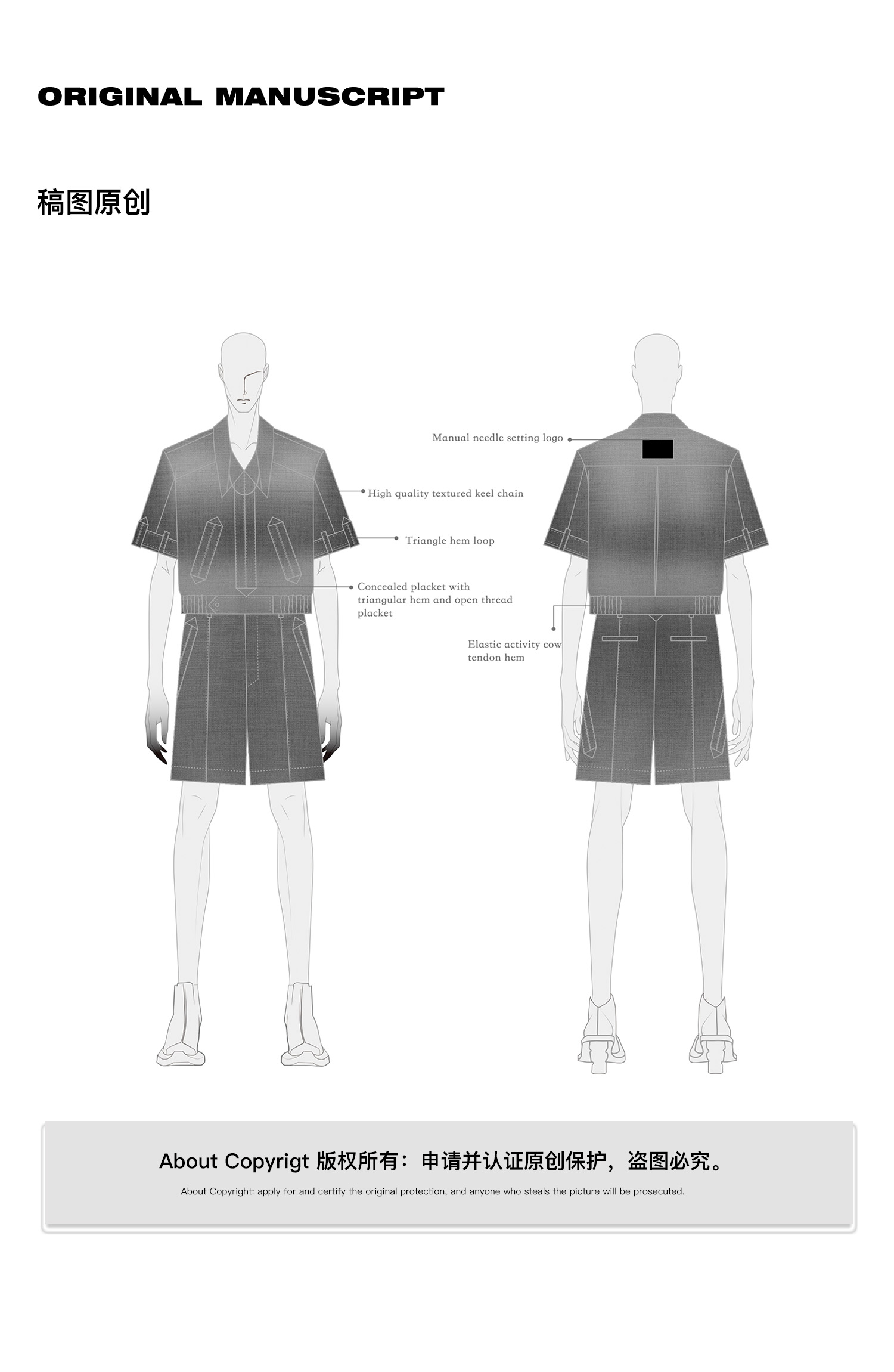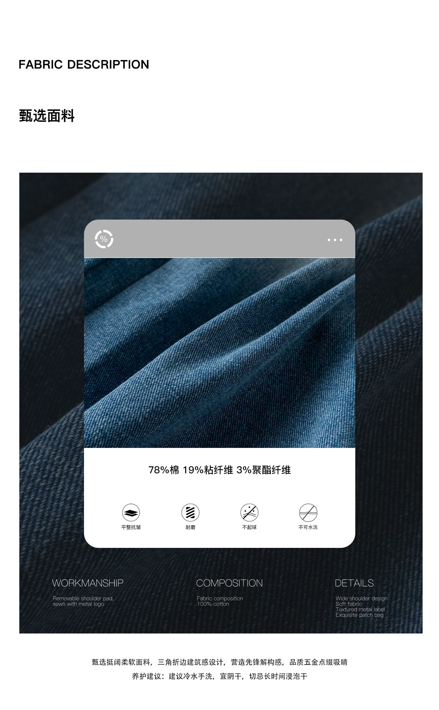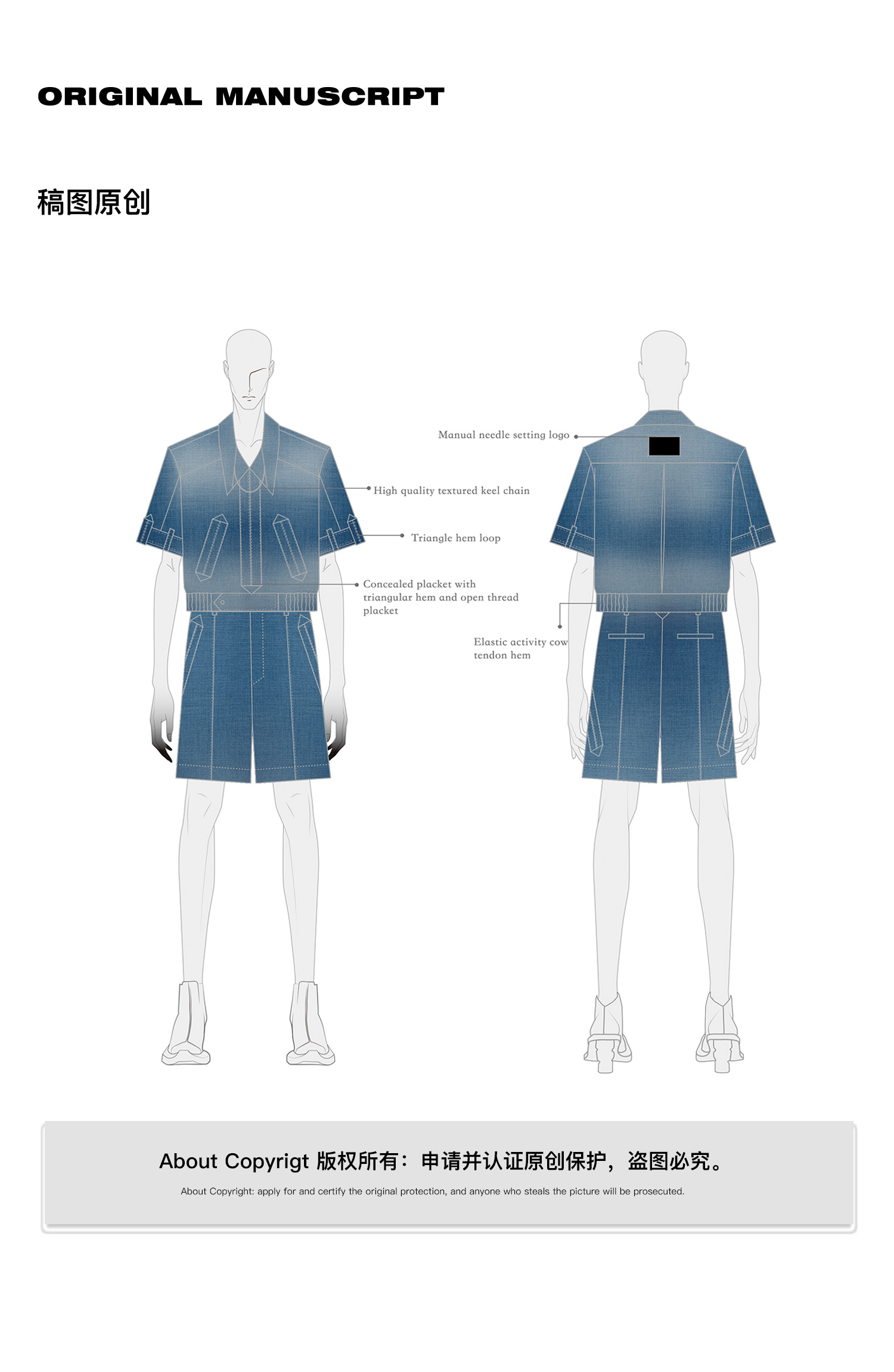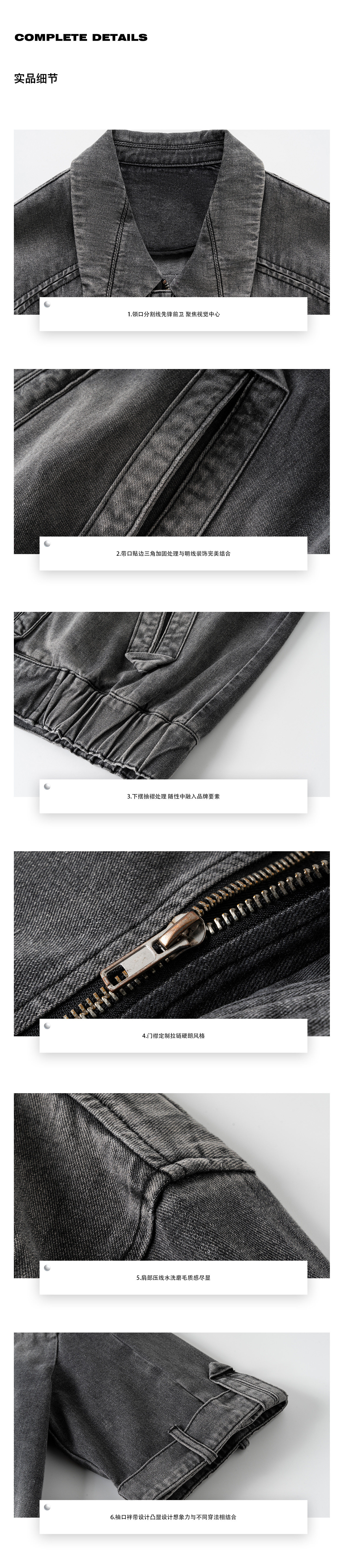 启世录TIWILLTANG“爵域迹铭”三角折边水洗做旧短袖牛仔夹克男