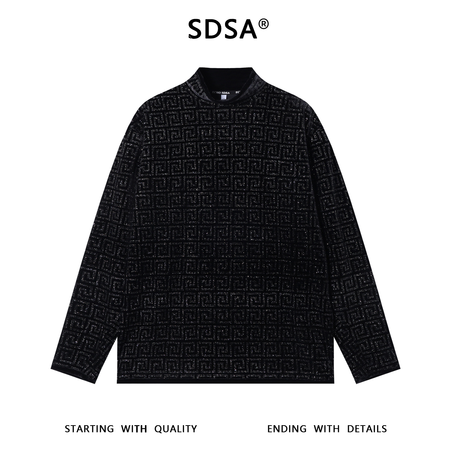 T4939SDSA男士秋冬新款痞帅男装潮牌时尚烫钻图形半高领长袖T恤百搭潮