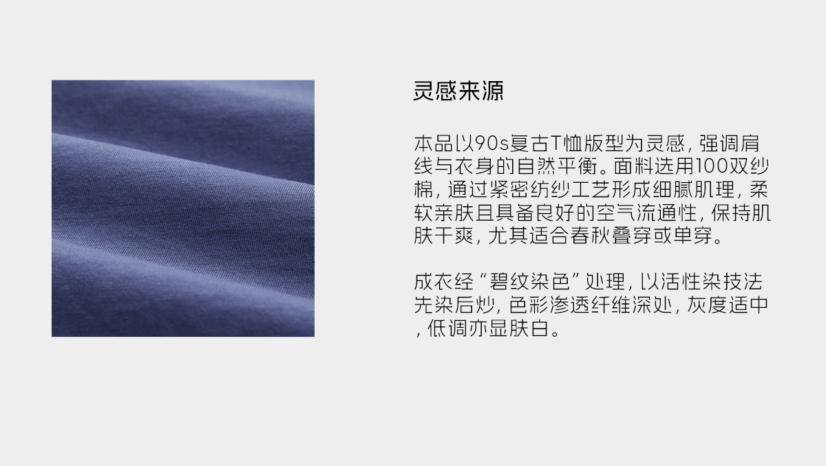ROMI STUDIO“复古色彩”蓝染舒适棉质纺织打底圆领长袖 RWCAS65007