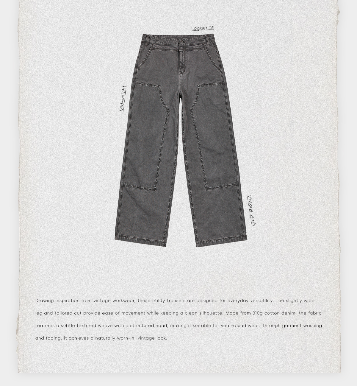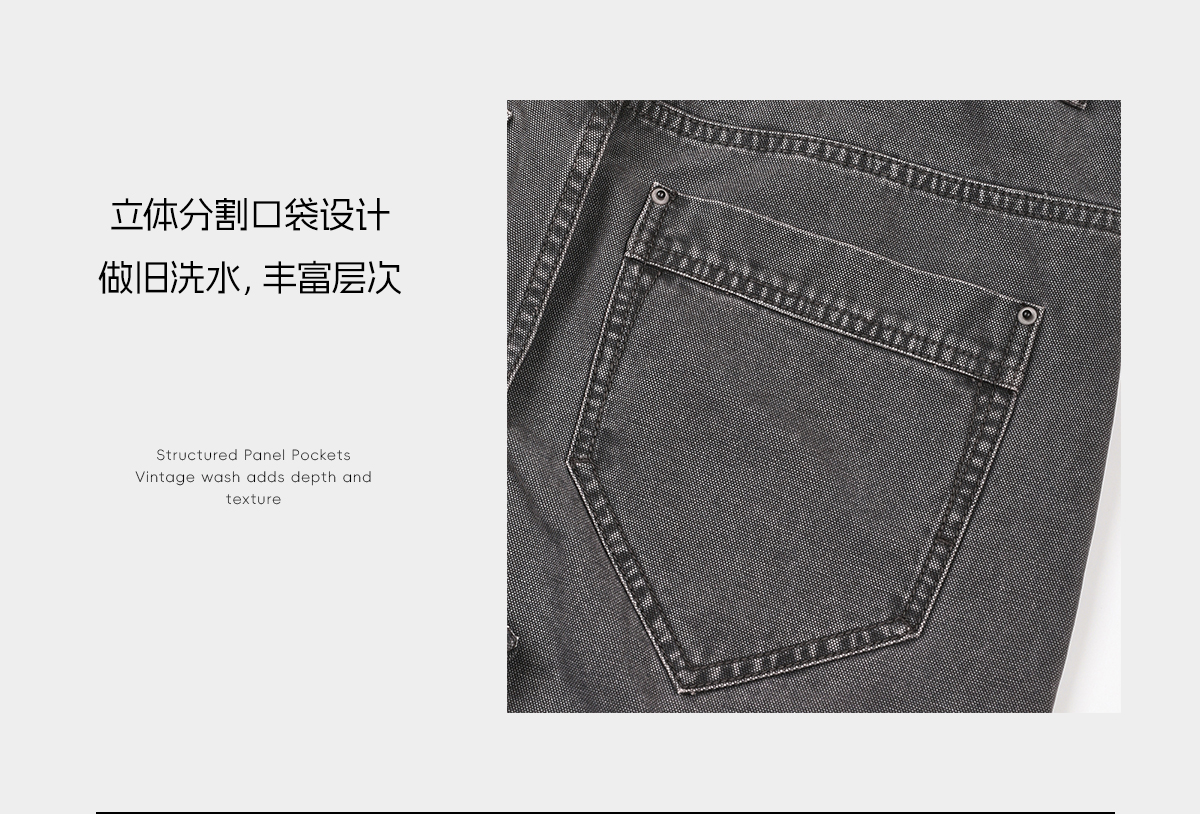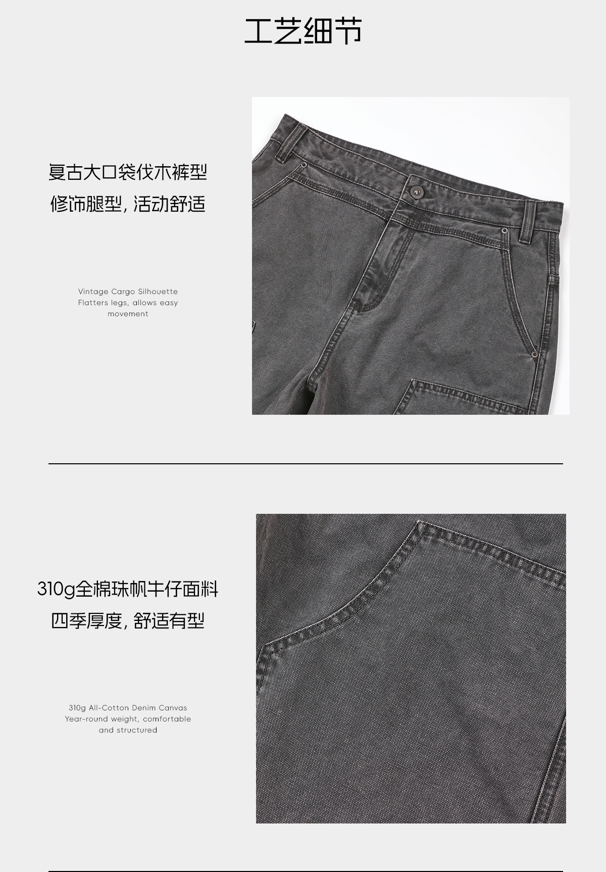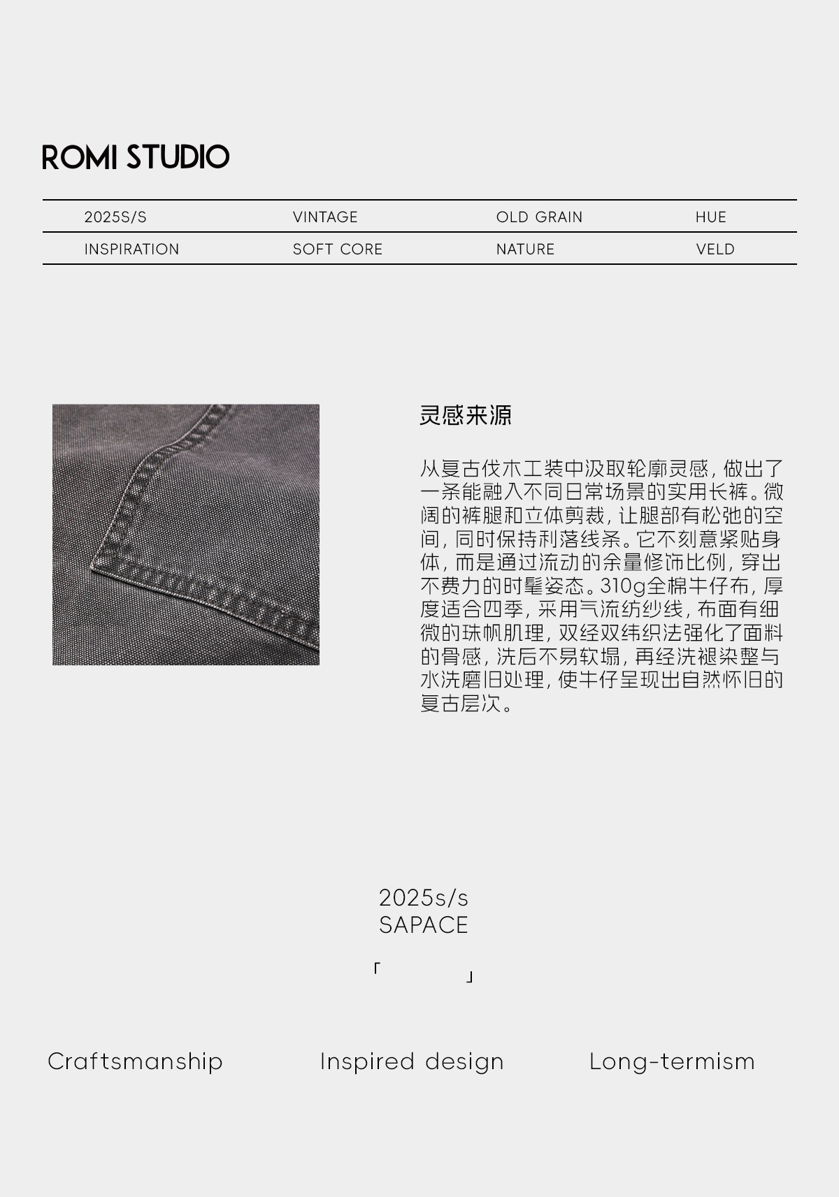 ROMI STUDIO“复古时髦”100%棉珠帆肌理大口袋牛仔裤RWCAX87438