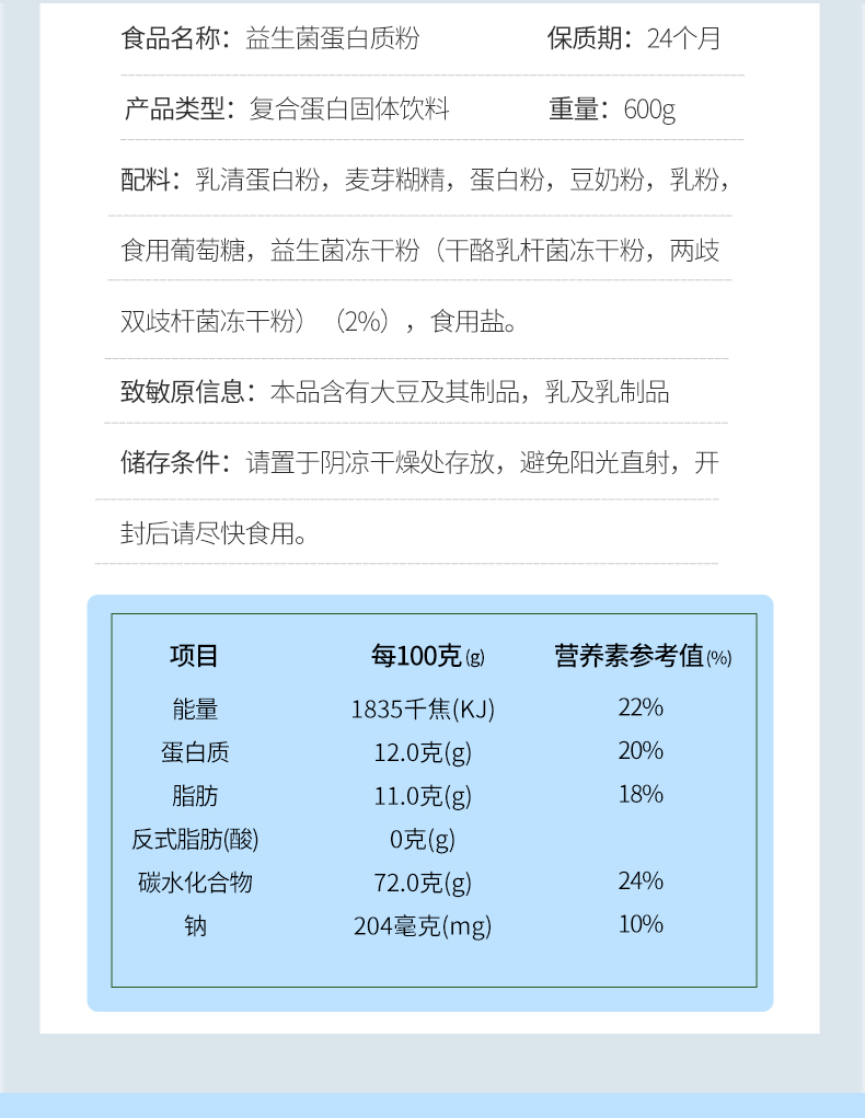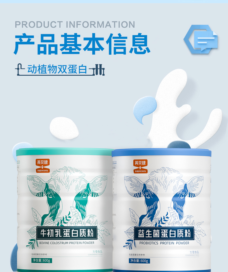 规格一:600g牛初乳蛋白粉+600g益生菌蛋白粉+150g袋装蛋白质粉*2+150g黑豆粉袋装*1+72克钙片*3+礼盒