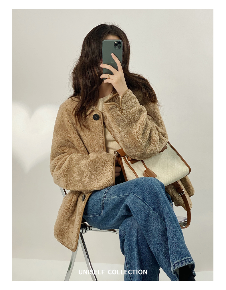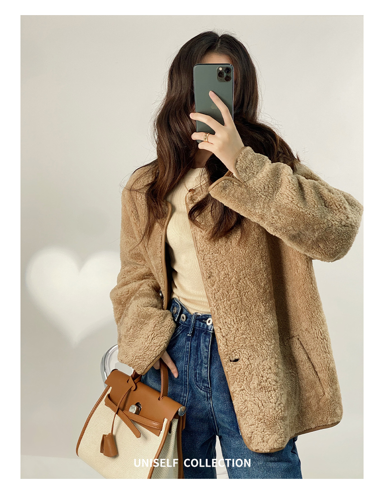 YX【定制20天】高级感羊剪绒皮草外套女2022冬季新款韩版时尚气质减龄保暖大衣