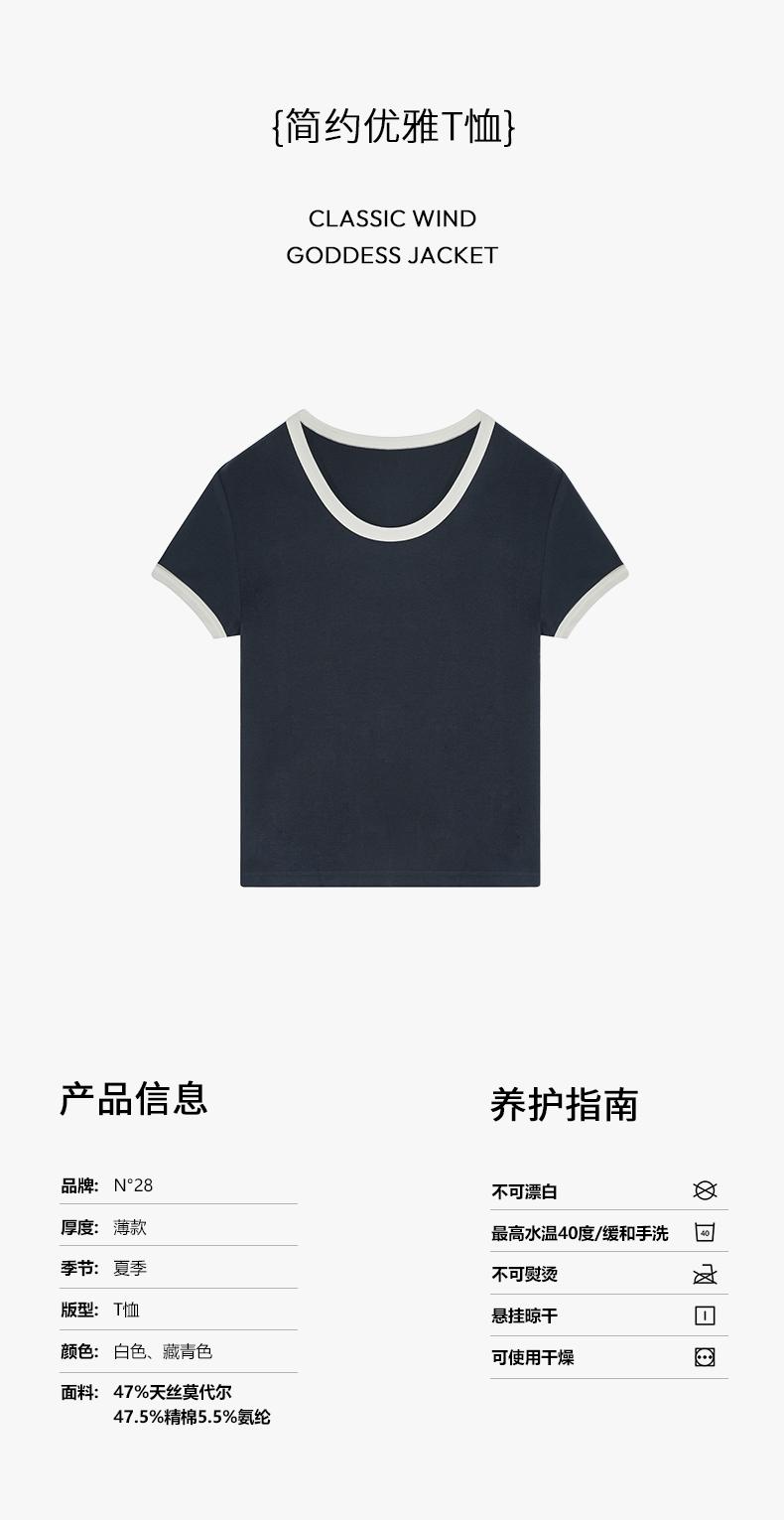 【破价】N°28 2025夏新款拼接T恤休闲时尚百搭日常圆领上衣895241T107