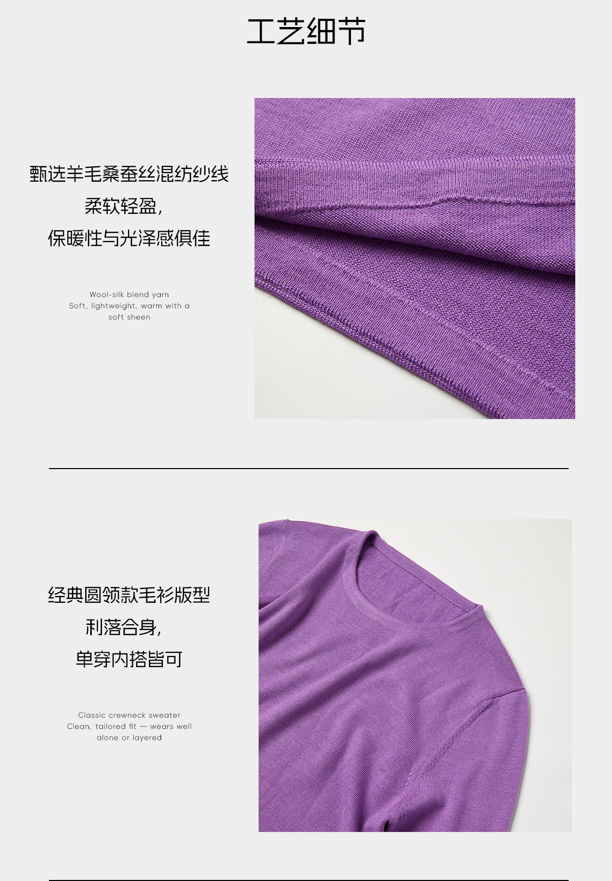 ROMI STUDIO“绝绝紫”羊毛桑蚕丝舒适圆领套头打底毛衫 RWCWST6961