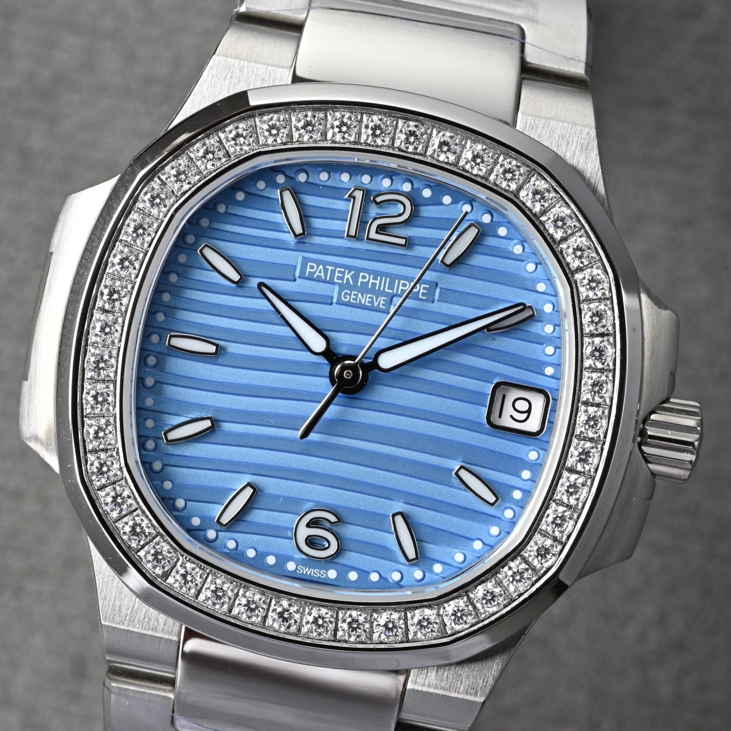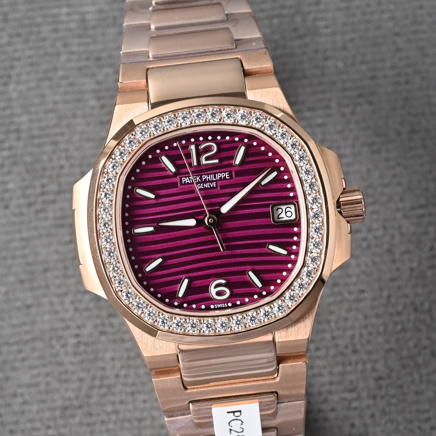 下单即赠送表带一副,赠送便捷真皮收纳礼盒一套。最高版 PP鹦鹉螺7010系列!表壳整圈共镶嵌46粒1.8的真钻石💎,约0.73克拉,搭载原装瑞士石英机芯,真正做到0误差0故障,自带或送礼再无后顾之忧。百达翡丽运动优雅系列(Nautilus鹦鹉螺)作为顶级腕表品牌中的经典运动款,自1976年问世以来便以其独特的舷窗设计美学和卓越制表工艺享誉全球。其中7010型号作为女款鹦鹉螺的代表作,凭借其精致尺寸、优雅设计与卓越性能,成为众多女性表迷梦寐以求的腕间艺术品。表壳材质采用日本进口316精钢,表身做到6.9厚度真正做到薄如蝉翼,整表真空炉内玫瑰金不掉色。百达鹦鹉螺堪称一绝,钢表之王!此款鹦鹉螺女款不仅拥有男表的优雅运动风格,还增加了几分柔美、使得女装腕表更加个性时尚,也是当下最热门的PP女士腕表之一!配全套包装出,终身保修,不满意支持退换。