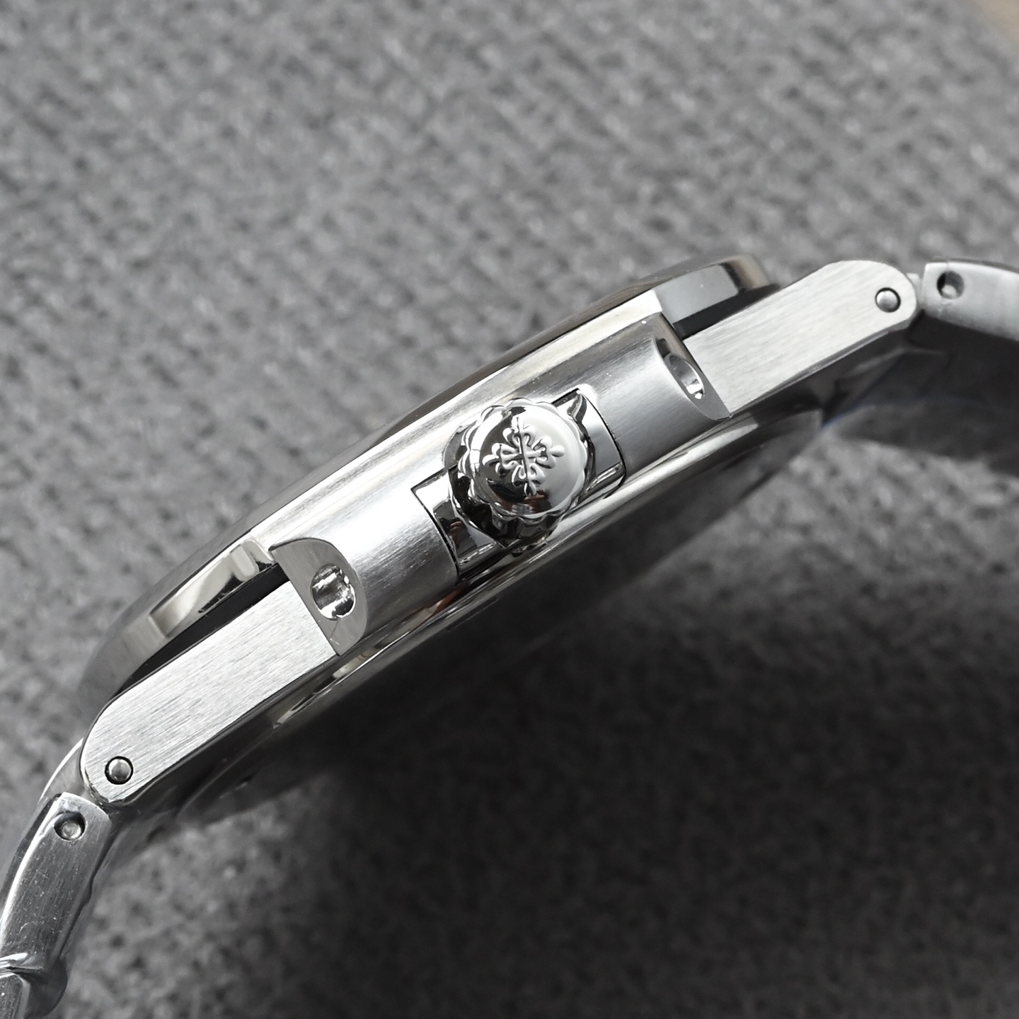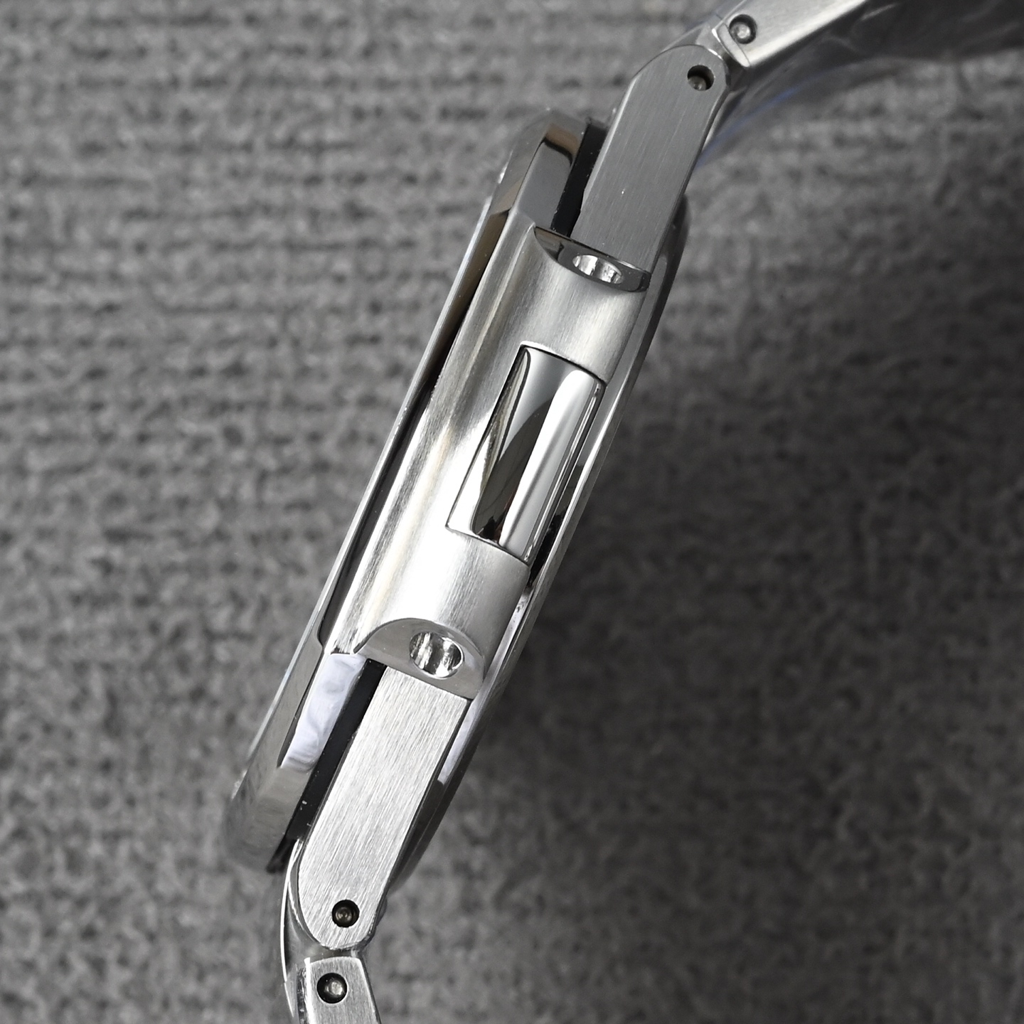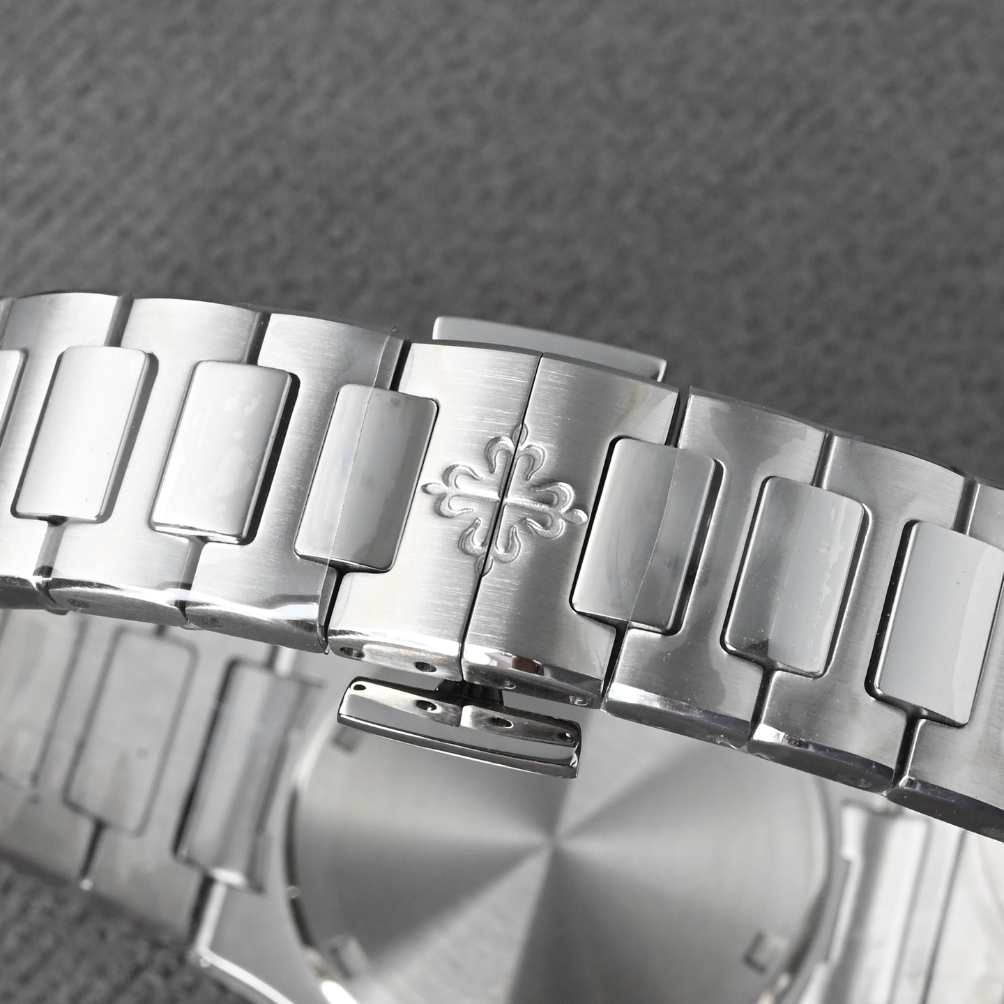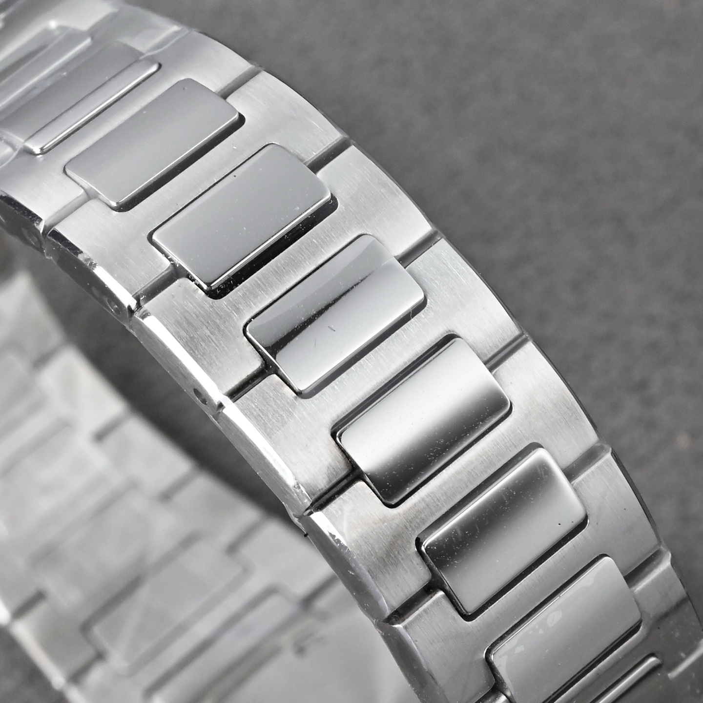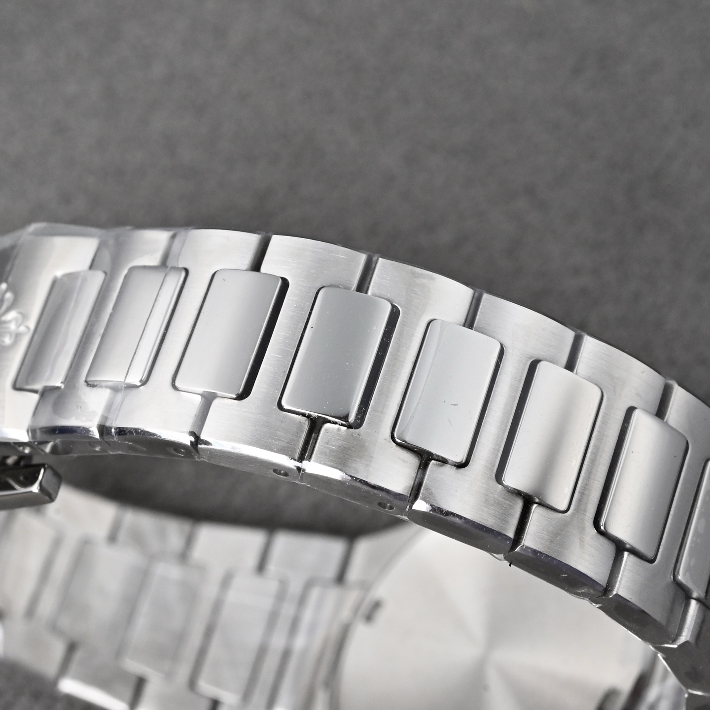 表带由多个独立链节组成,每个链节均经过精密CNC铣削,确保连接顺滑无松动。表带的抛光工艺极为复杂,需要很多步骤完成。机械喷砂用于初步去除金属毛刺。金刚砂起绒抛光 在铸铁盘上以"8字形"轨迹打磨,形成细腻的哑光效果。缎面磨砂 采用特殊磨砂轮,使链节表面呈现均匀的丝绒质感。镜面抛光 中央链节采用手工镜面抛光,使其在光线下呈现高反光效果。手工组装 每个链节需单独对齐、装配并焊接,确保整体柔韧度。销钉固定 采用精钢或贵金属销钉,确保长期使用不会松动,长期佩戴后,仍能保持链节间的灵活度,不会出现金属疲劳导致的变形。