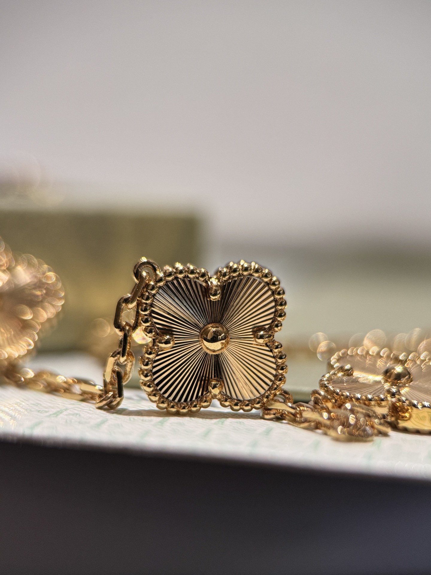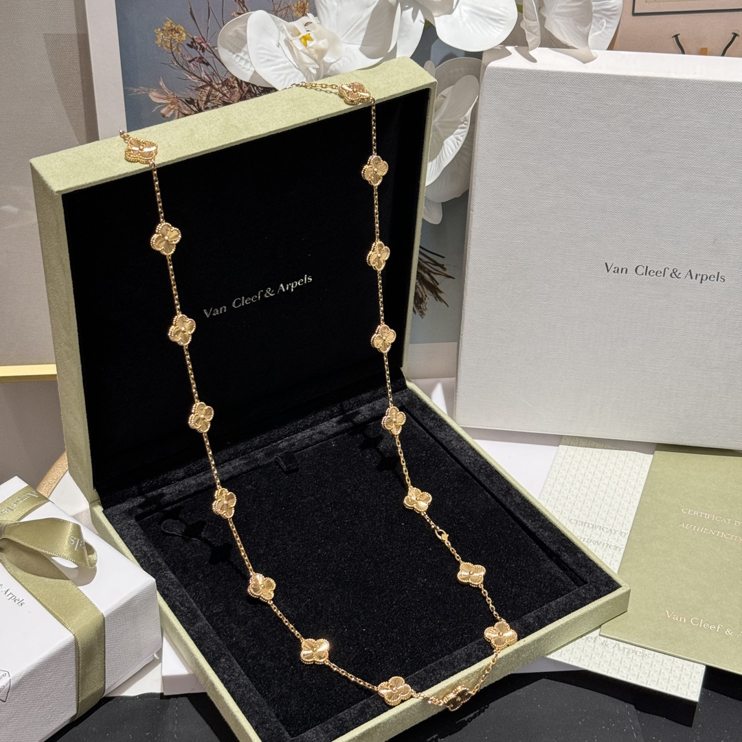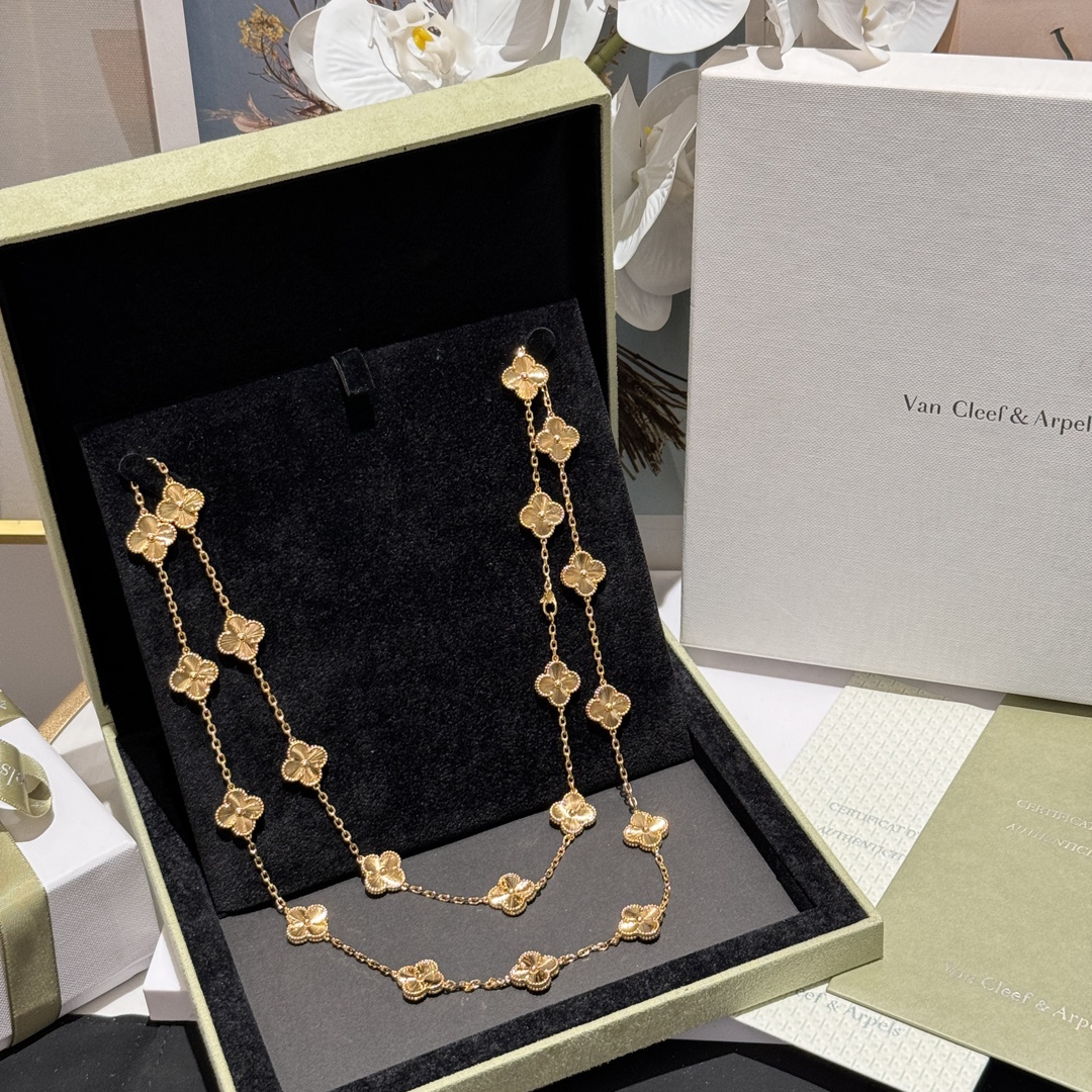 FD058#二十坠四叶草光金项链 黄金镭射闪闪??? 整个镭射工艺仿如钻石一样闪耀?? 精致贵气十足
