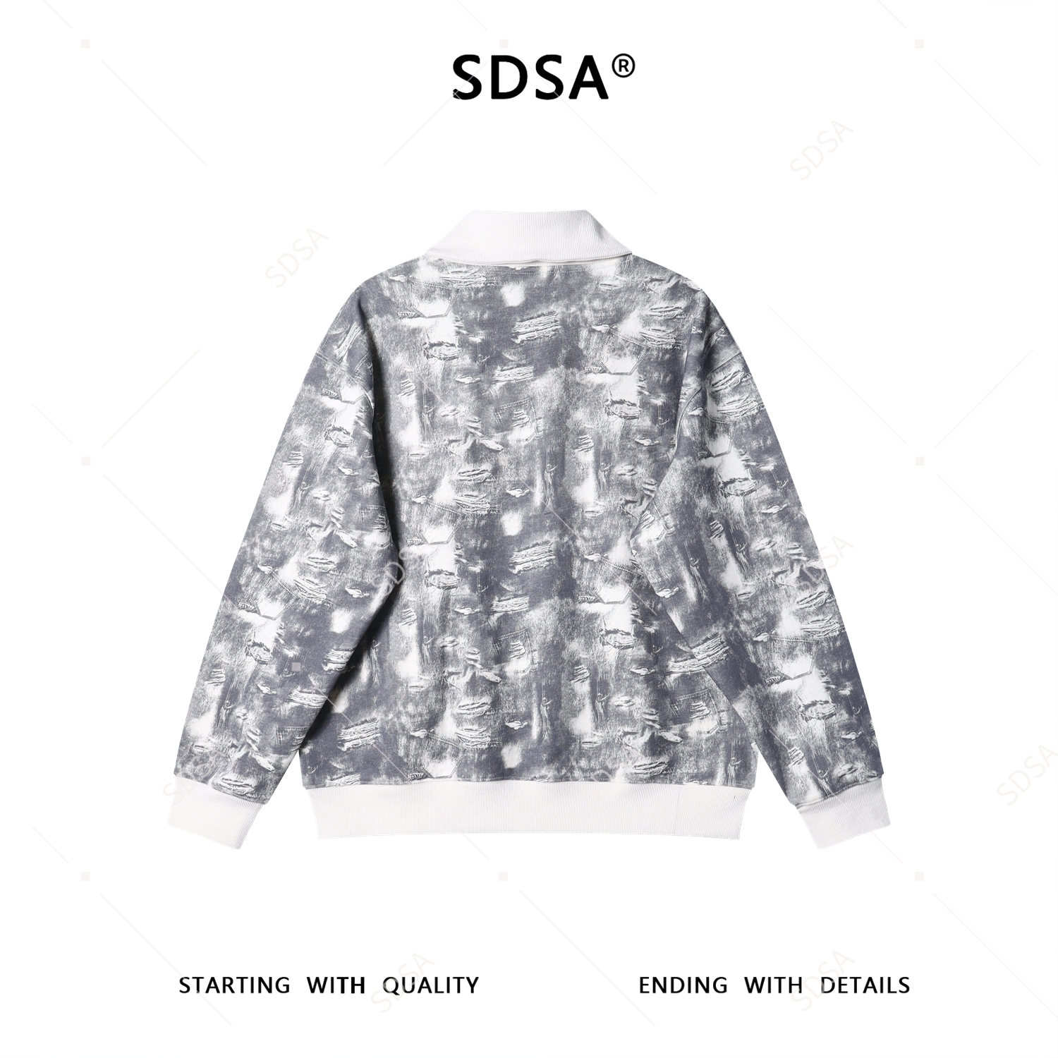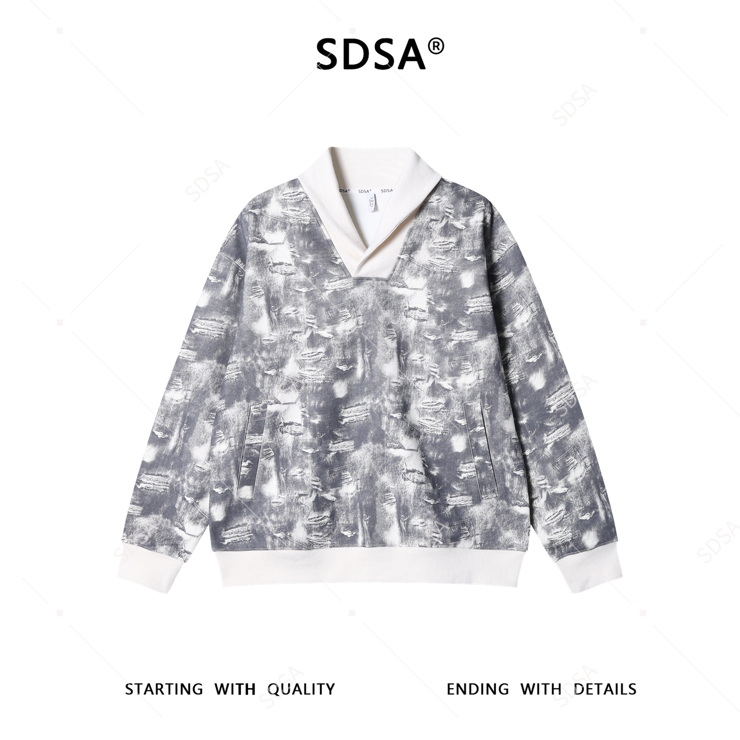 SDSA男士秋冬新款痞帅男装时尚扎染拼接翻领卫衣百搭时尚套头上衣