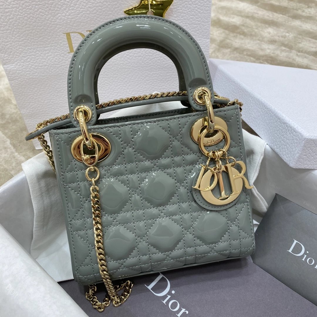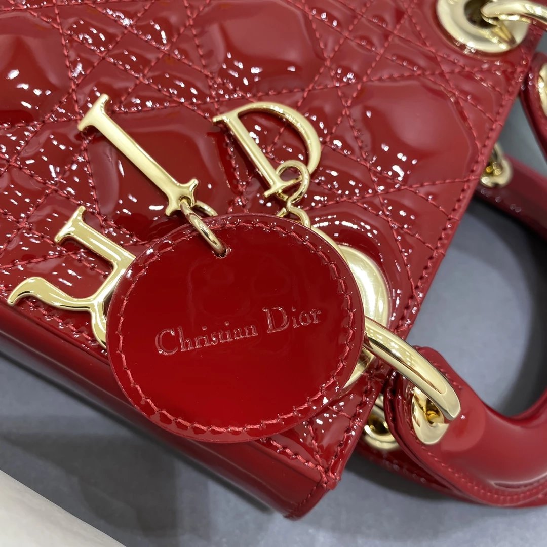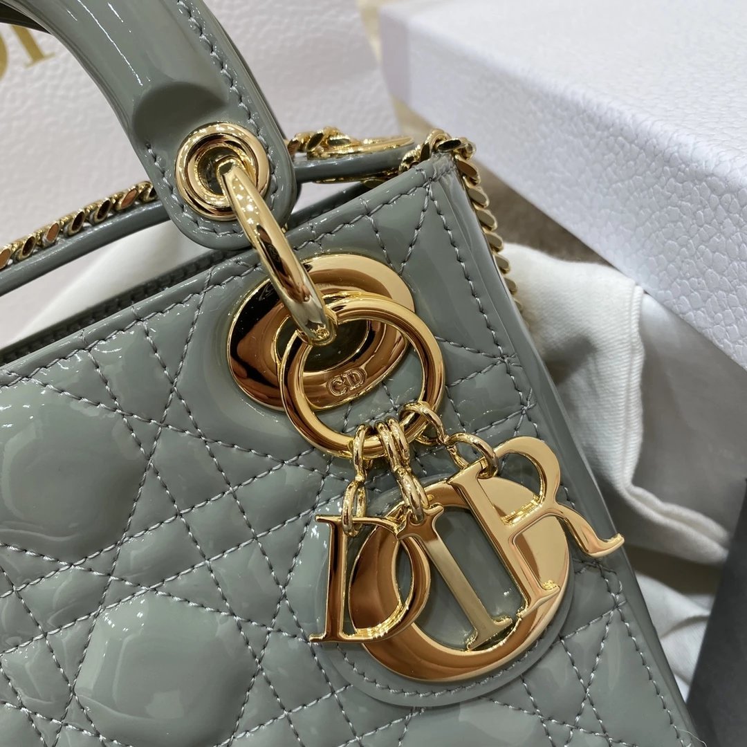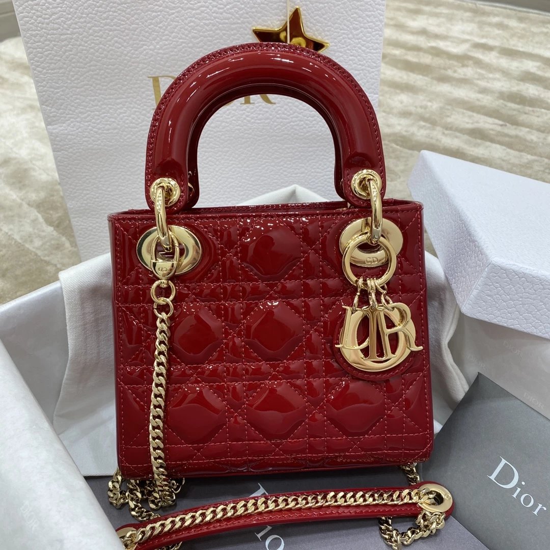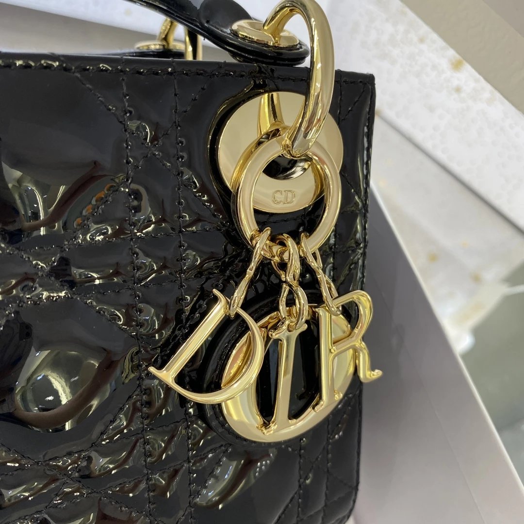 这款 Lady Dior 手袋集中体现了 Dior 对典雅和美丽的深刻洞见。时髦且富有女性魅力,经久不衰却又现代时尚。这款手袋采用漆皮牛皮革精心制作,标志性的经典藤格纹针脚包覆,精良的缝制针法立即突显。标志性“D. I. O. R.”吊饰彰显其轮廓。这款迷你手袋采用可拆卸链条肩带