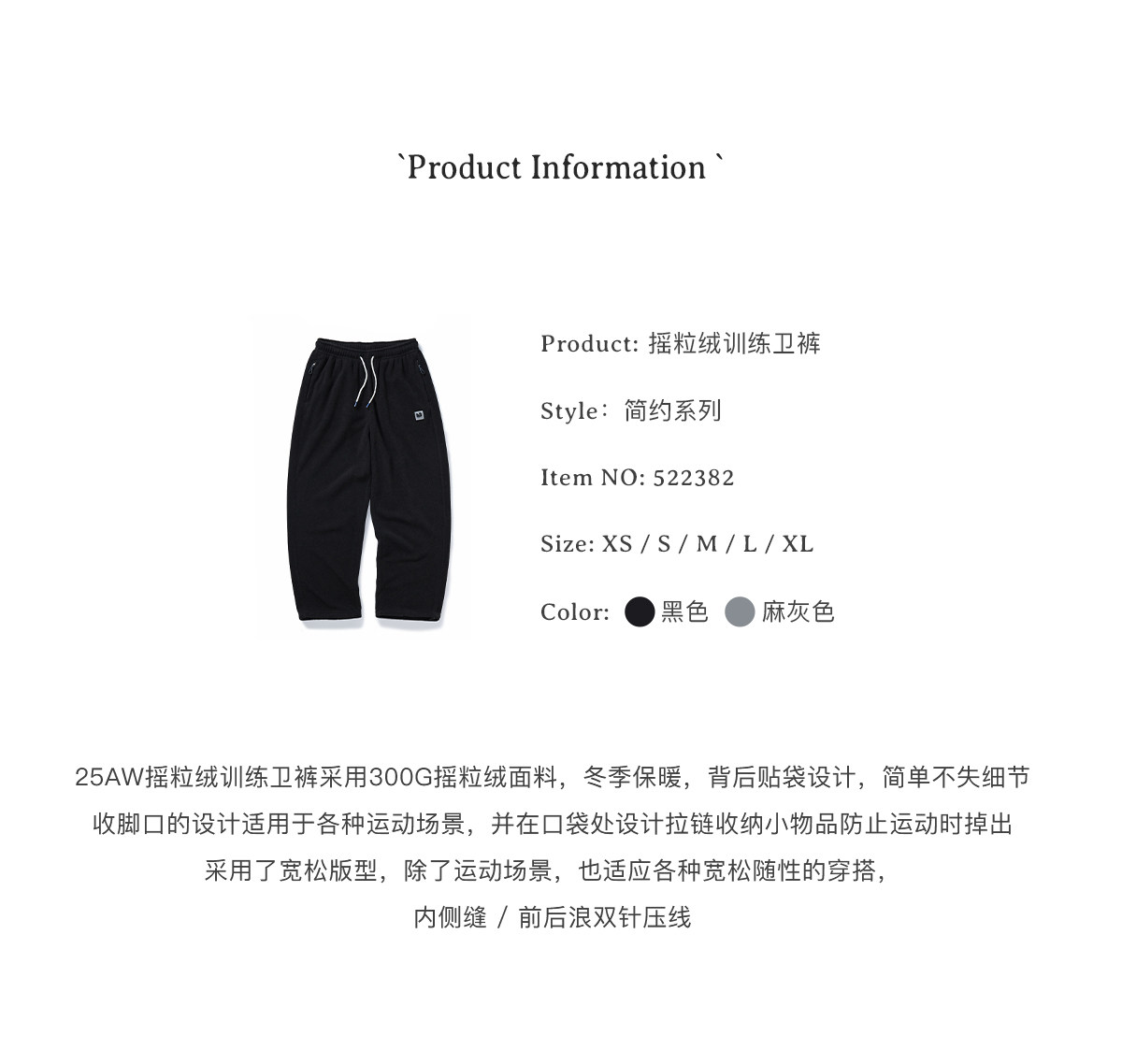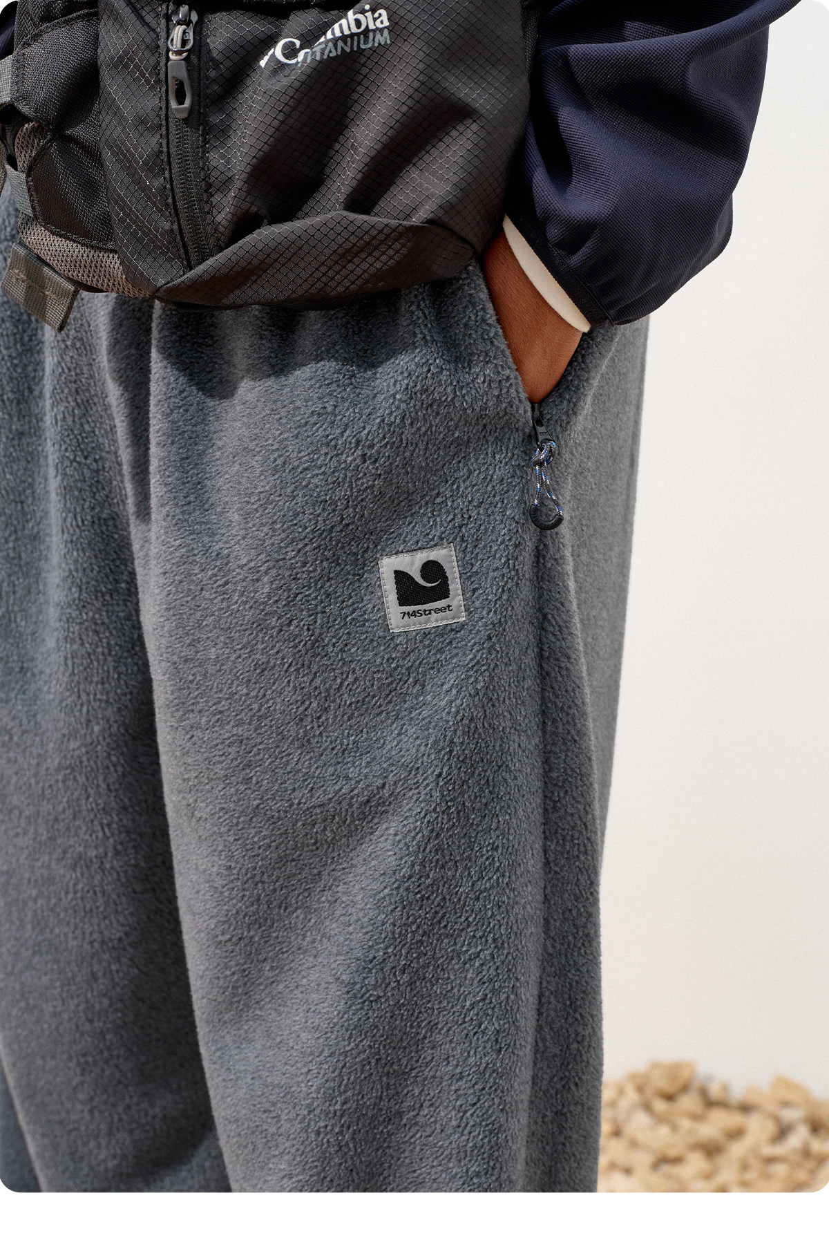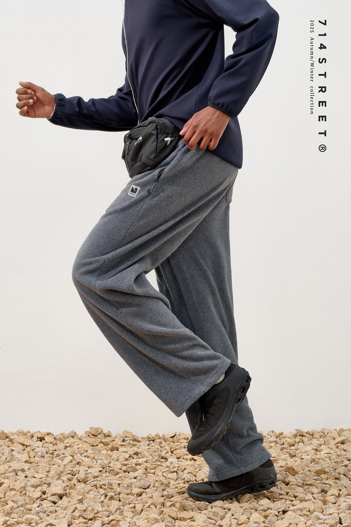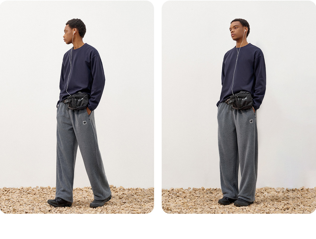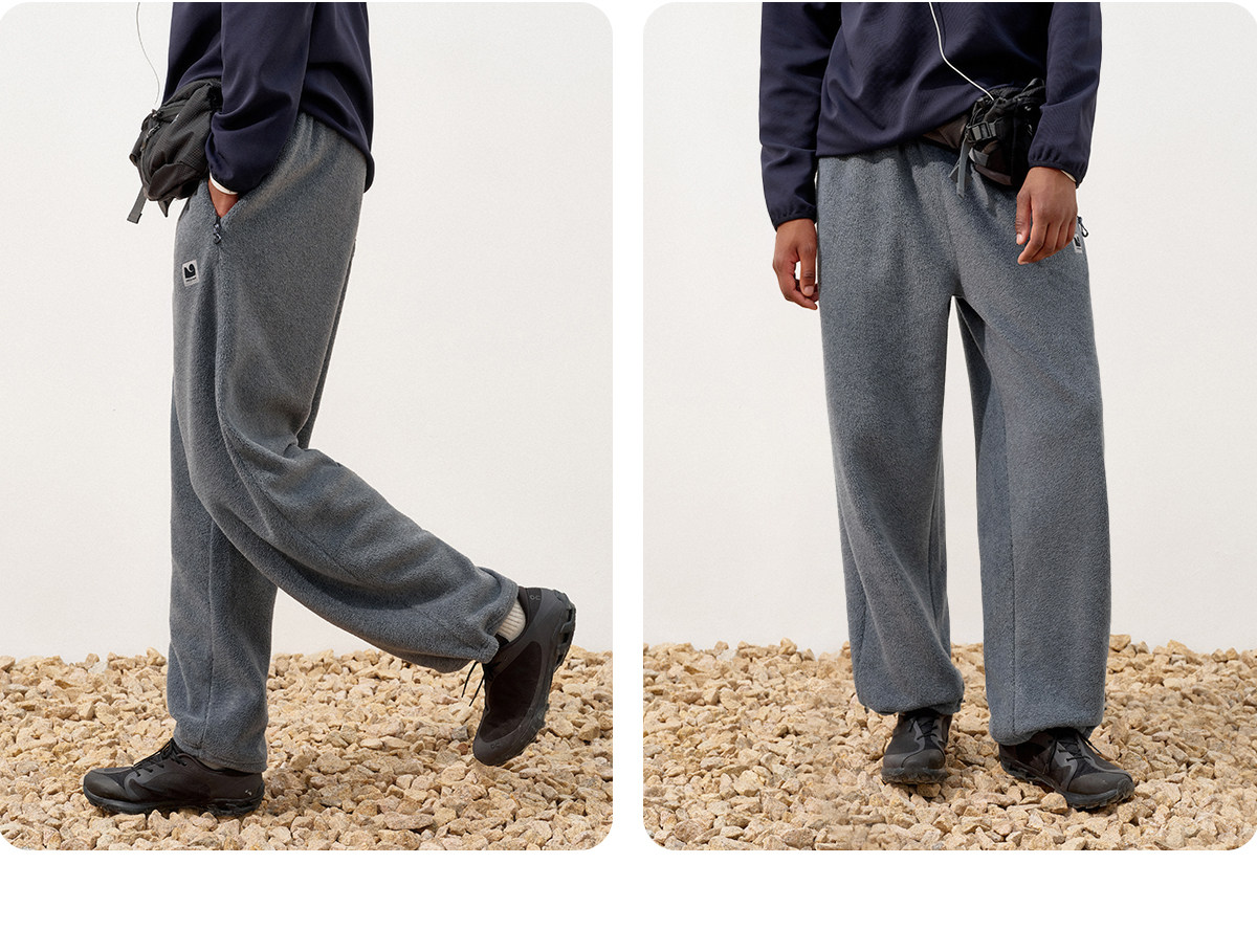 714street冬季保暖摇粒绒运动卫裤2025新款潮牌宽松加绒直筒裤男