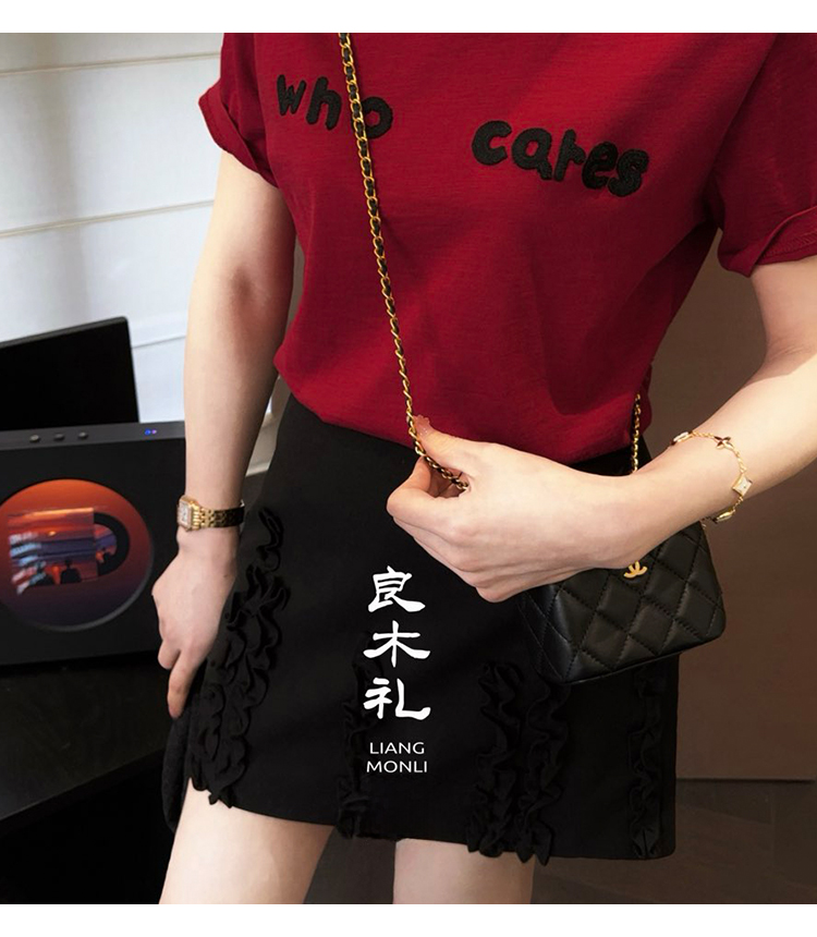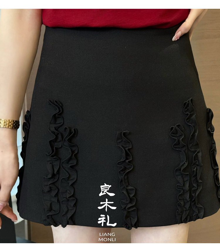 【预售7天】良木礼丝绒开叉半裙(黑绒绒)(Q2581130)