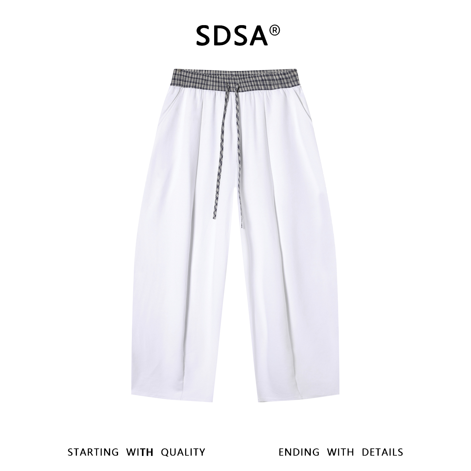 SDSA男装2026新款高贵轻奢潮牌拼接格纹腰头抽绳松紧休闲裤百搭
