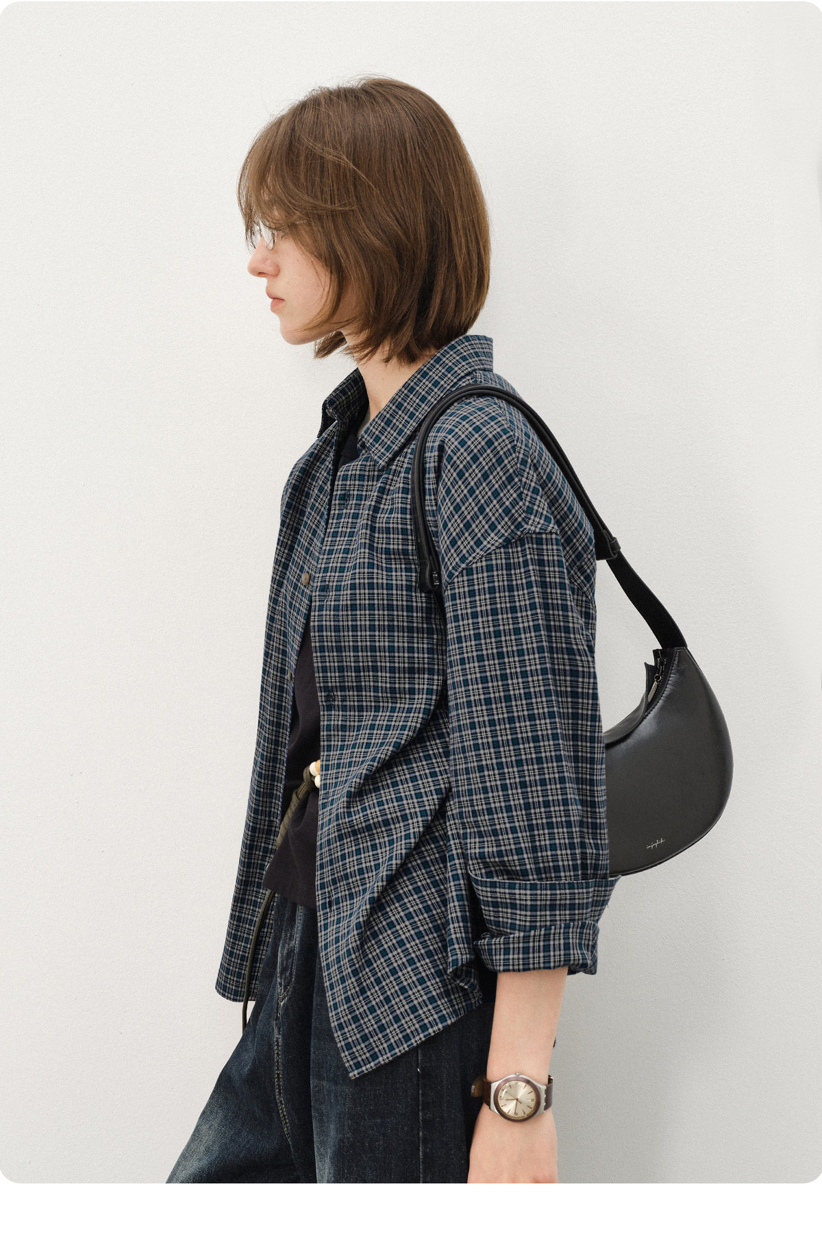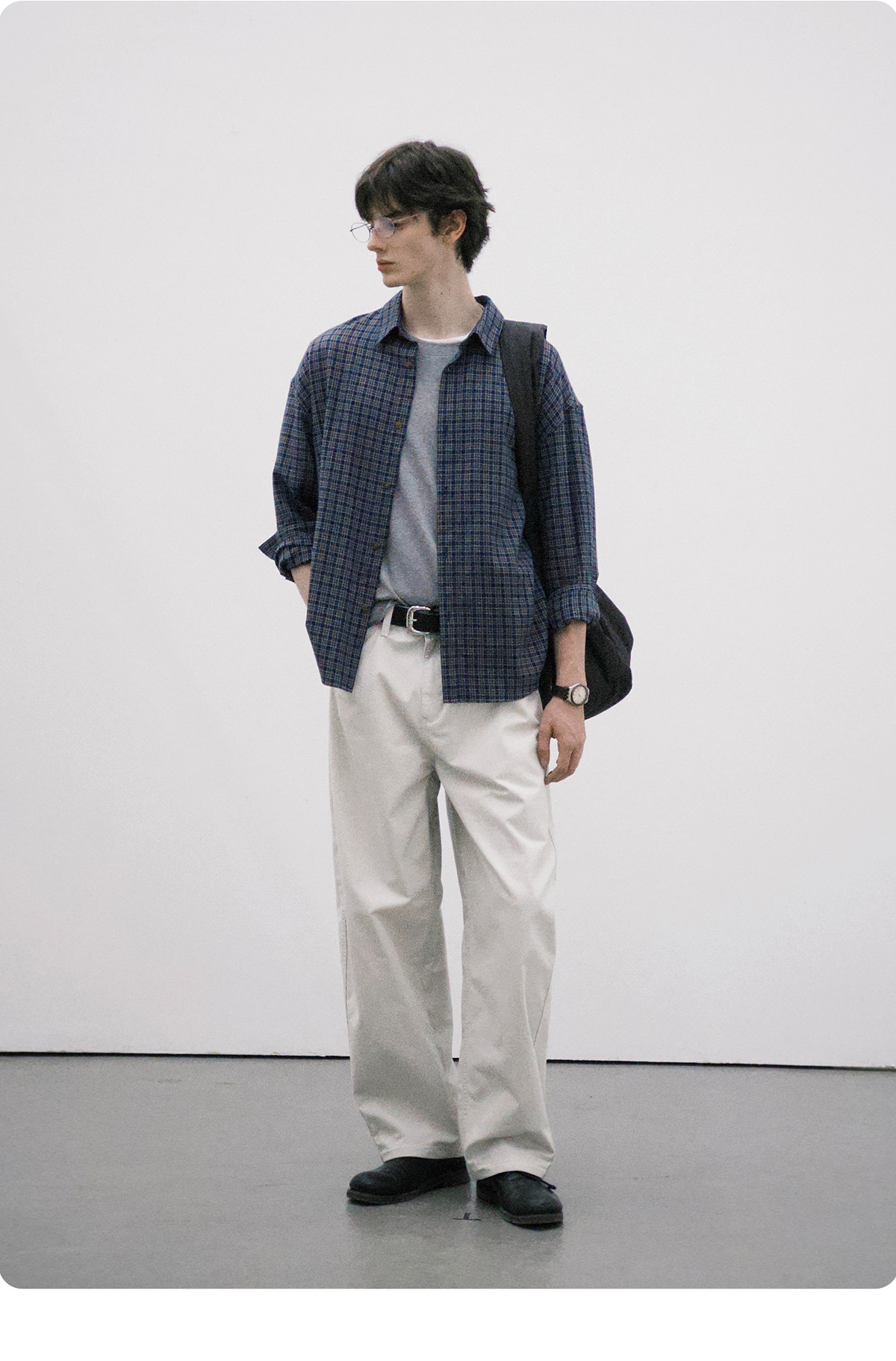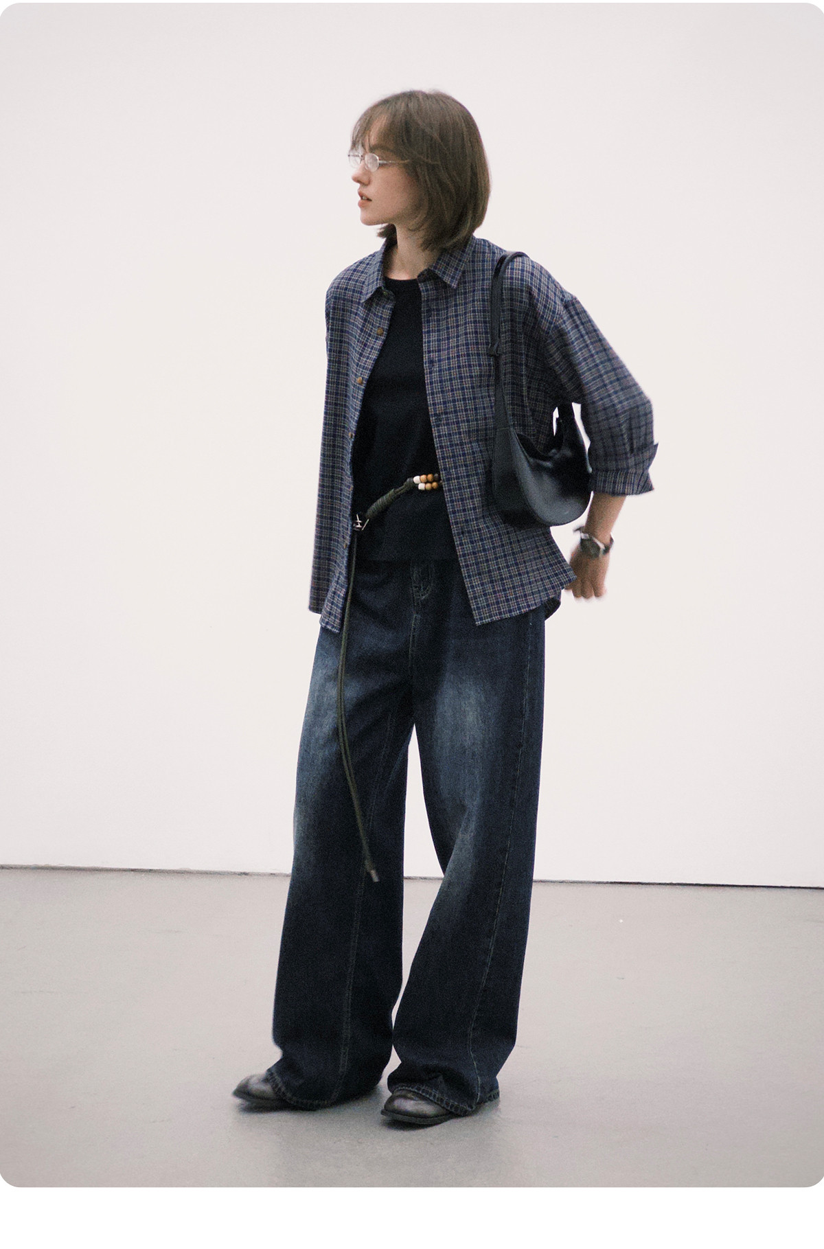 714street美式复古纯棉情侣长袖2025秋季新款miu系蓝色格子衬衫男