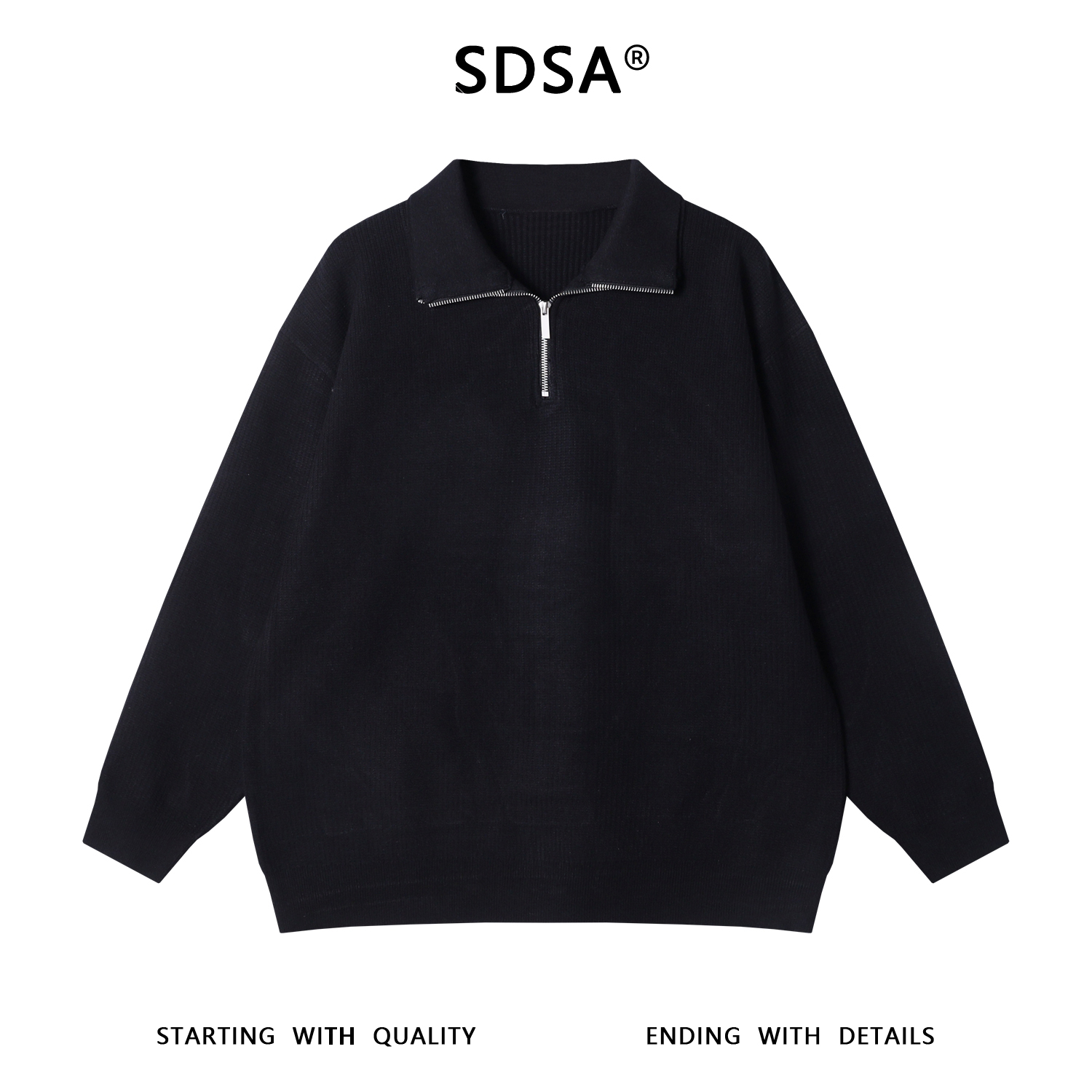 259626SDSA秋冬新款痞帅男装潮牌纯色半拉链翻领毛衣简约休闲套头上衣