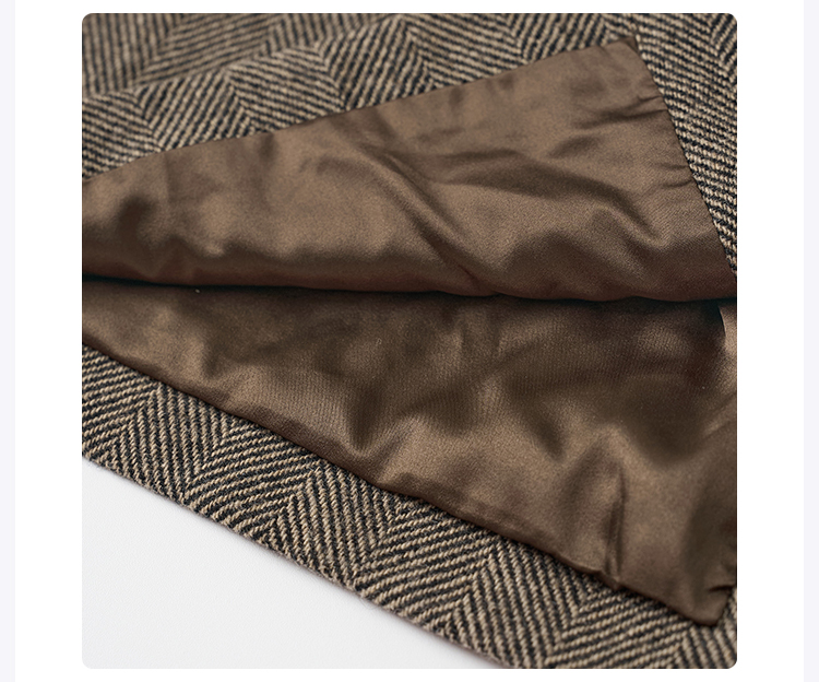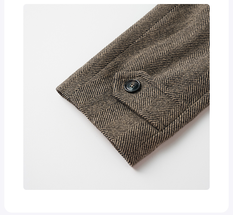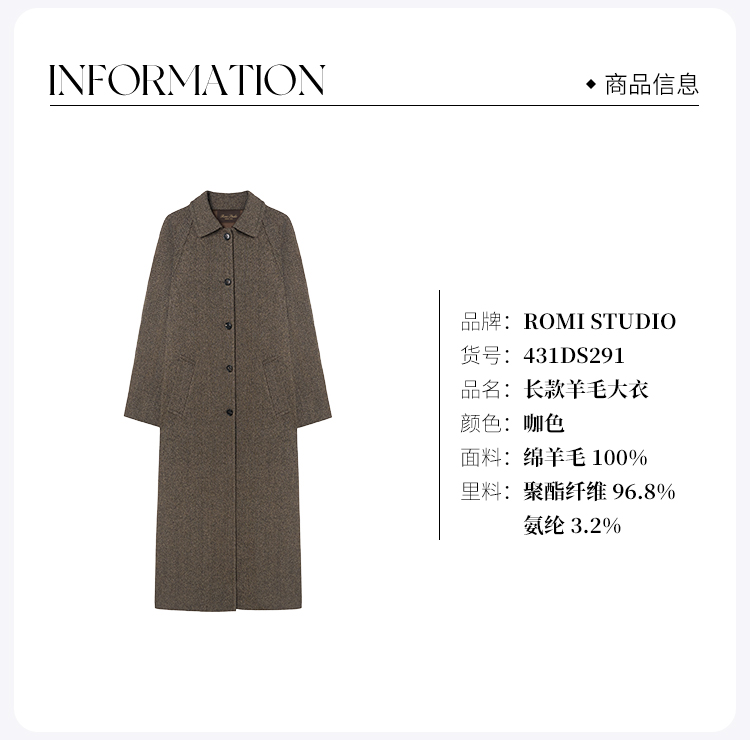 ROMI STUDIO“棕标甄选”100绵羊毛双面加厚人字纹长款风衣431DS291