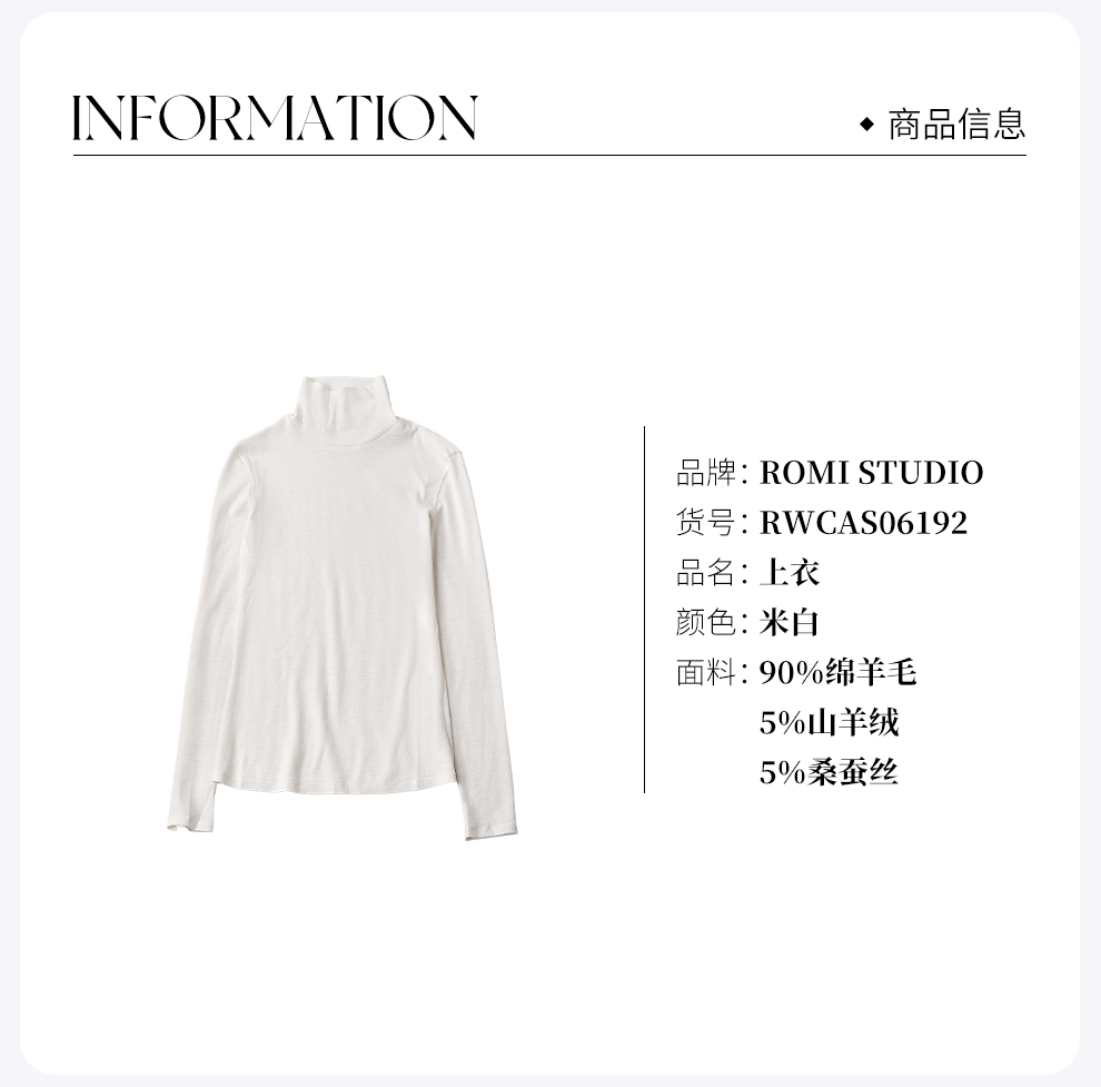 ROMI STUDIO丝光羊毛山羊绒桑蚕丝混纺高领打底上衣 RWCAS06192