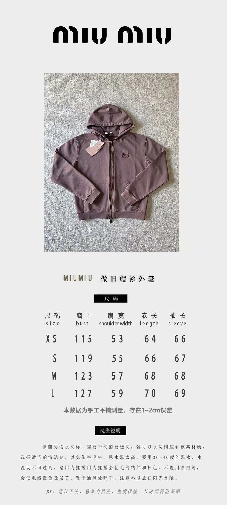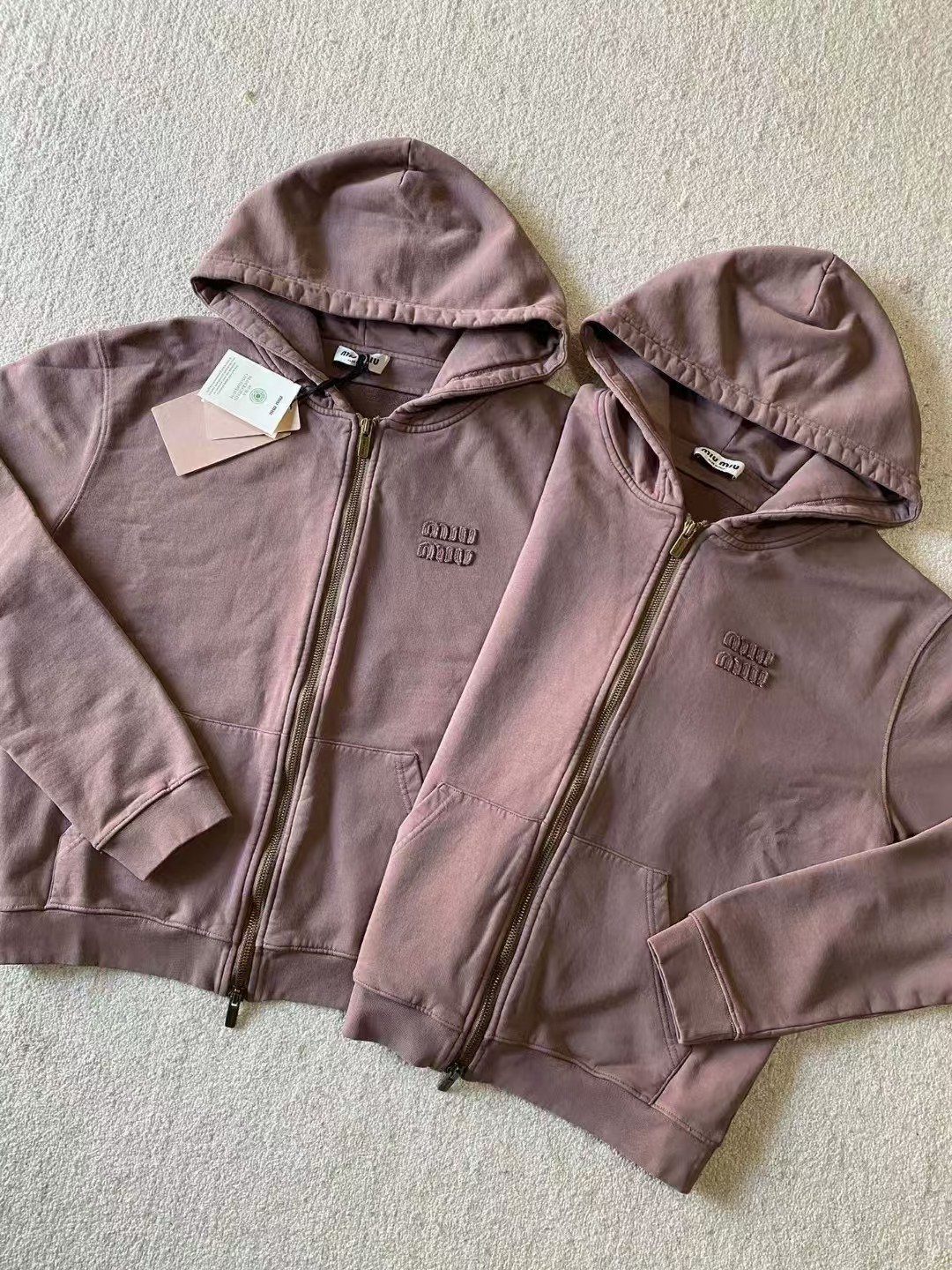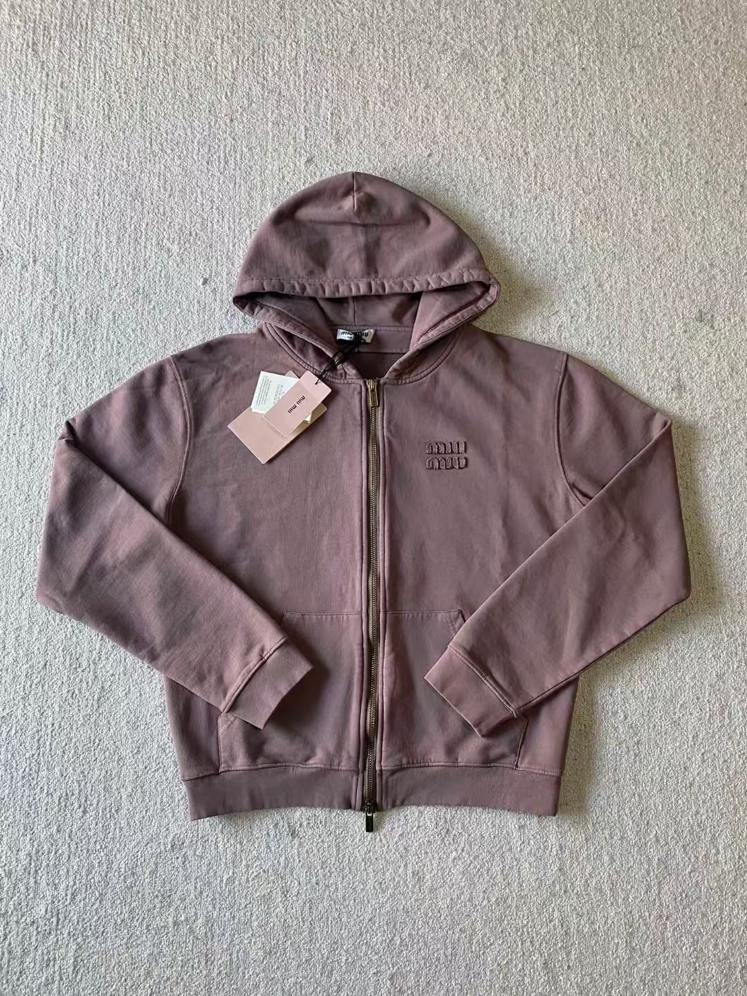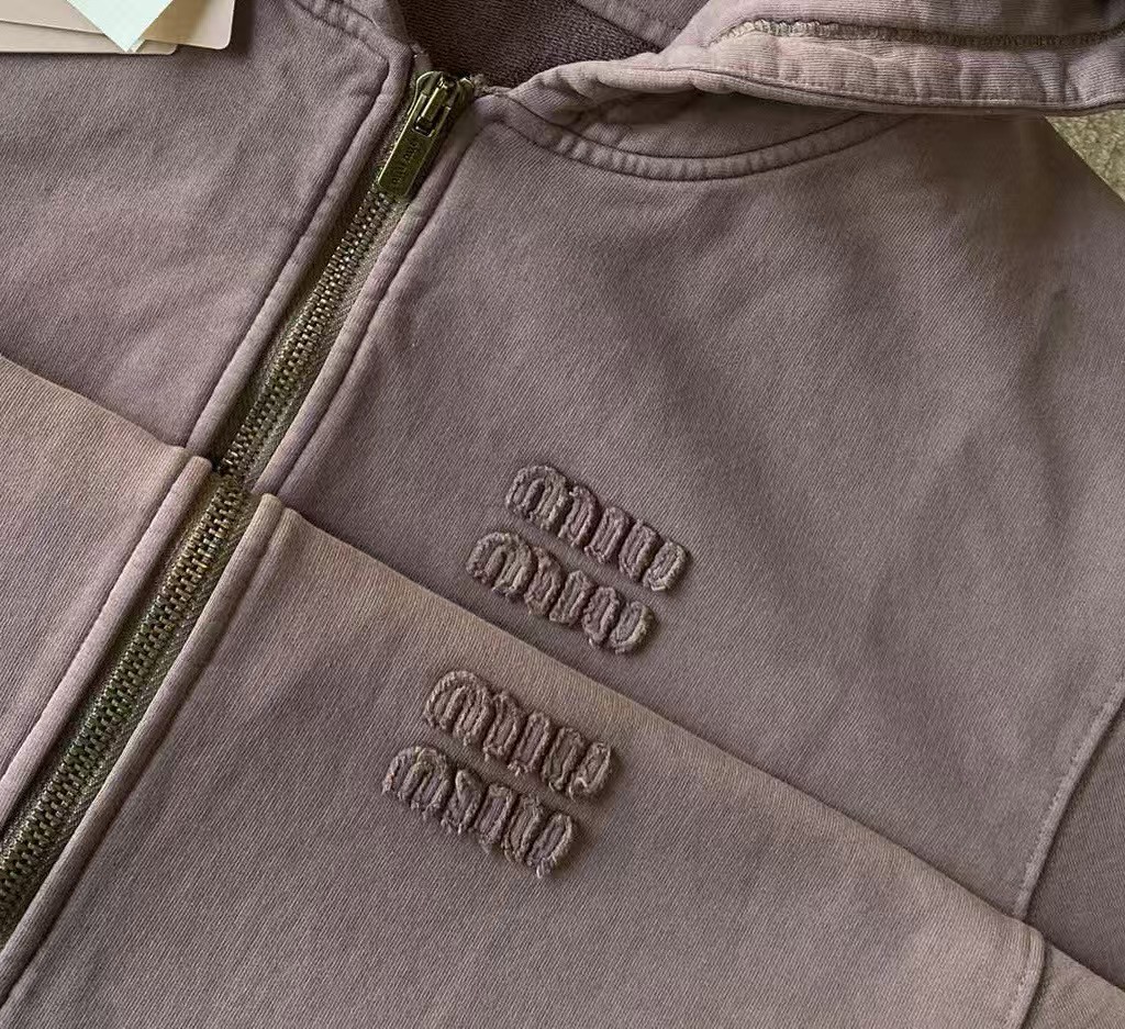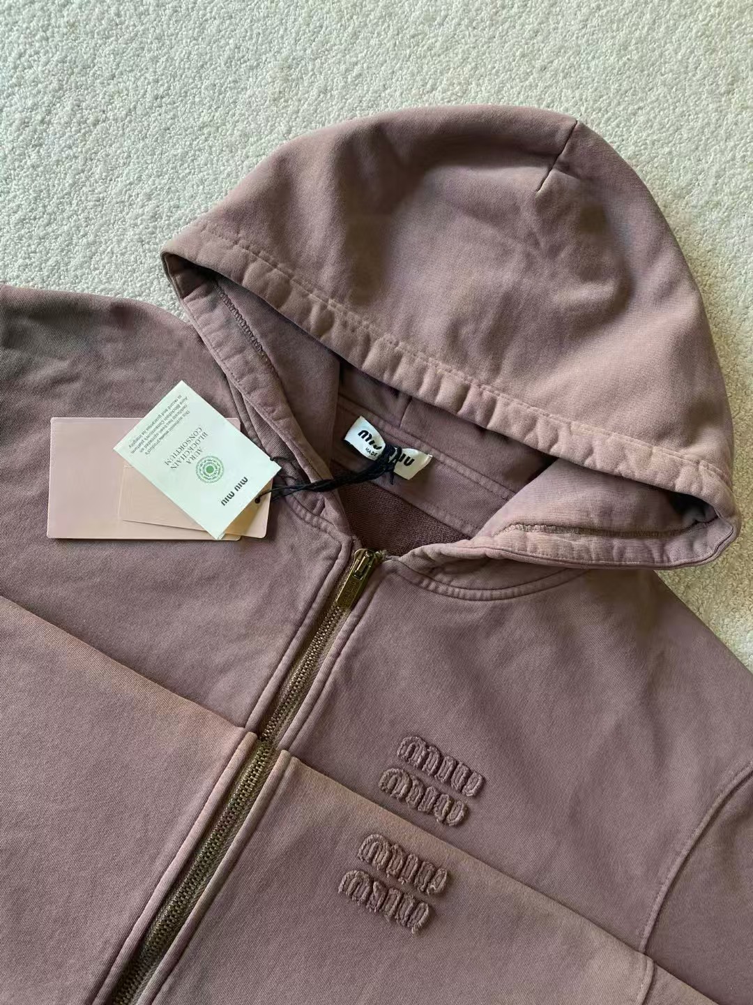 MiuMi*u…❤️原版级❤️绣布刺绣棕连帽外套