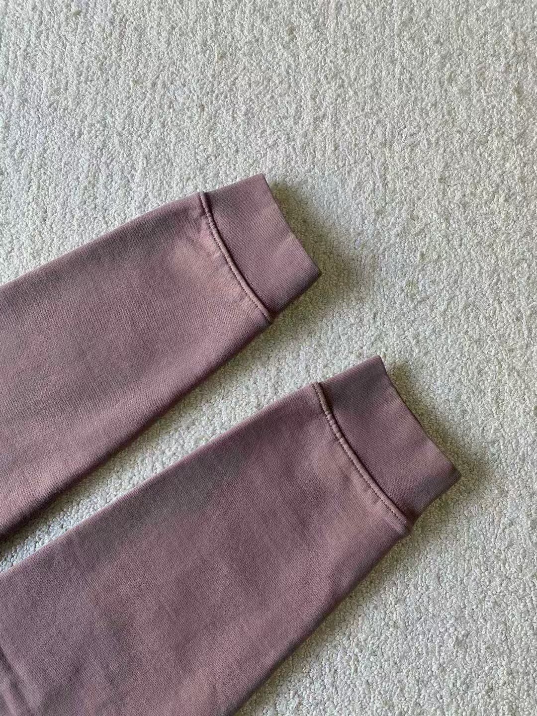 面料采用26S双纱+10S鱼鳞底面料,380g;搭配32S双纱螺纹,350g。鱼鳞底面料通过特定的织造工艺形成鱼鳞状底纹,对版按照经纬规律和形状进行排列交织,以确保纹理清晰、质地优良。面料经过精细的制作加工,具有良好的耐穿性、轻薄柔软、透气性好。