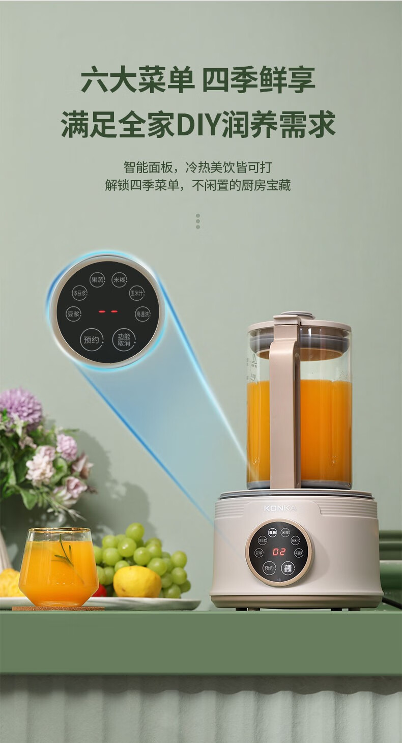 康佳(KONKA)豆浆机家用多功能辅食料理轻音破壁机KPBJ-6023-M