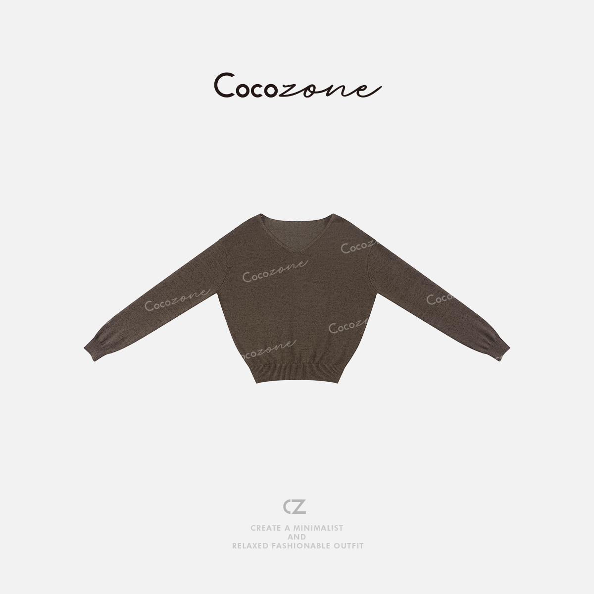 COCO ZONE 刘一一 棉莱赛尔混纺极简风V领长袖针织衫ACD2A0366