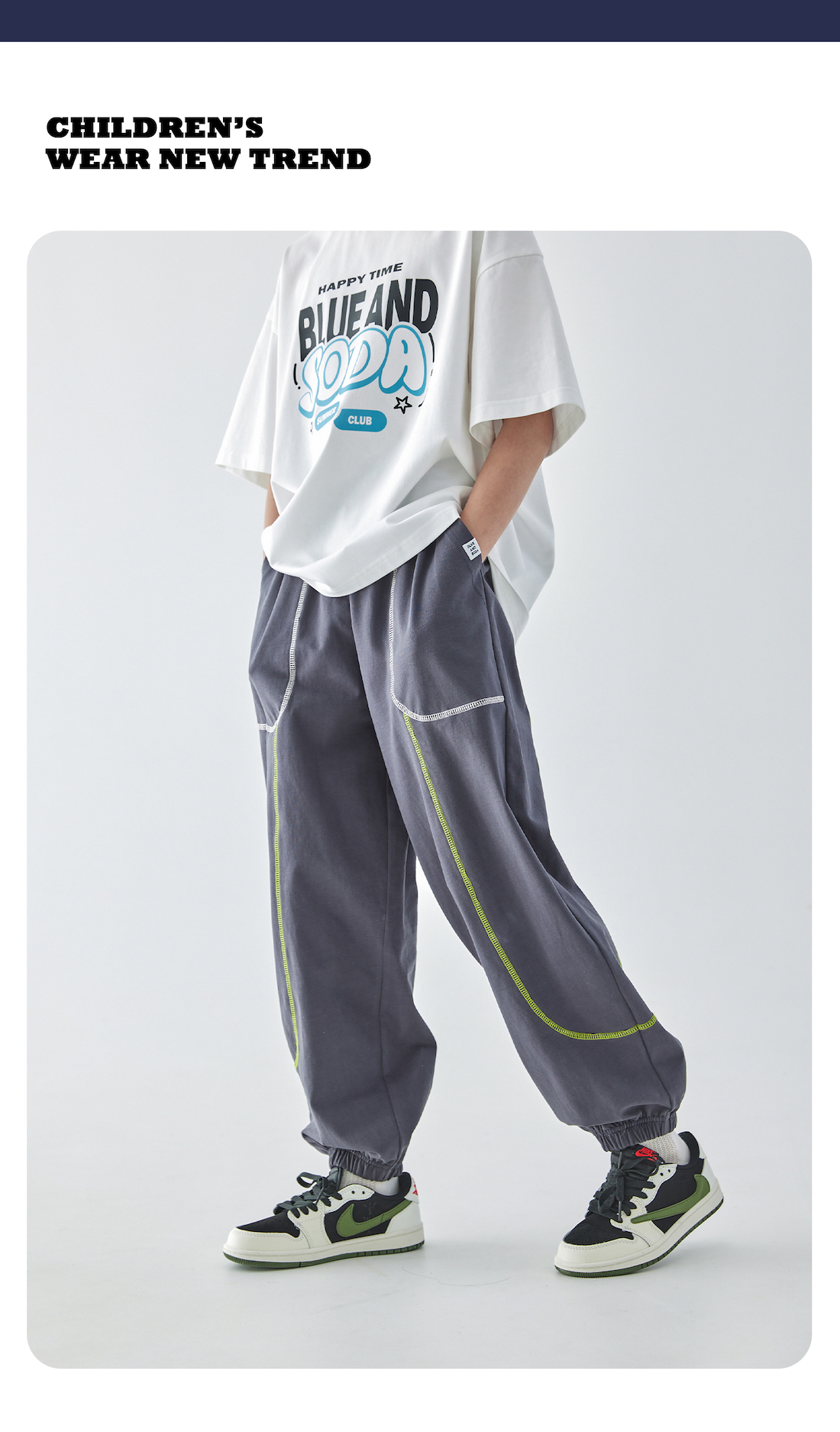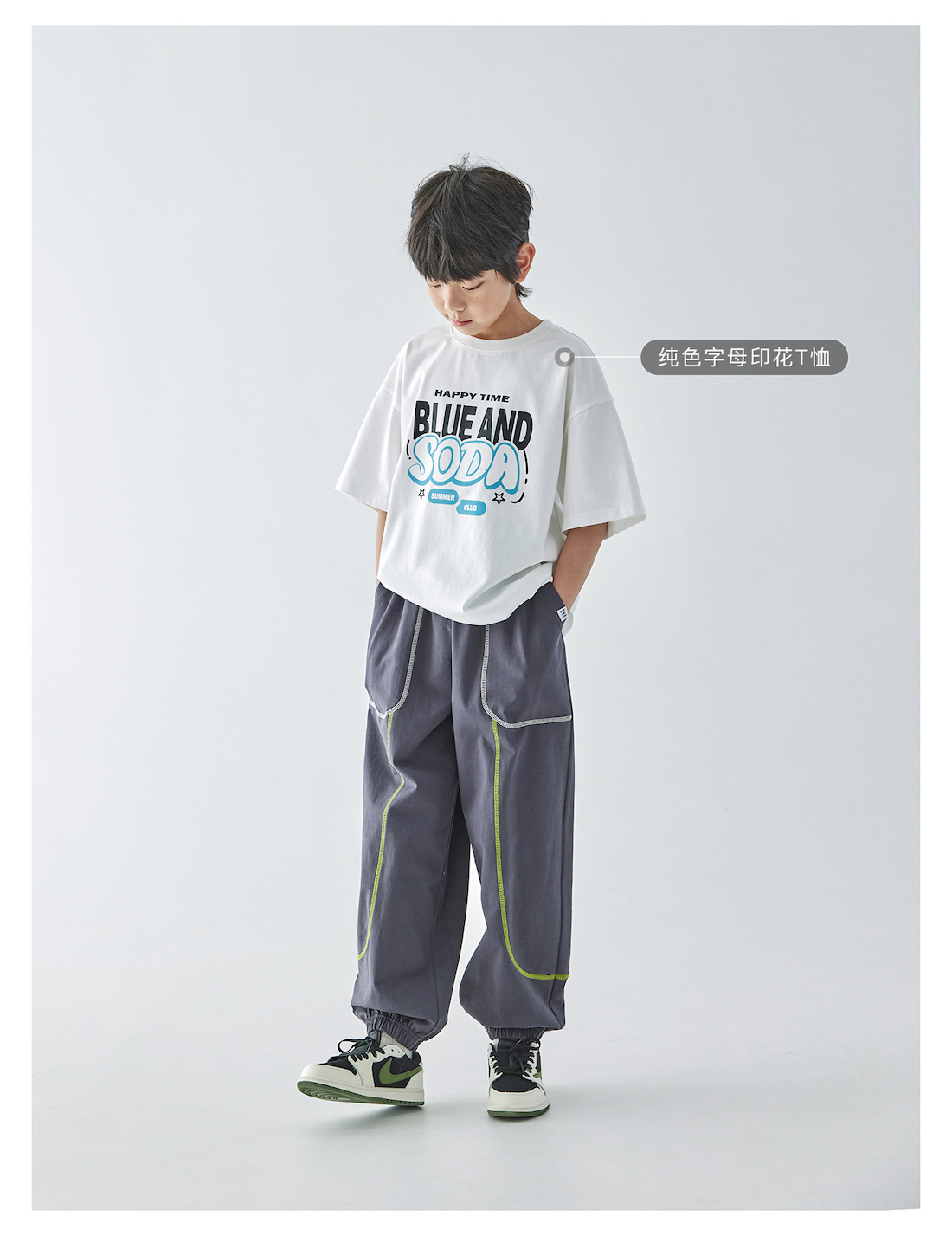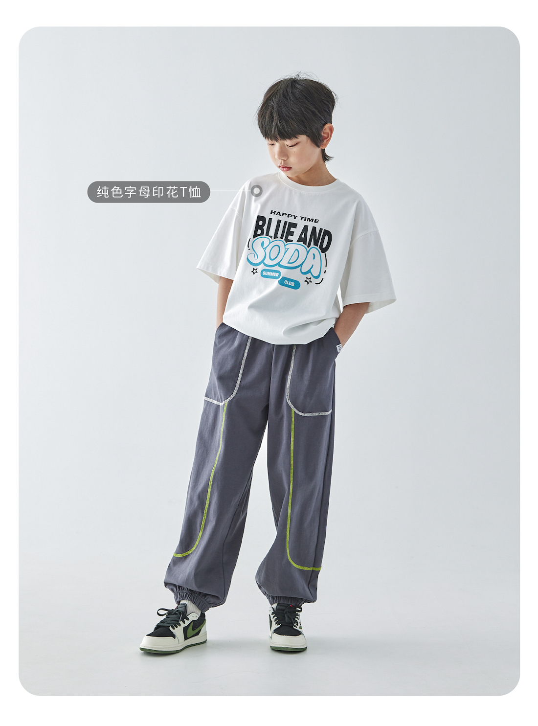 蓝汽水25年夏季新款男童亲子撞色线迹卫裤全棉针织简约休闲束脚裤