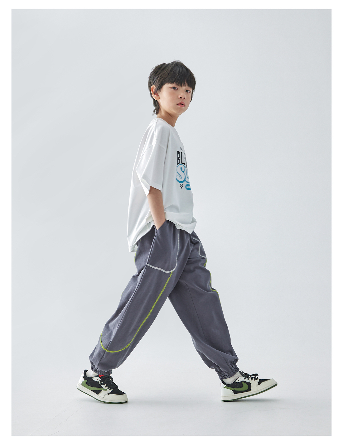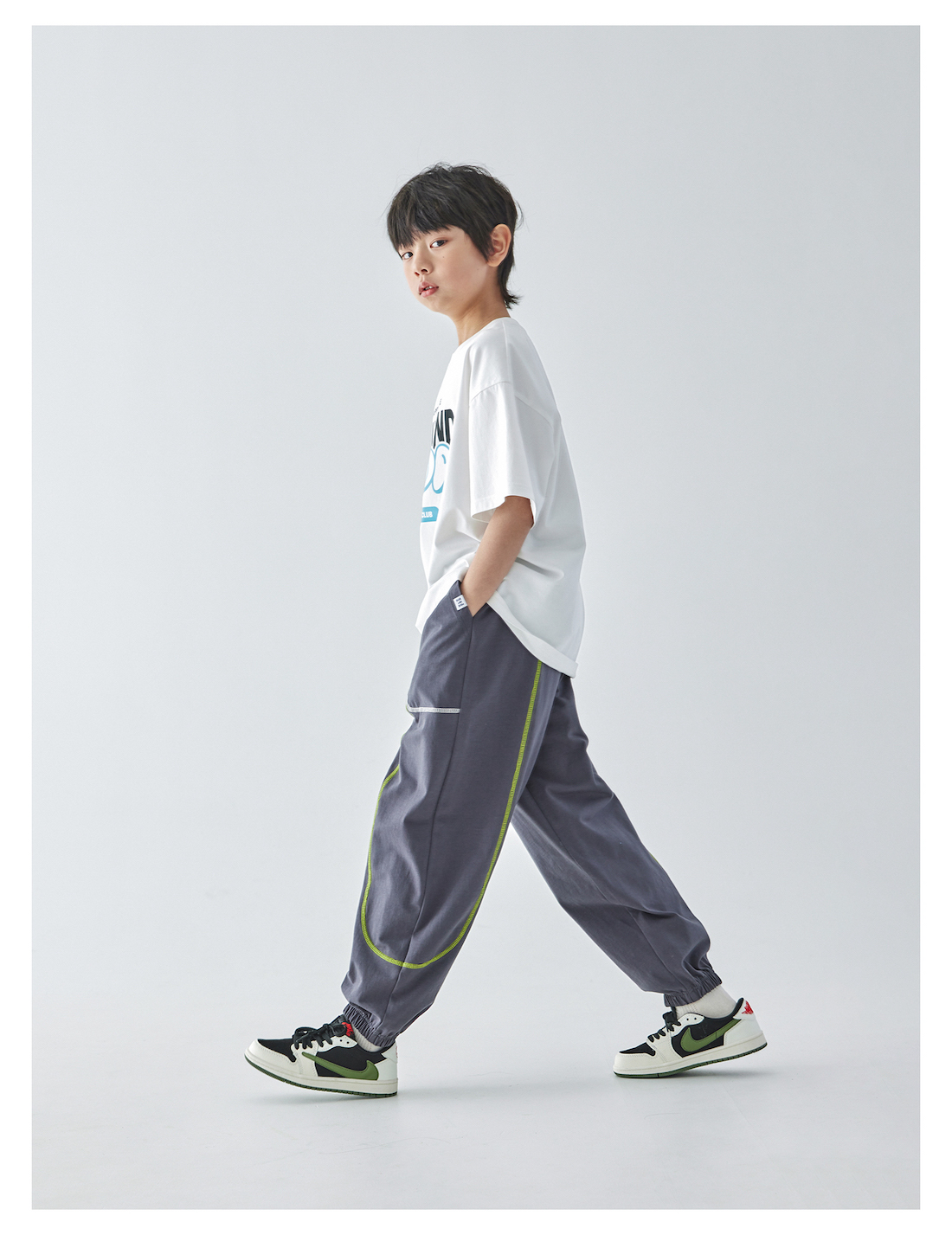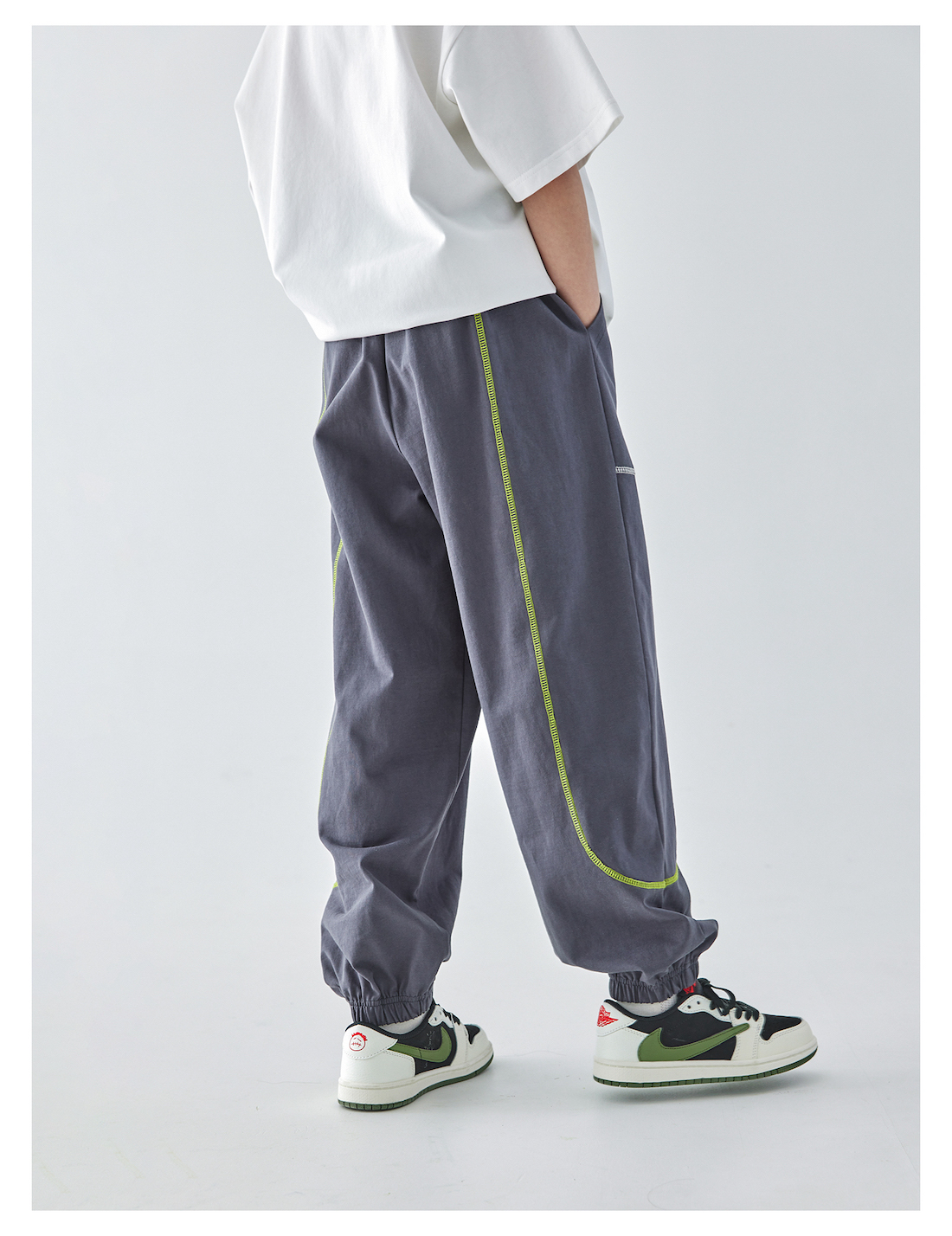 蓝汽水25年夏季新款男童亲子撞色线迹卫裤全棉针织简约休闲束脚裤