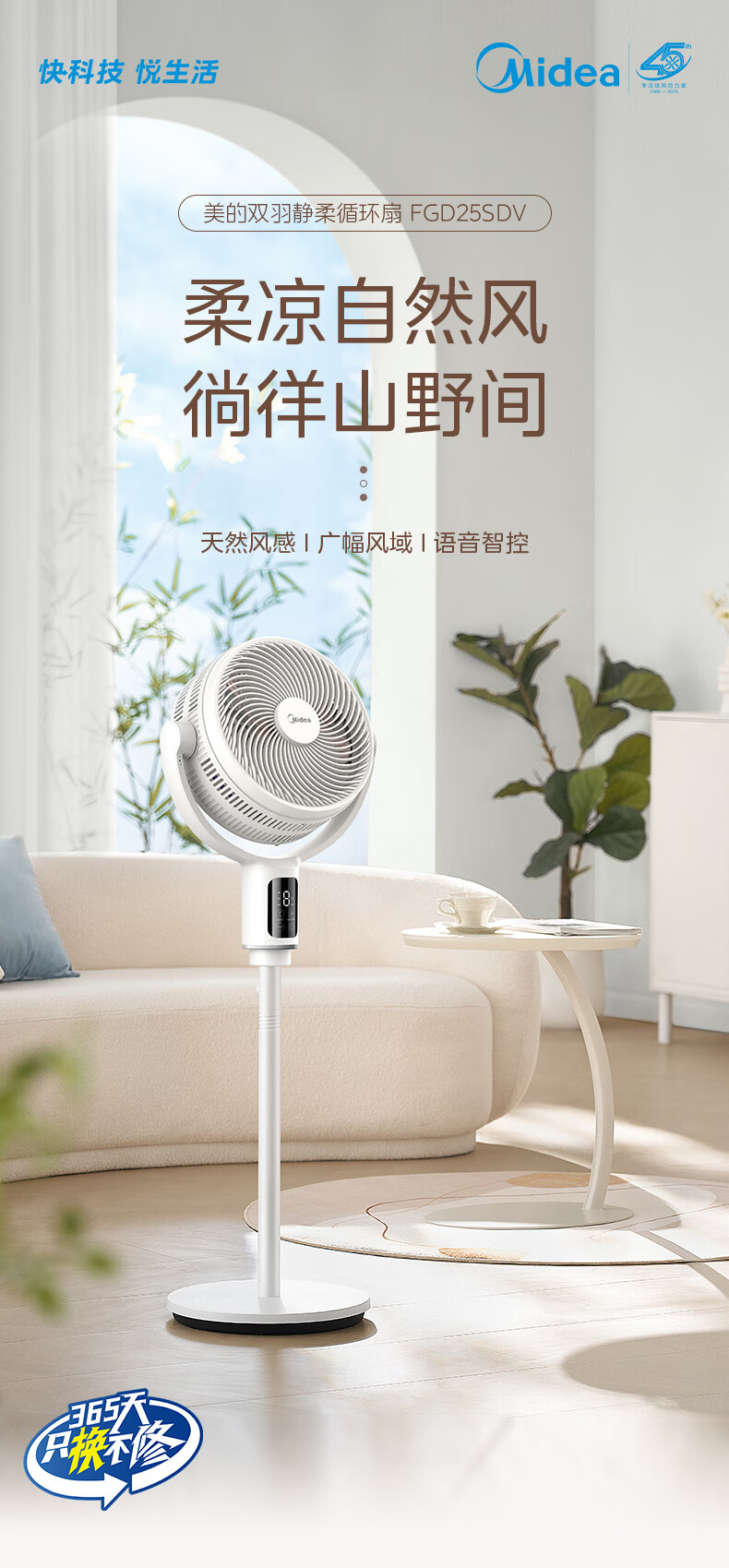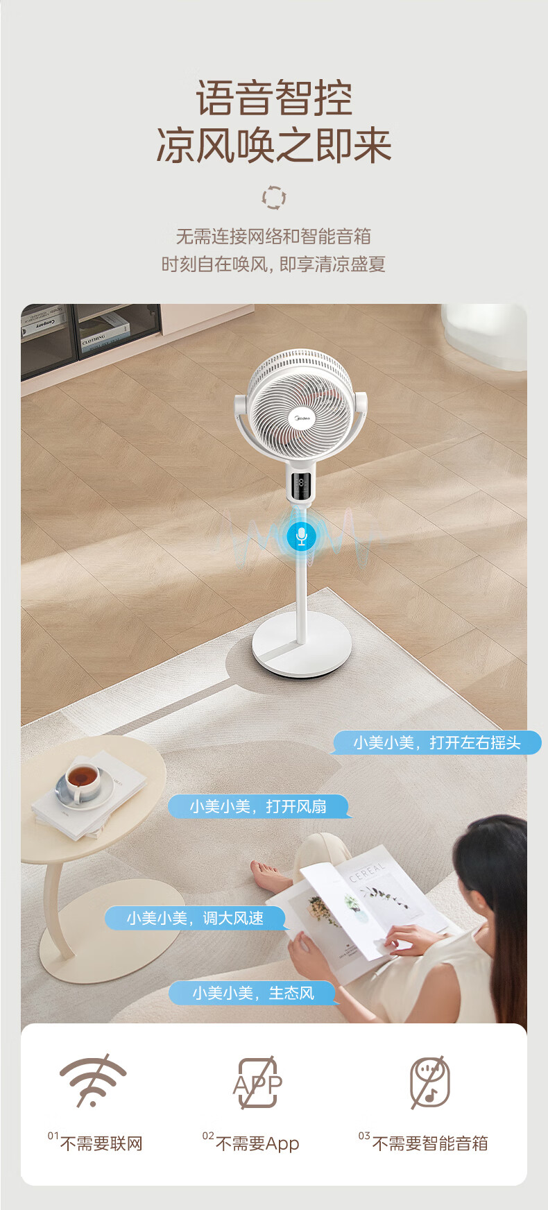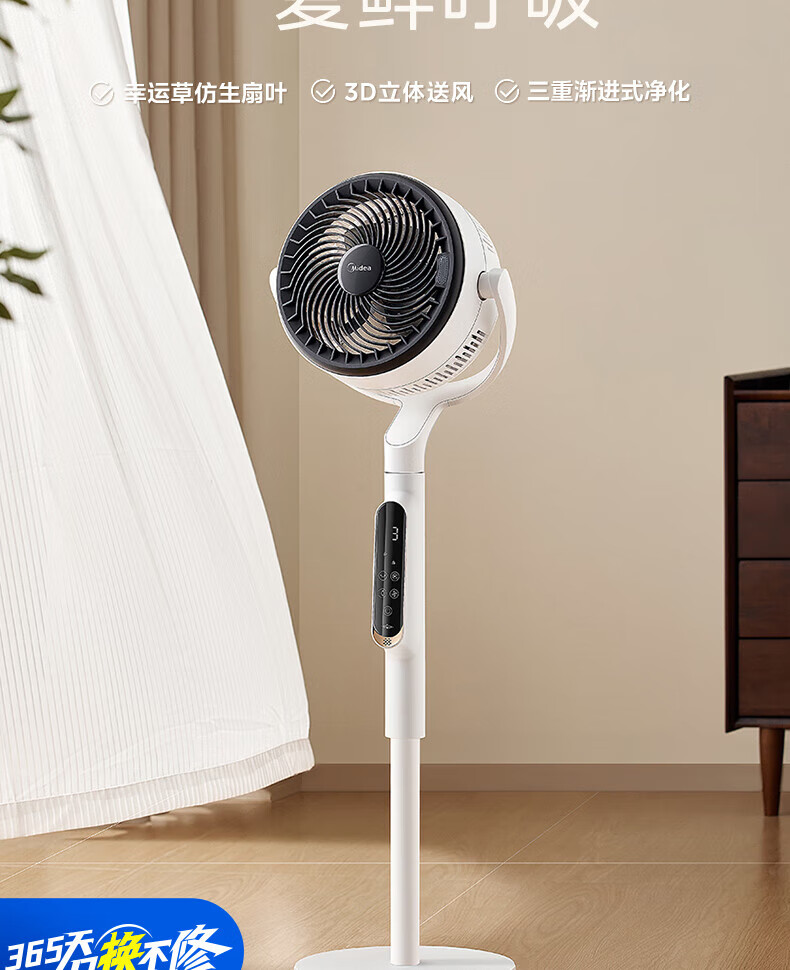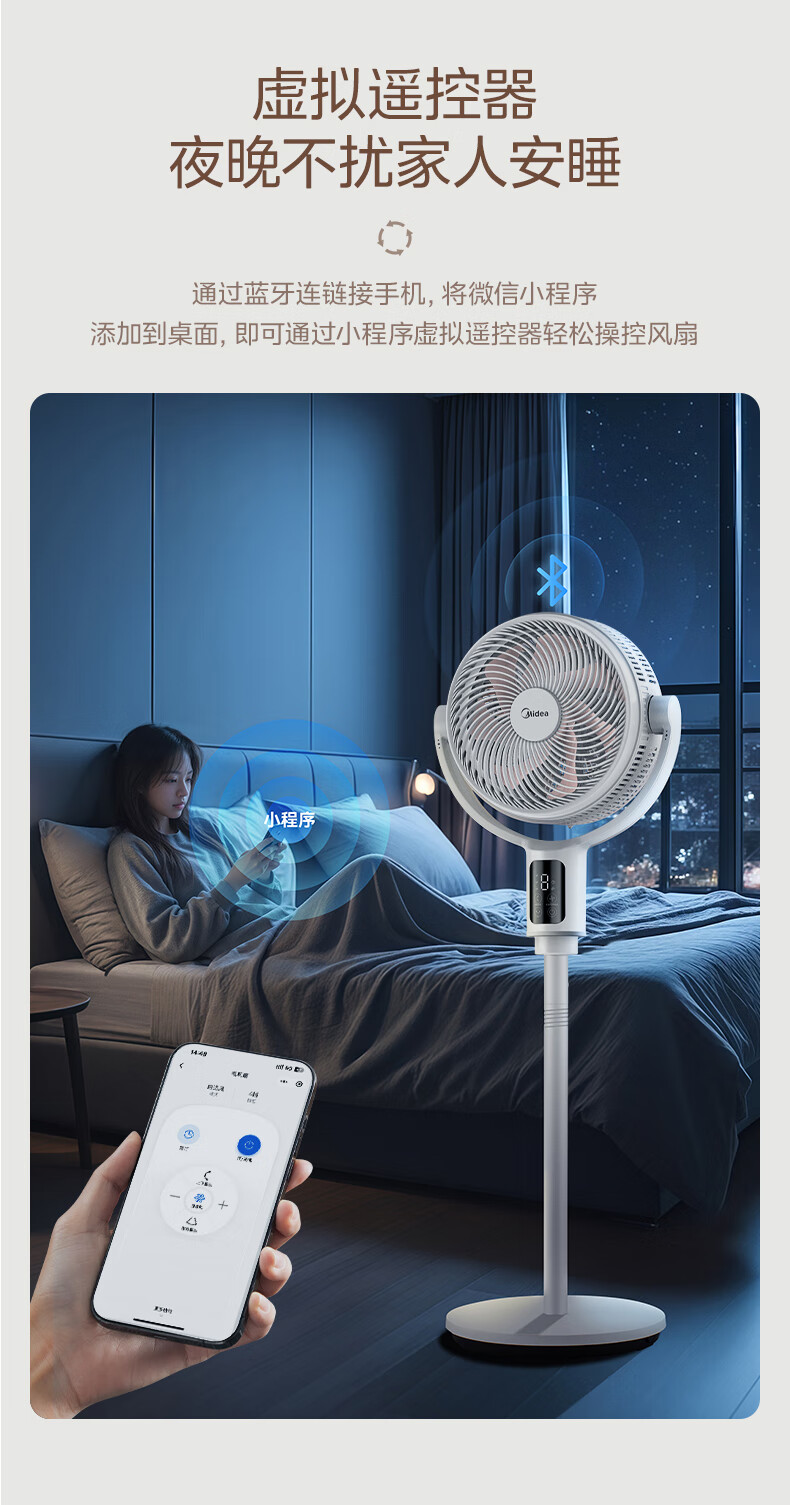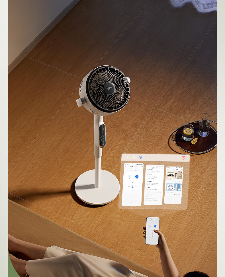 [立秋特惠场]美的(Midea) 家用电风扇空气循环扇卧室客厅多用节能省电台式立式落地扇变频遥控智能WiFi互联【线下同款】 FGD24SFQ白色(小程序+语音+遥控+触控)