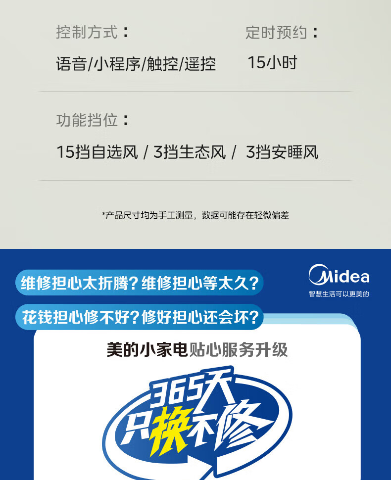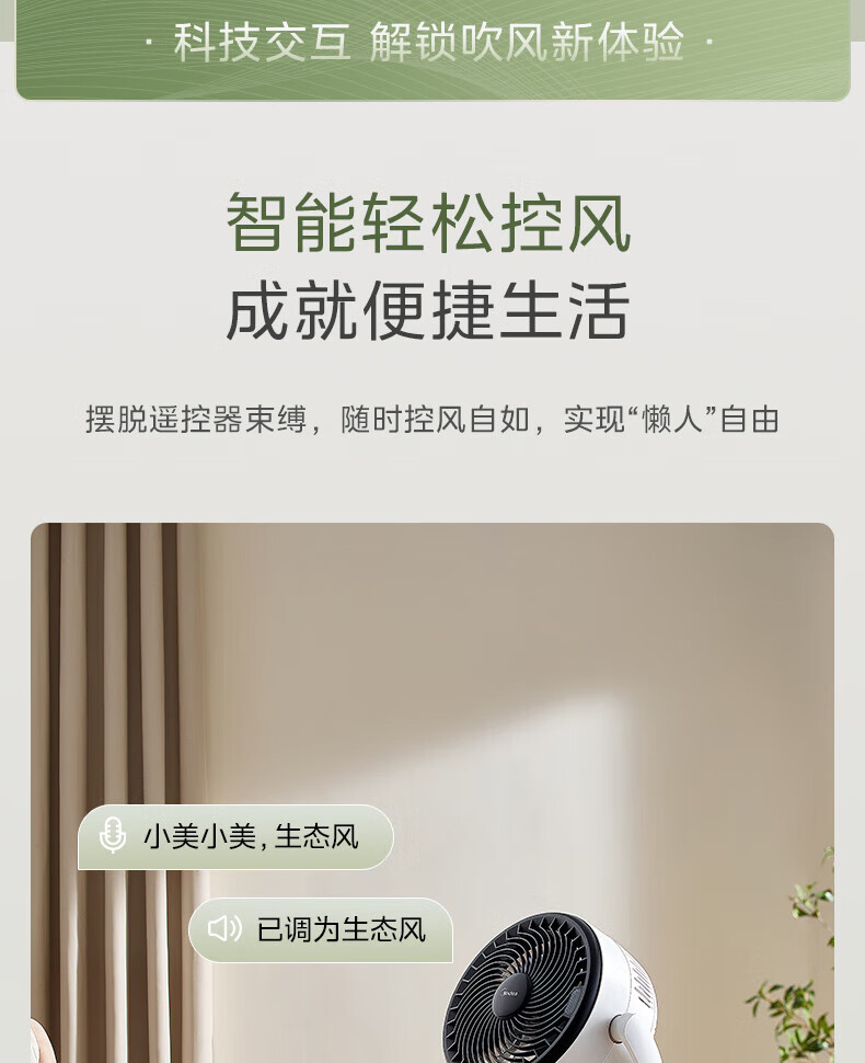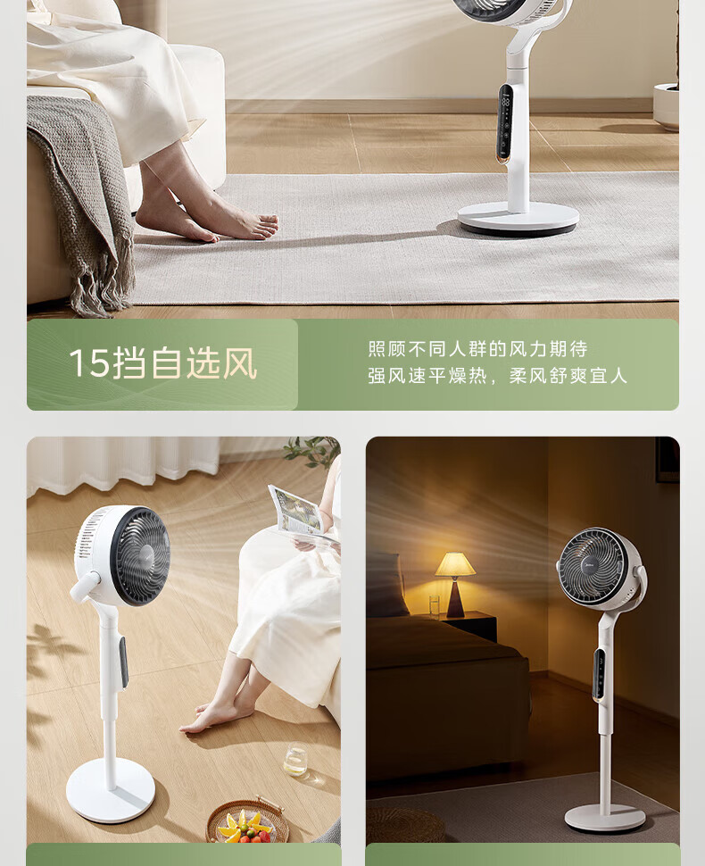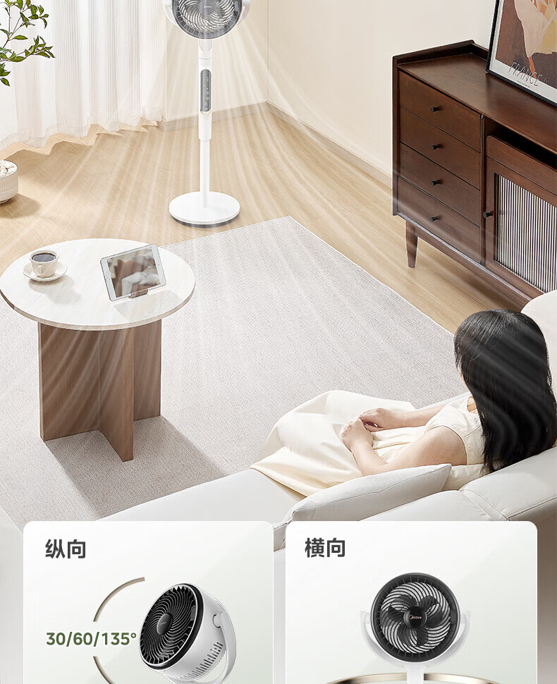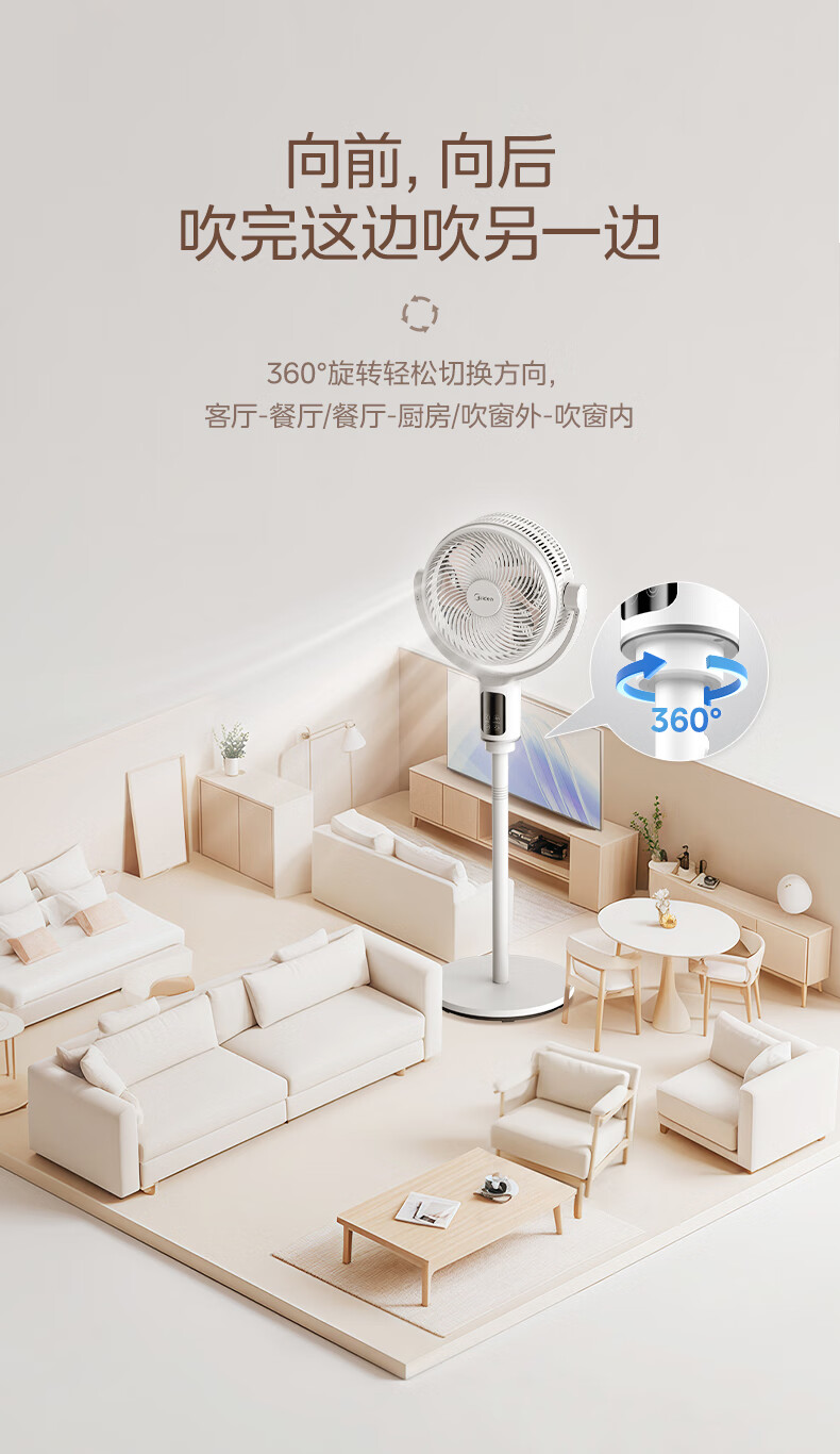 [立秋特惠场]美的(Midea) 家用电风扇空气循环扇卧室客厅多用节能省电台式立式落地扇变频遥控智能WiFi互联【线下同款】 FGD24SFQ白色(小程序+语音+遥控+触控)