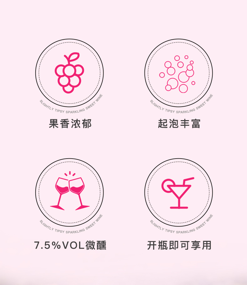 张裕舞魅甜桃红加气葡萄酒