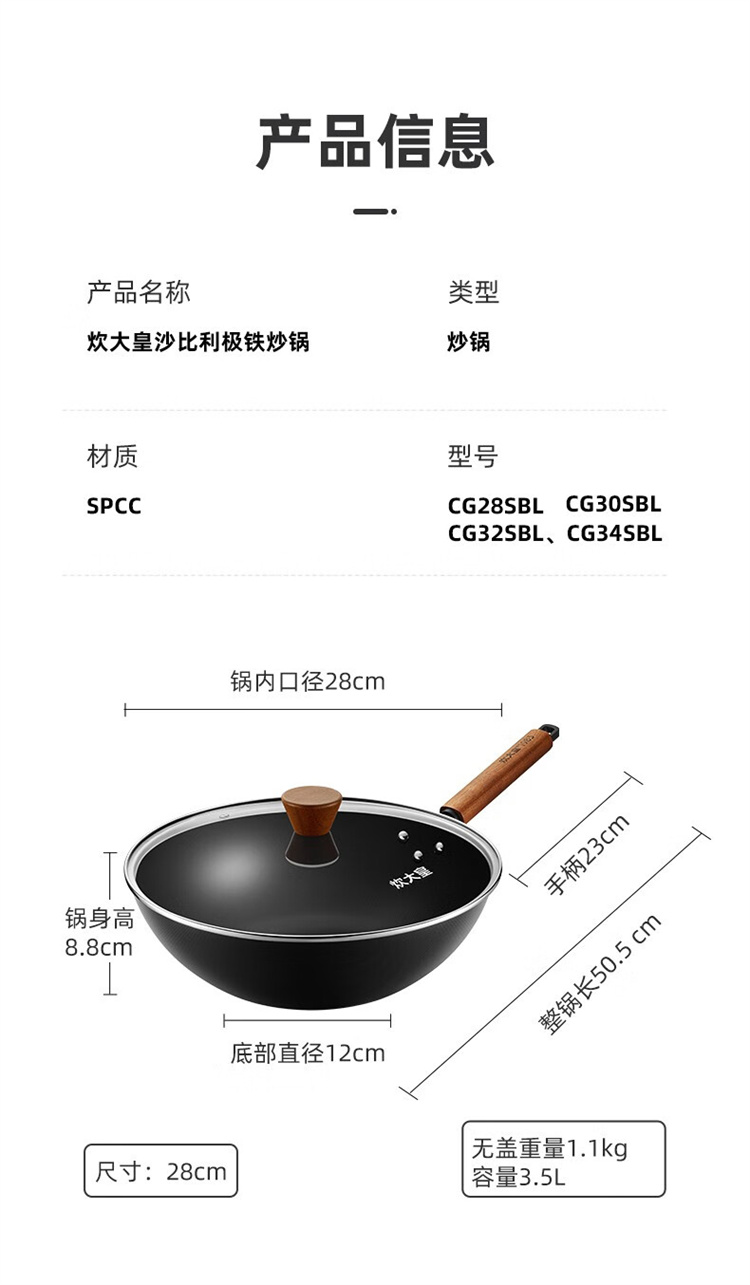 炊大皇沙比利极铁炒锅CG32SBL 32cm