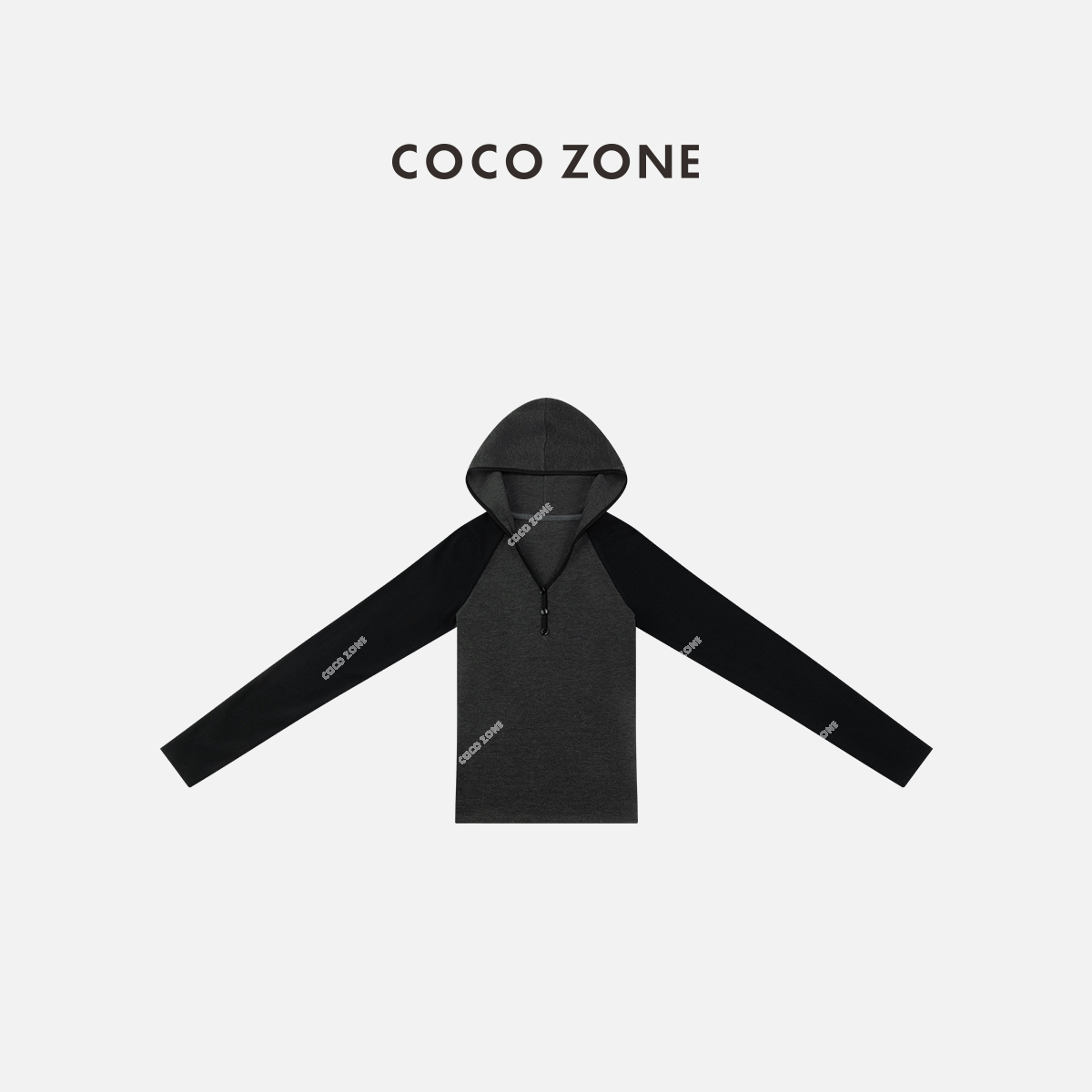 COCO ZONE 时尚拼色连帽打底衫通勤风简约T恤CC2C2333