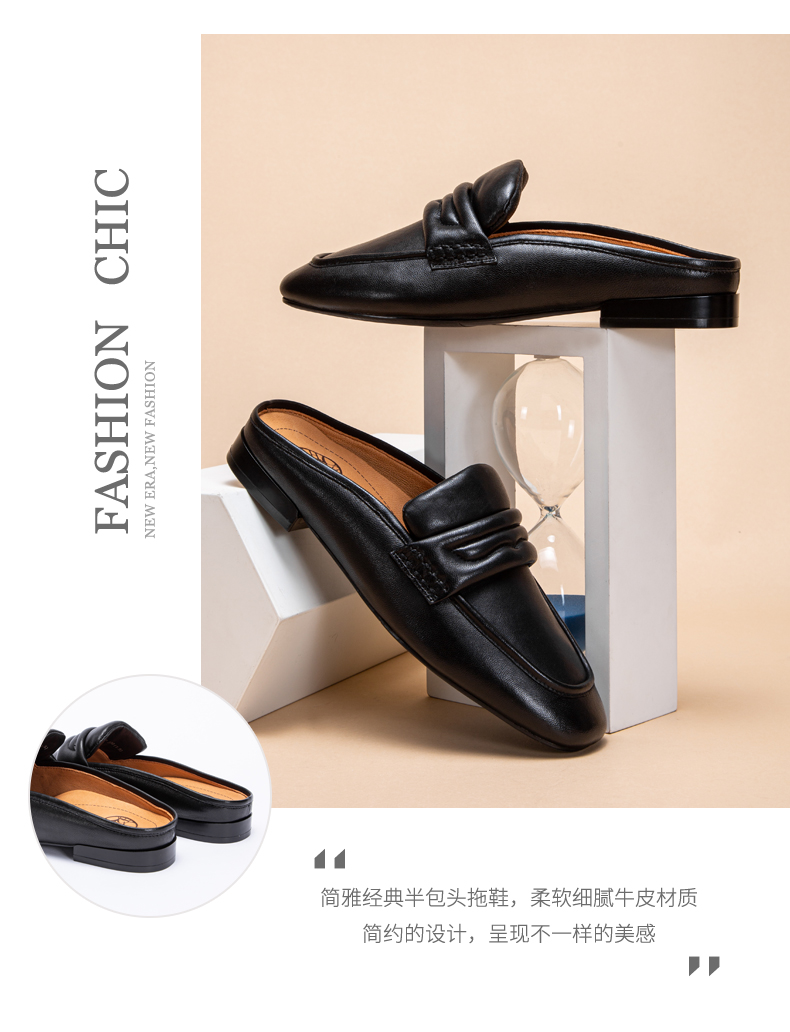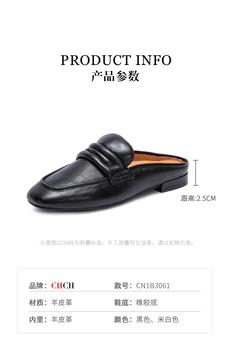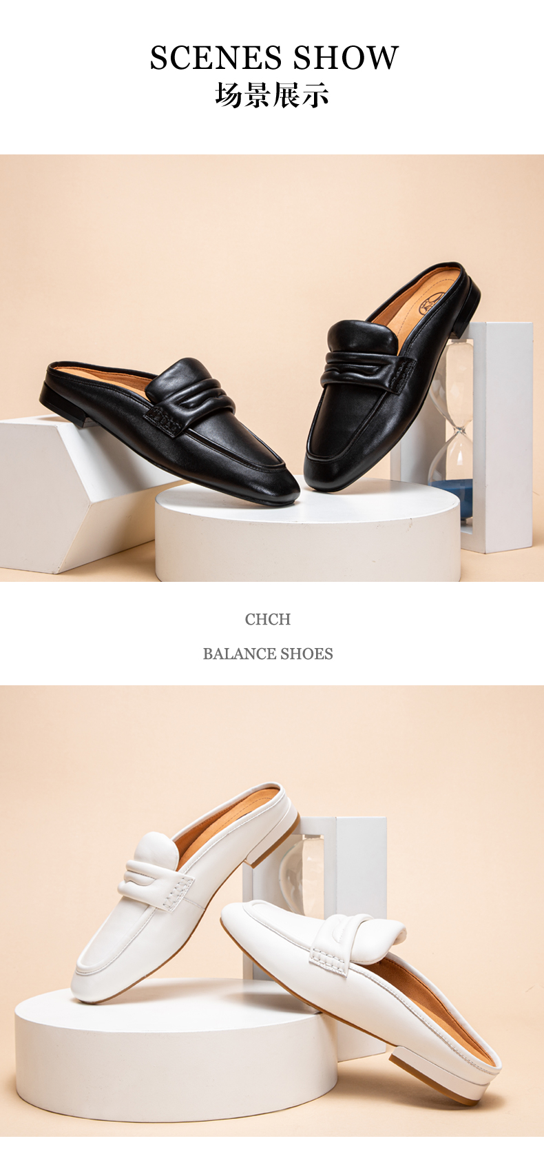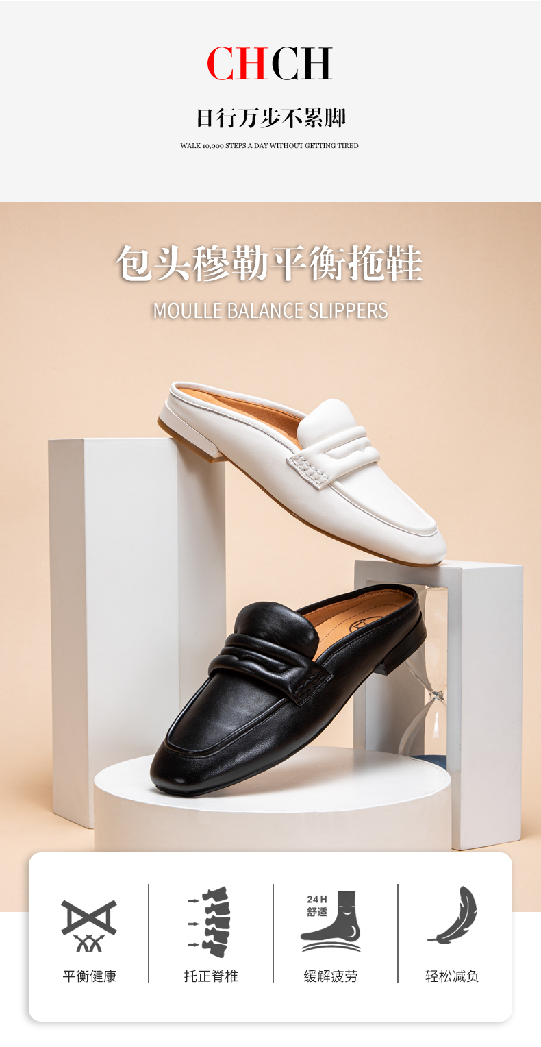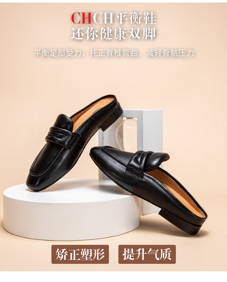 CHCH平衡鞋法式舒适羊皮优雅小香风包头半拖女鞋CN1B3061