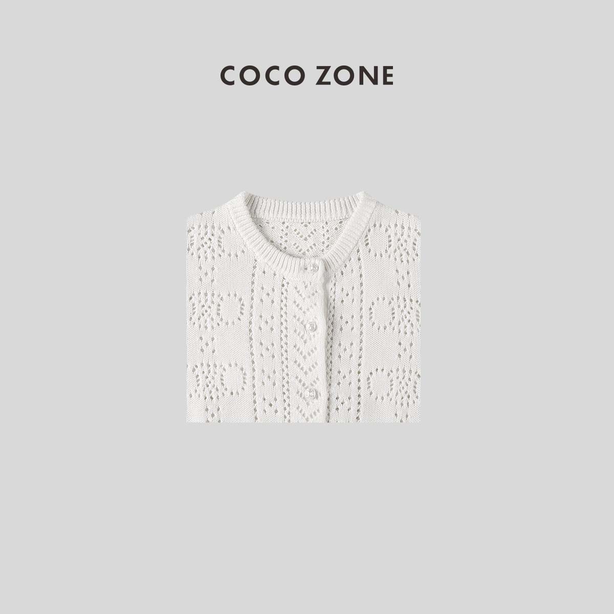 COCO ZONE 时尚百搭圆领针织镂空设计感开衫上衣 23C18586