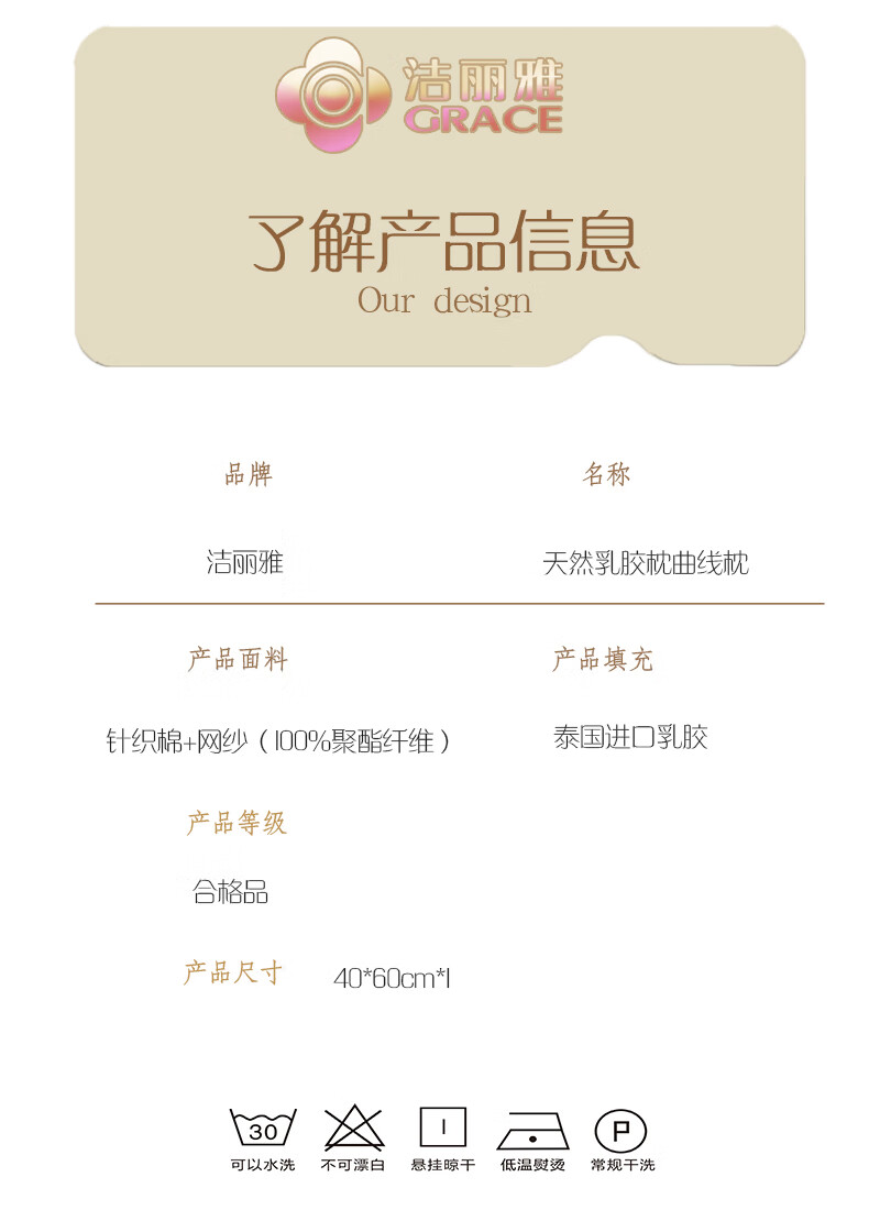 洁丽雅(Grace)特拉雷.天然乳胶枕曲线枕CP2928