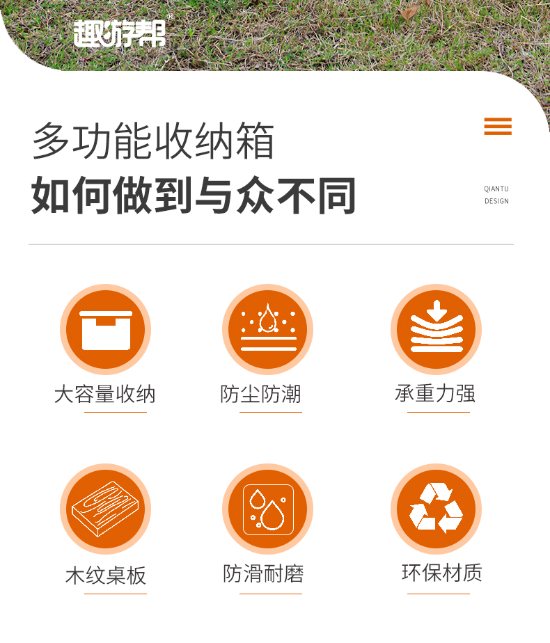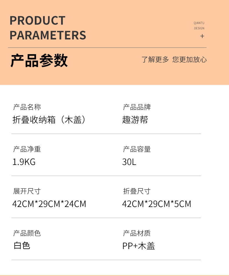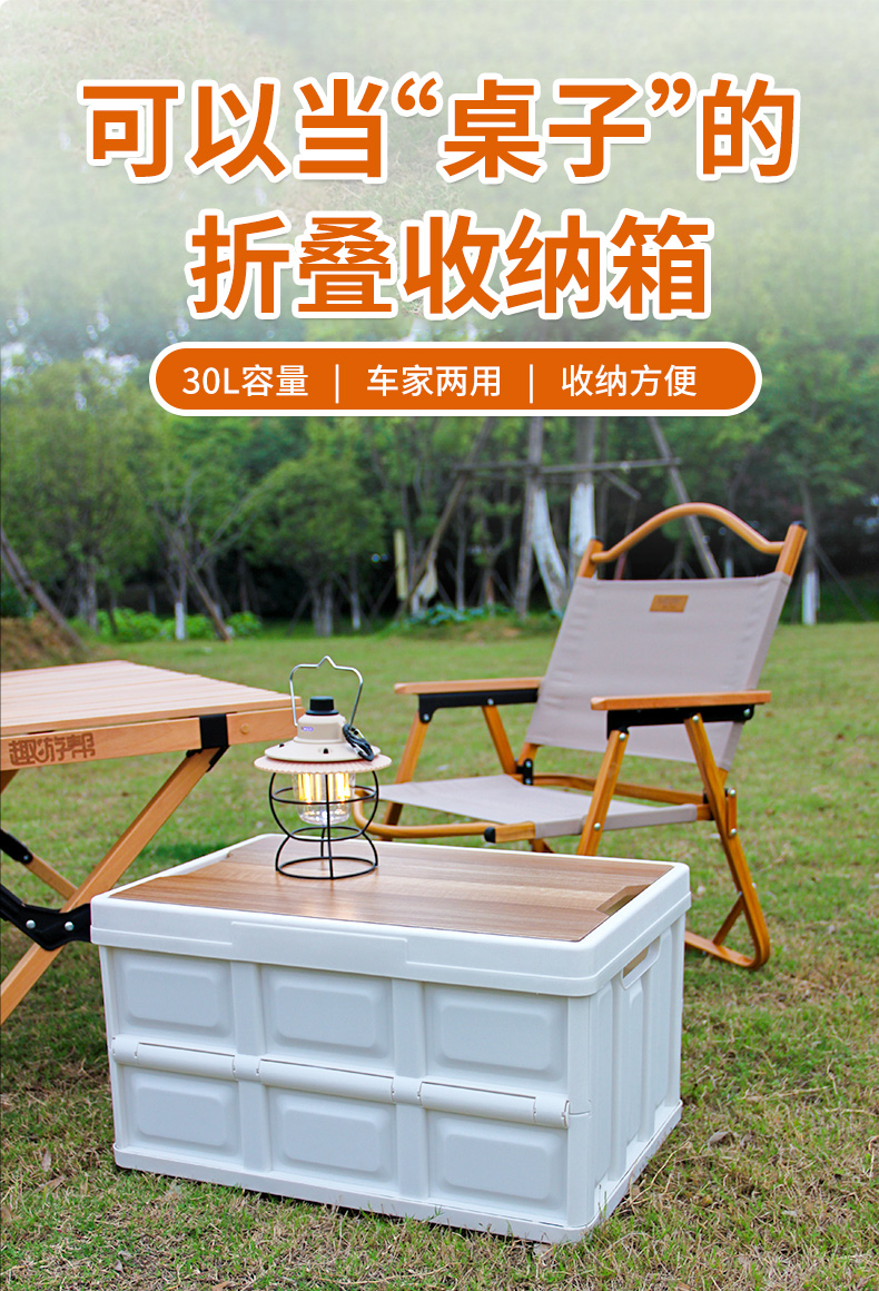 趣游帮 木盖款折叠收纳箱30L(Q515-30L)