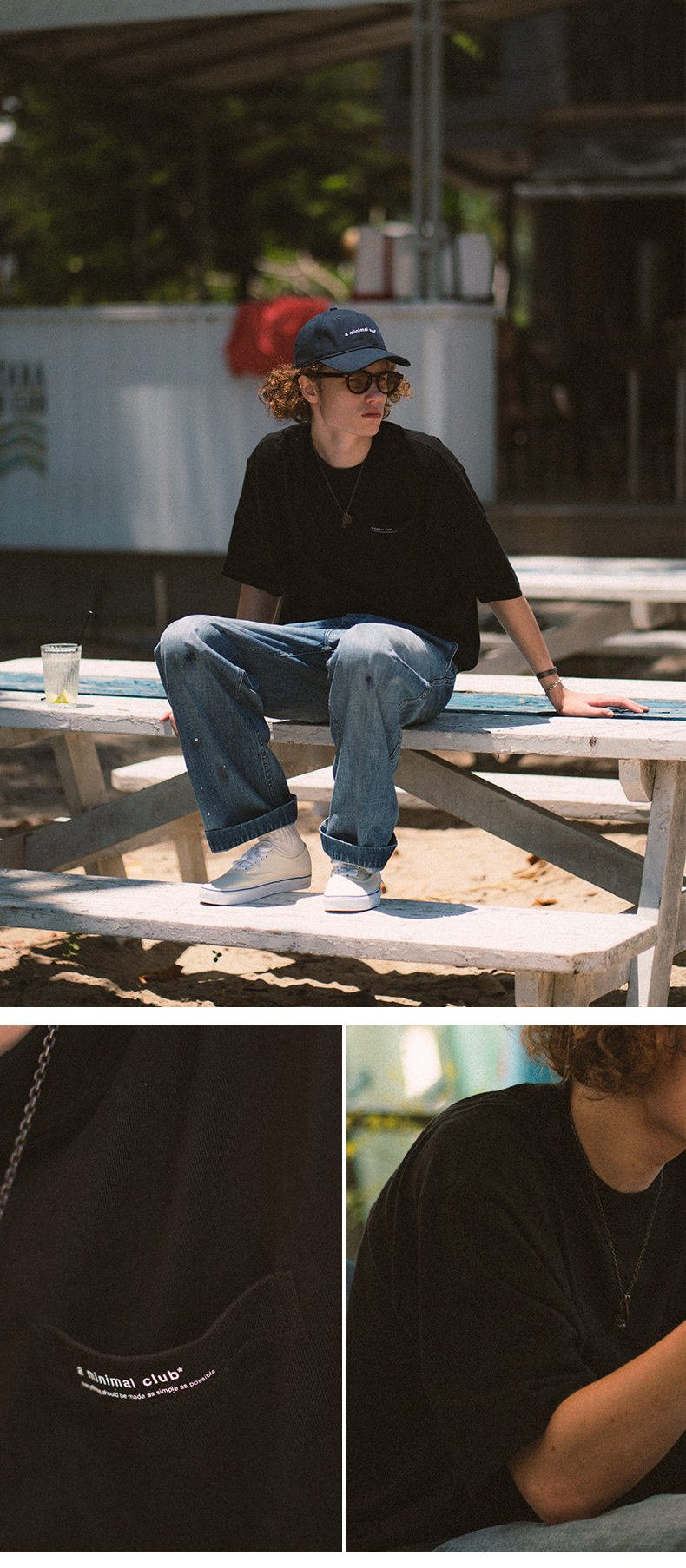 a minimal club复古纯棉重磅大口袋宽松短袖T恤休闲男AM55TE03