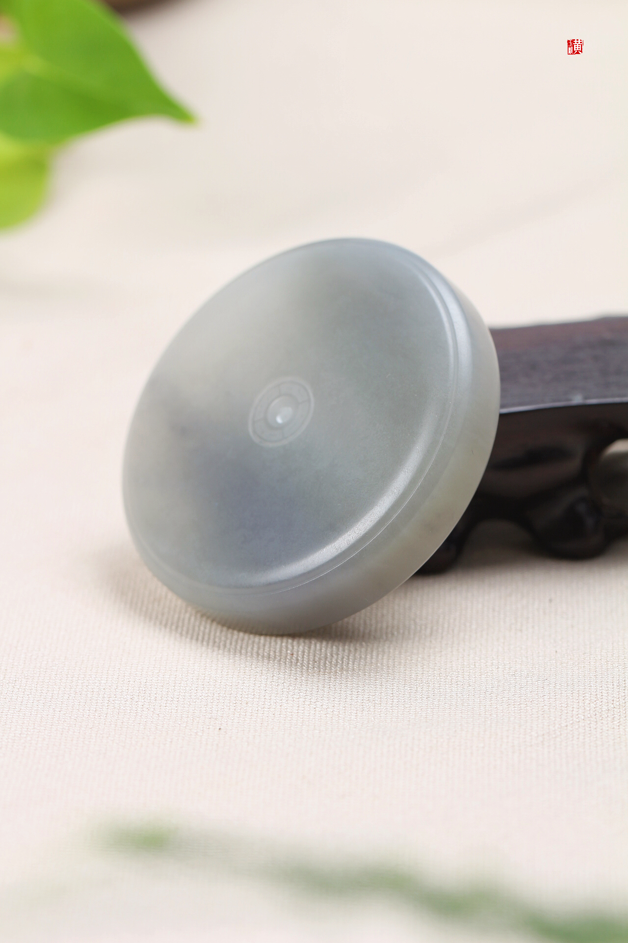 和田烟紫玉平安扣,配精美挂绳