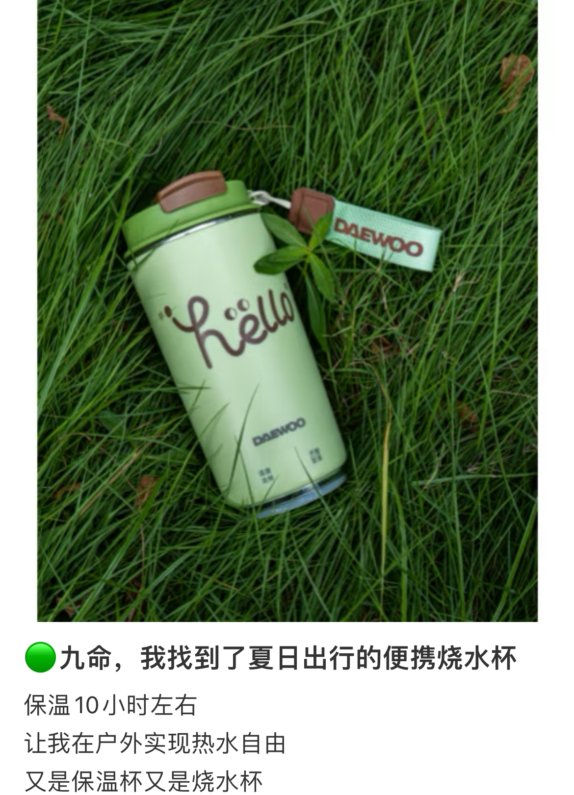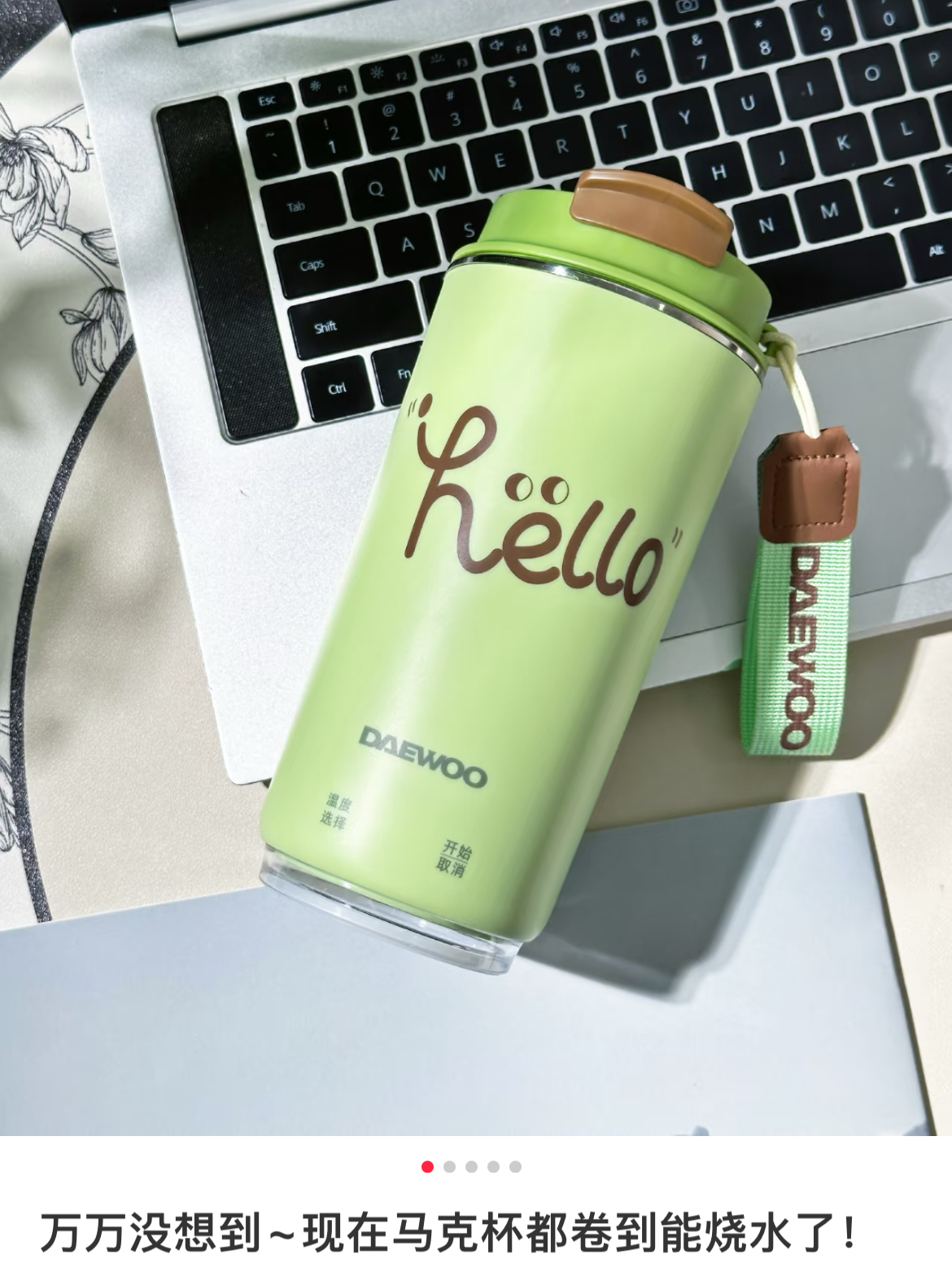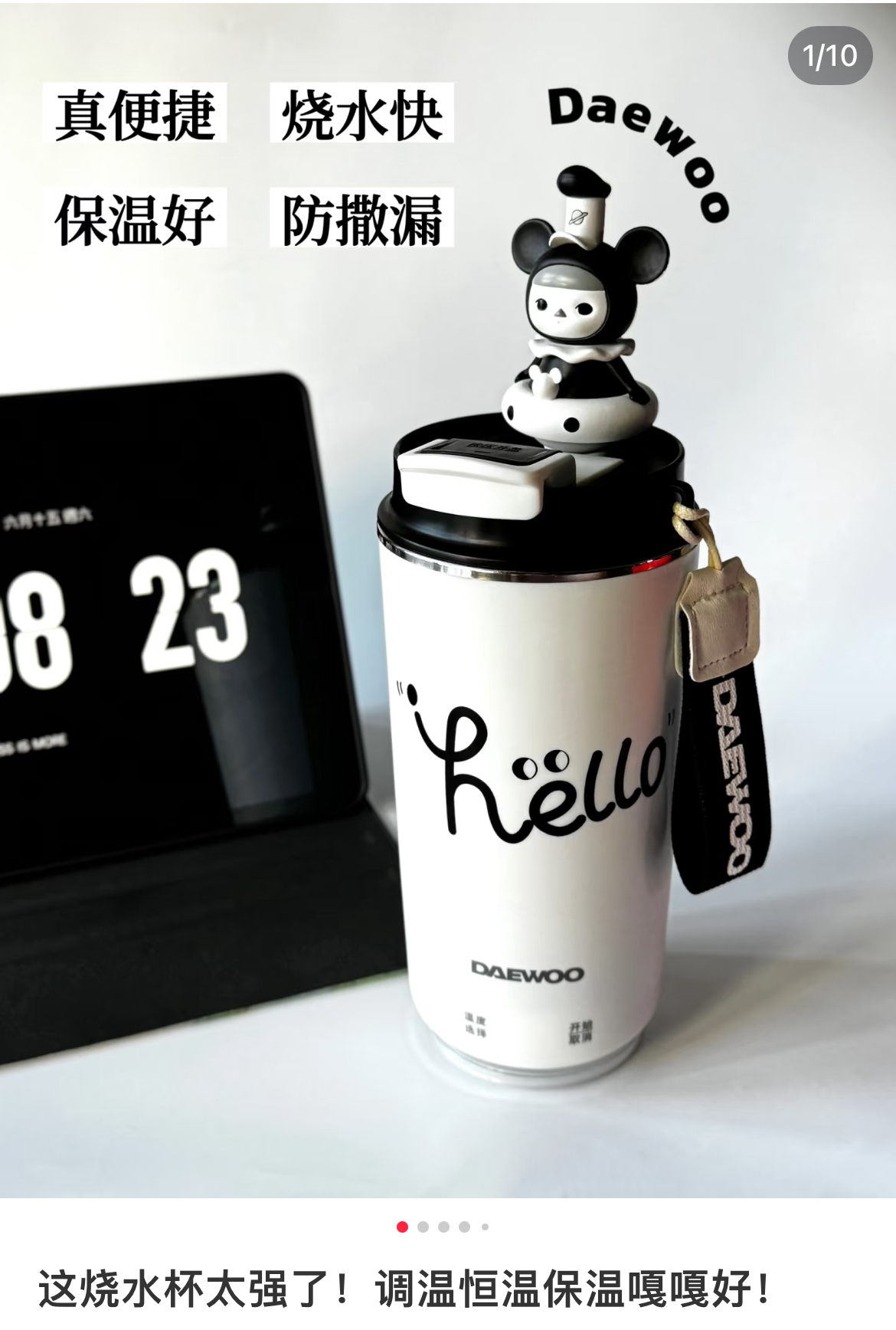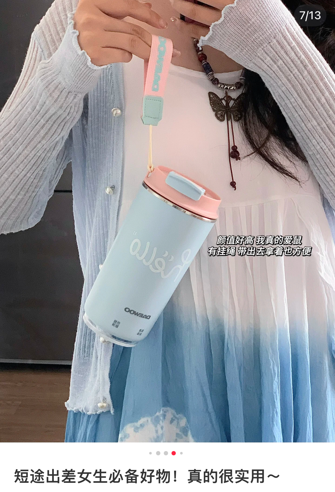 [屁侠推荐]大宇便携保温烧水杯四层隔热 300ml容量 6h保温 十段调温 翻盖直饮 办公旅行必备