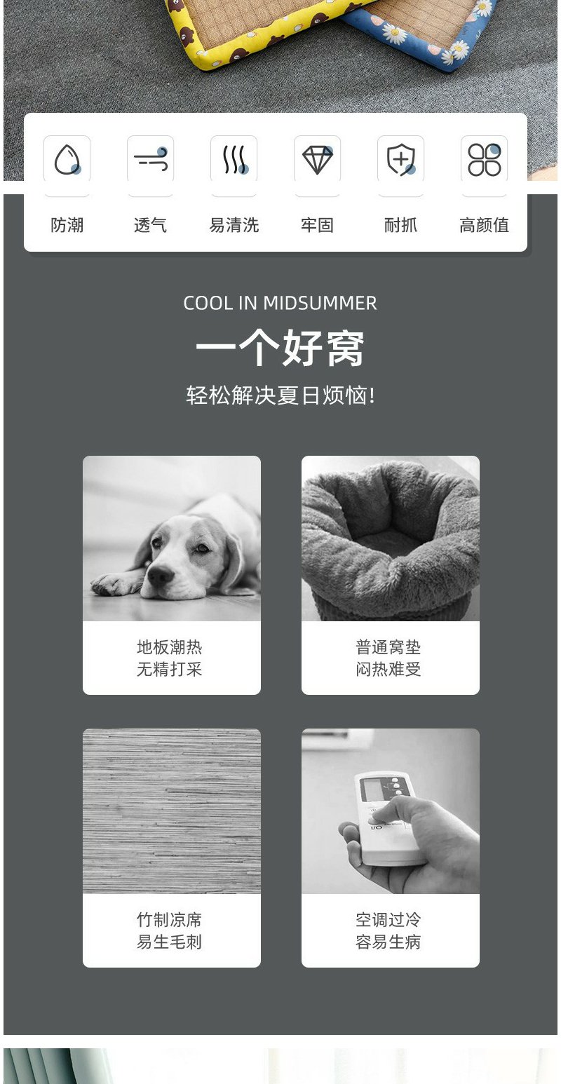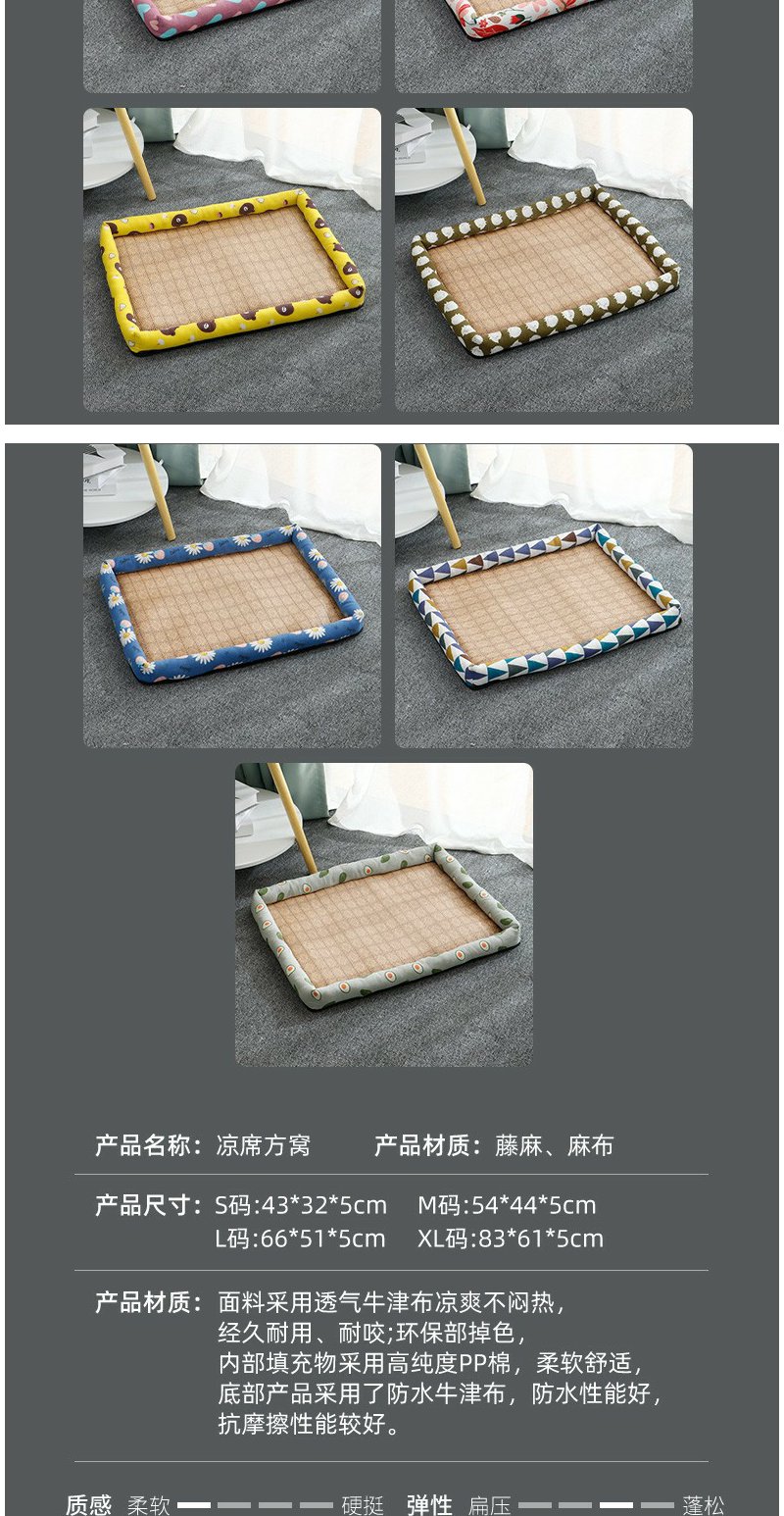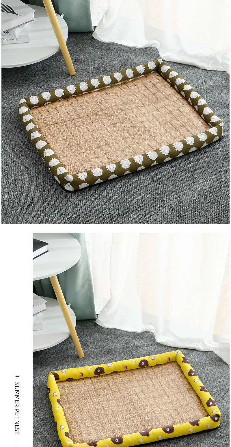 【宠物凉席窝】夏季亚麻高温避暑狗窝藤编垫方形凉窝四季通用