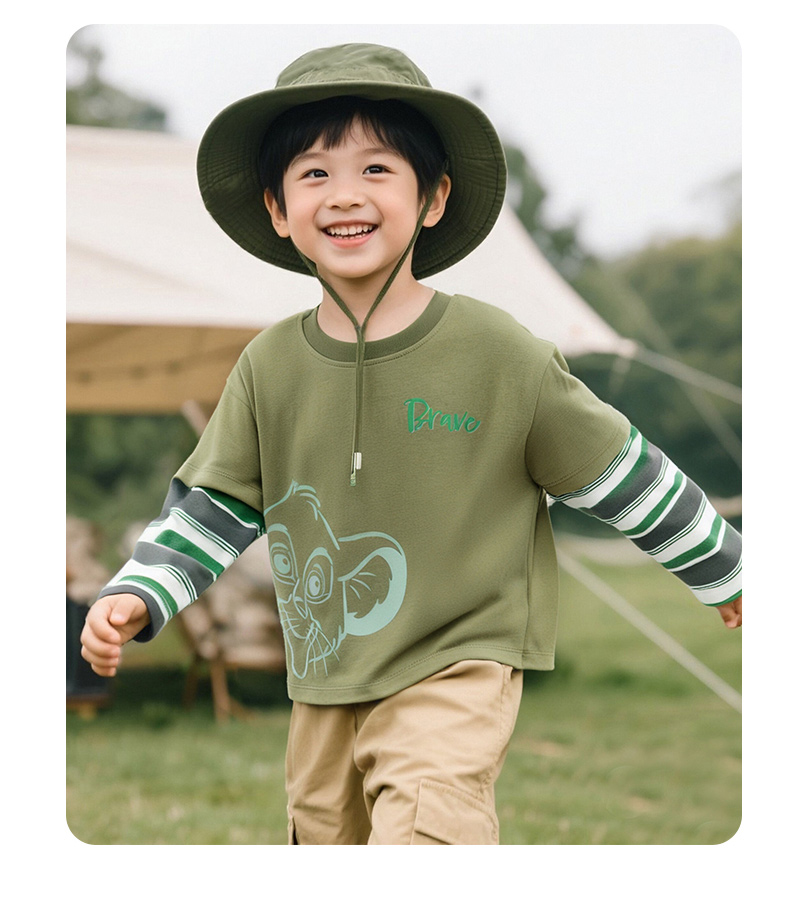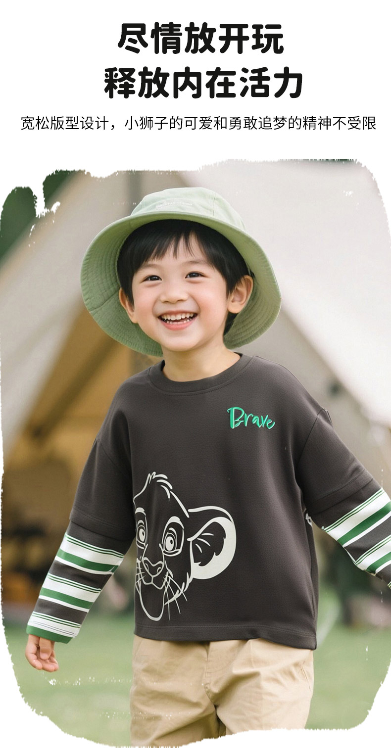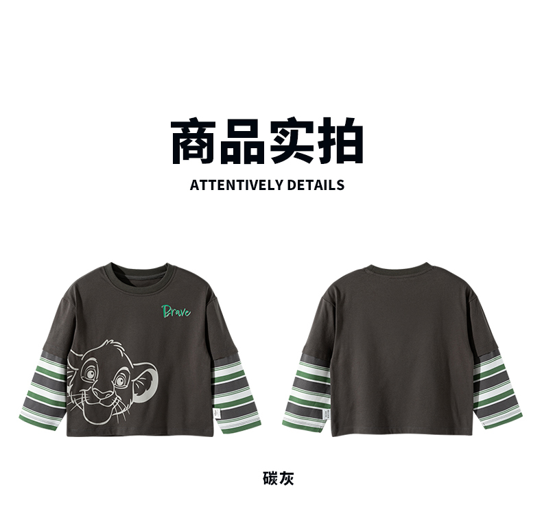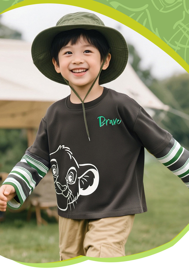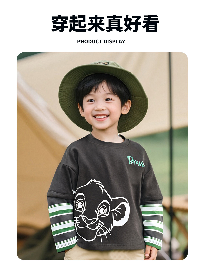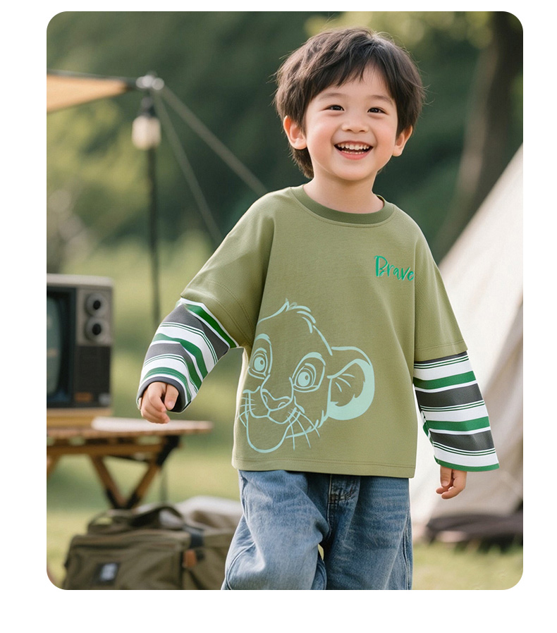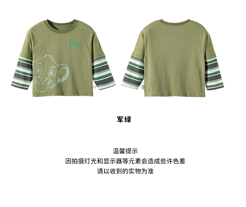 迪士尼25春秋新款男童纯棉长袖T恤男孩休闲条纹打底上衣ZD3ES016*
