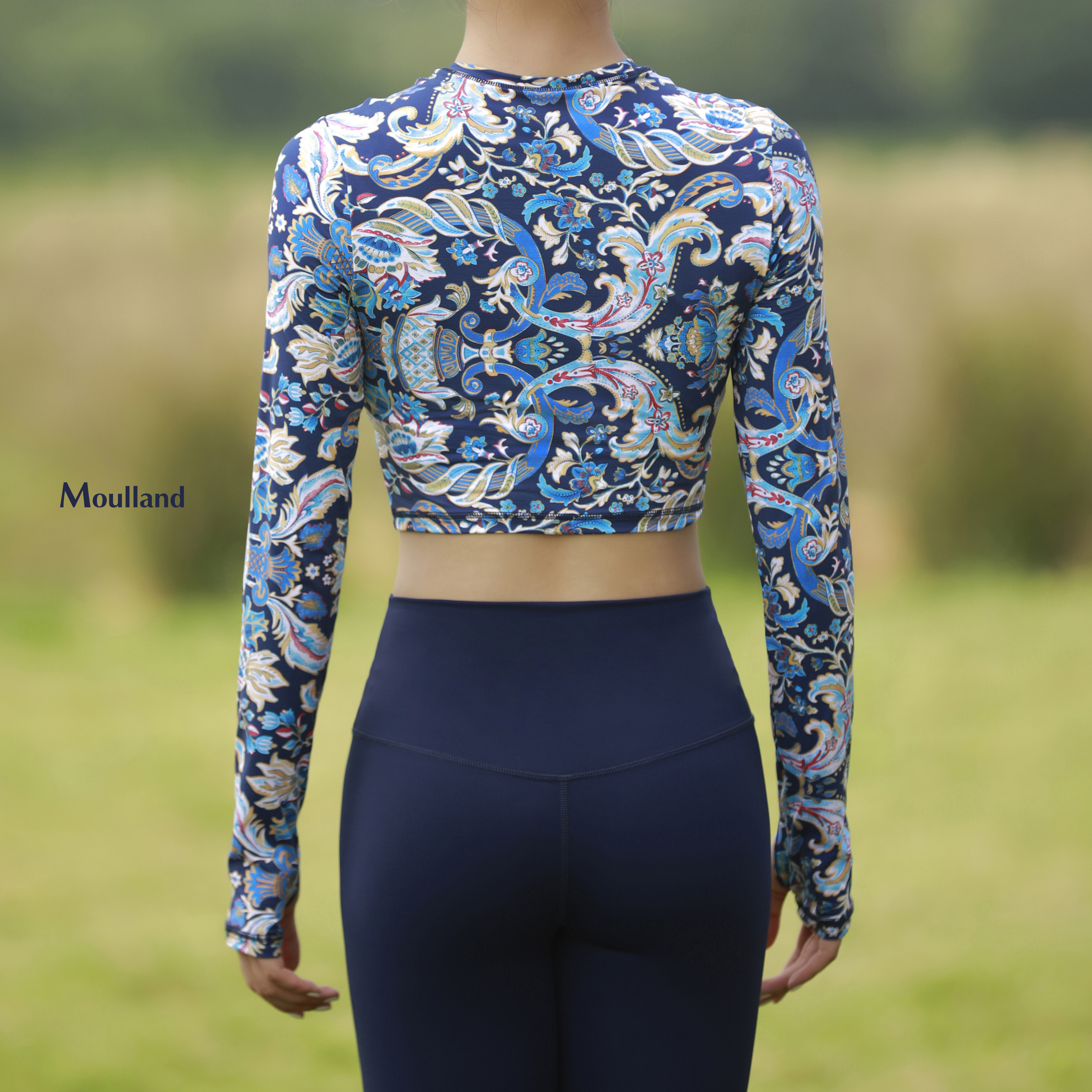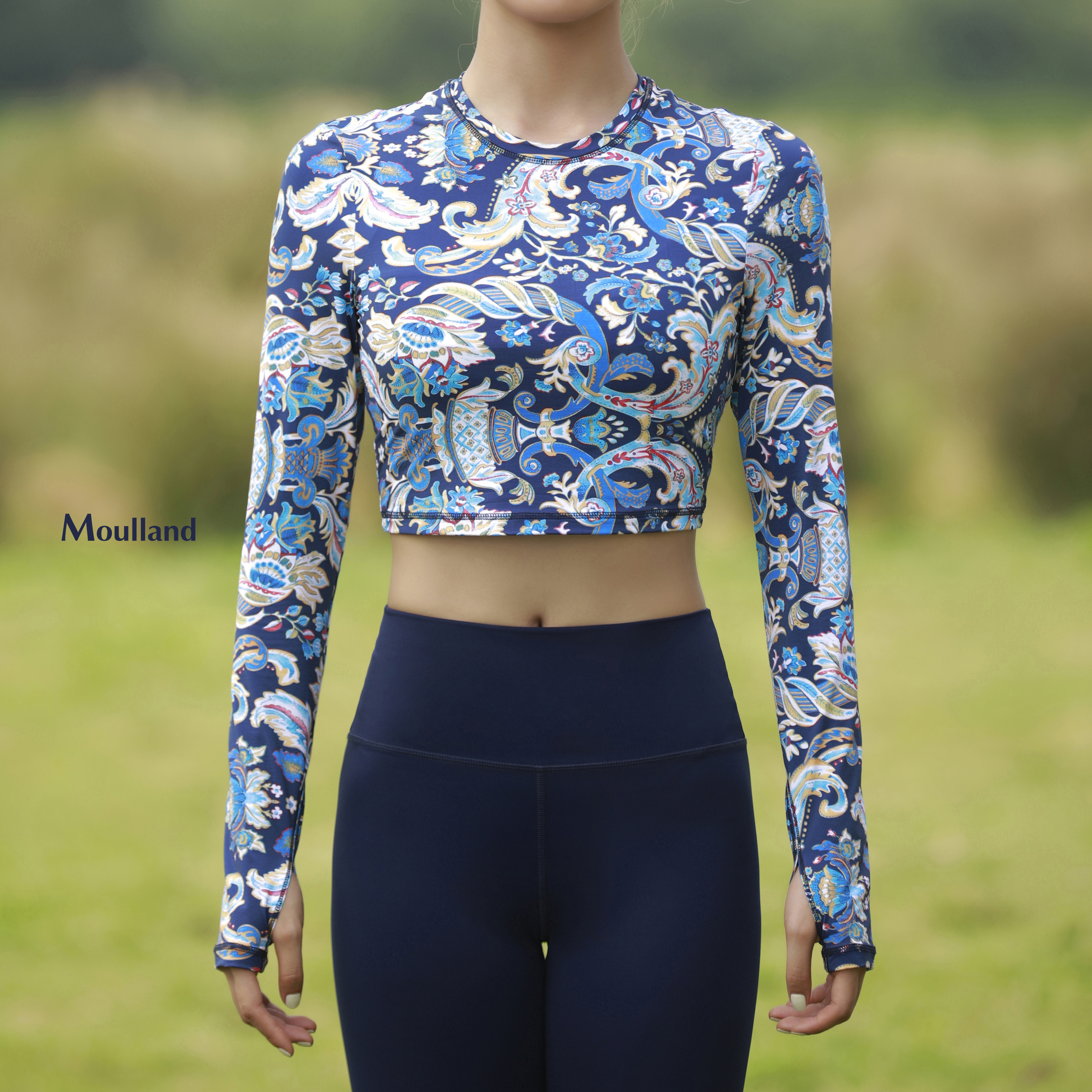 爆款好货 露脐圆领长袖-宝蓝凤尾叶 商品图0