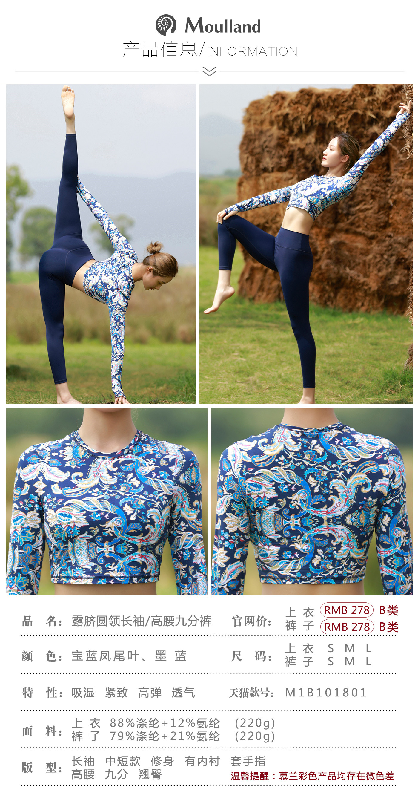 爆款好货 露脐圆领长袖-宝蓝凤尾叶 商品图4