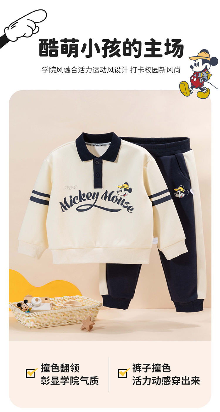 迪士尼男童米奇卫衣套装复古学院风潮帅套装卫衣套装ZD3DT017