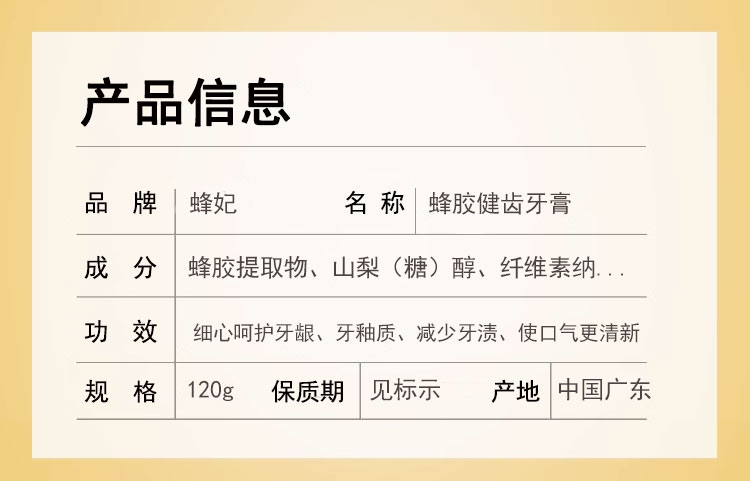 蜂妃蜂胶健齿牙膏120g保护牙龈祛牙渍除口臭男女通用牙齿护理