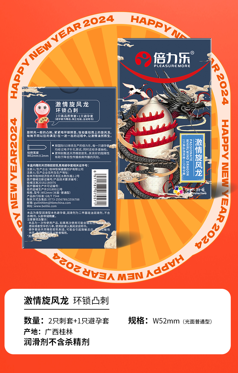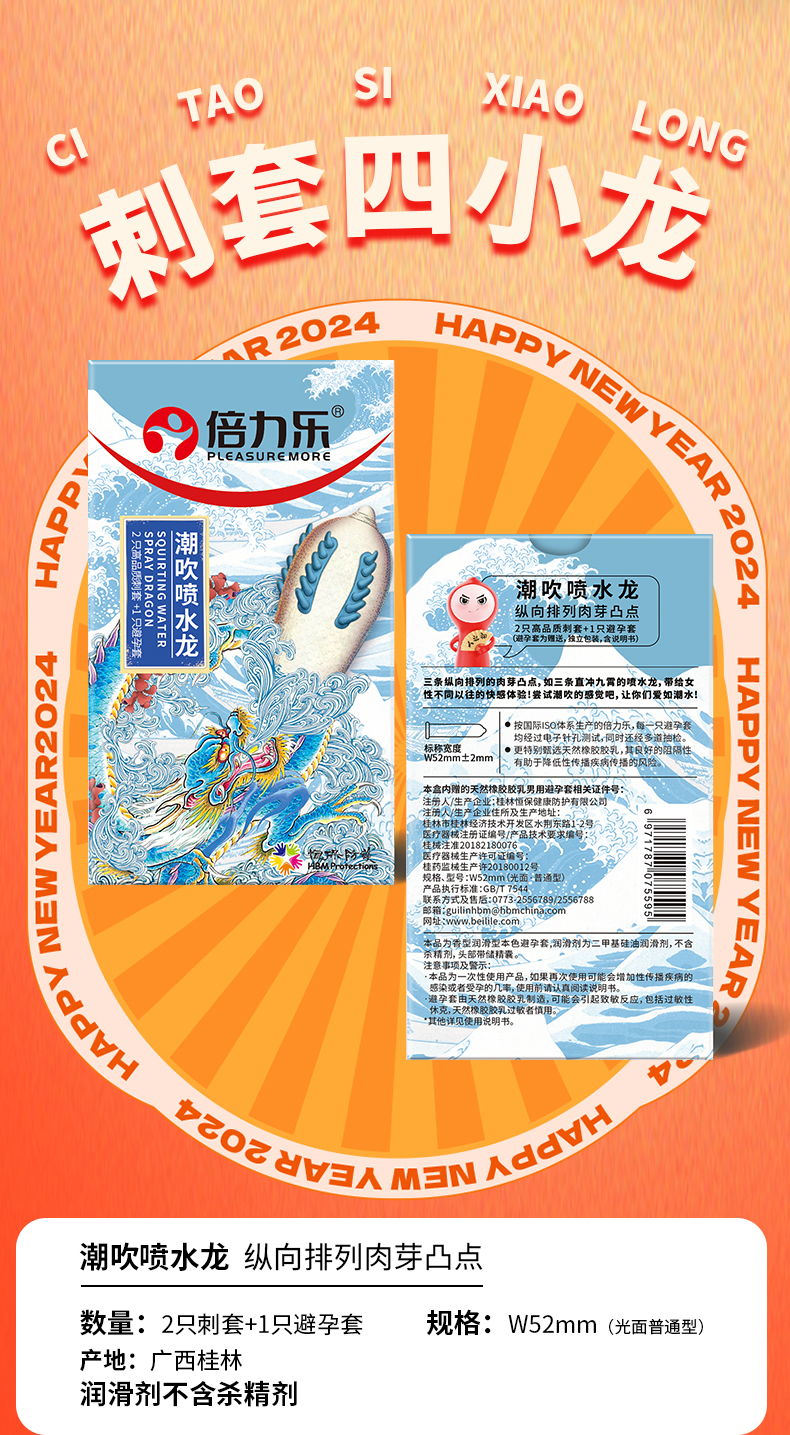 倍力乐龙年龙套 刺套 四小龙情趣带刺G凸点异性水晶狼牙超薄避孕套男用大颗粒